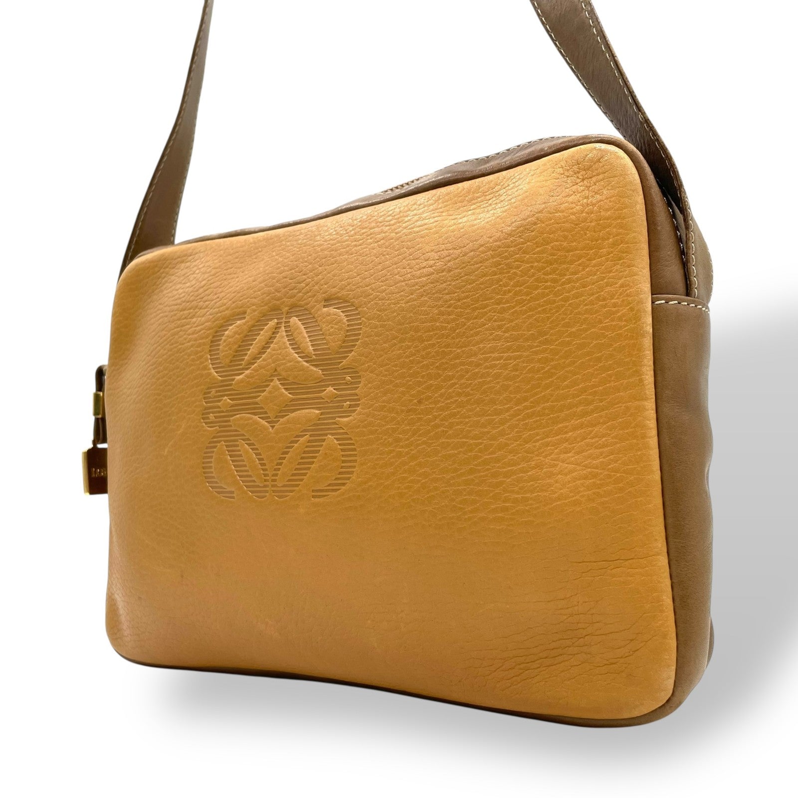 LOEWE ロエベ ショルダーバッグ 茶 ブラウン キャメル レザー ゴールド金具 アナグラム 斜め掛け可 レディース ヴィンテージ K10