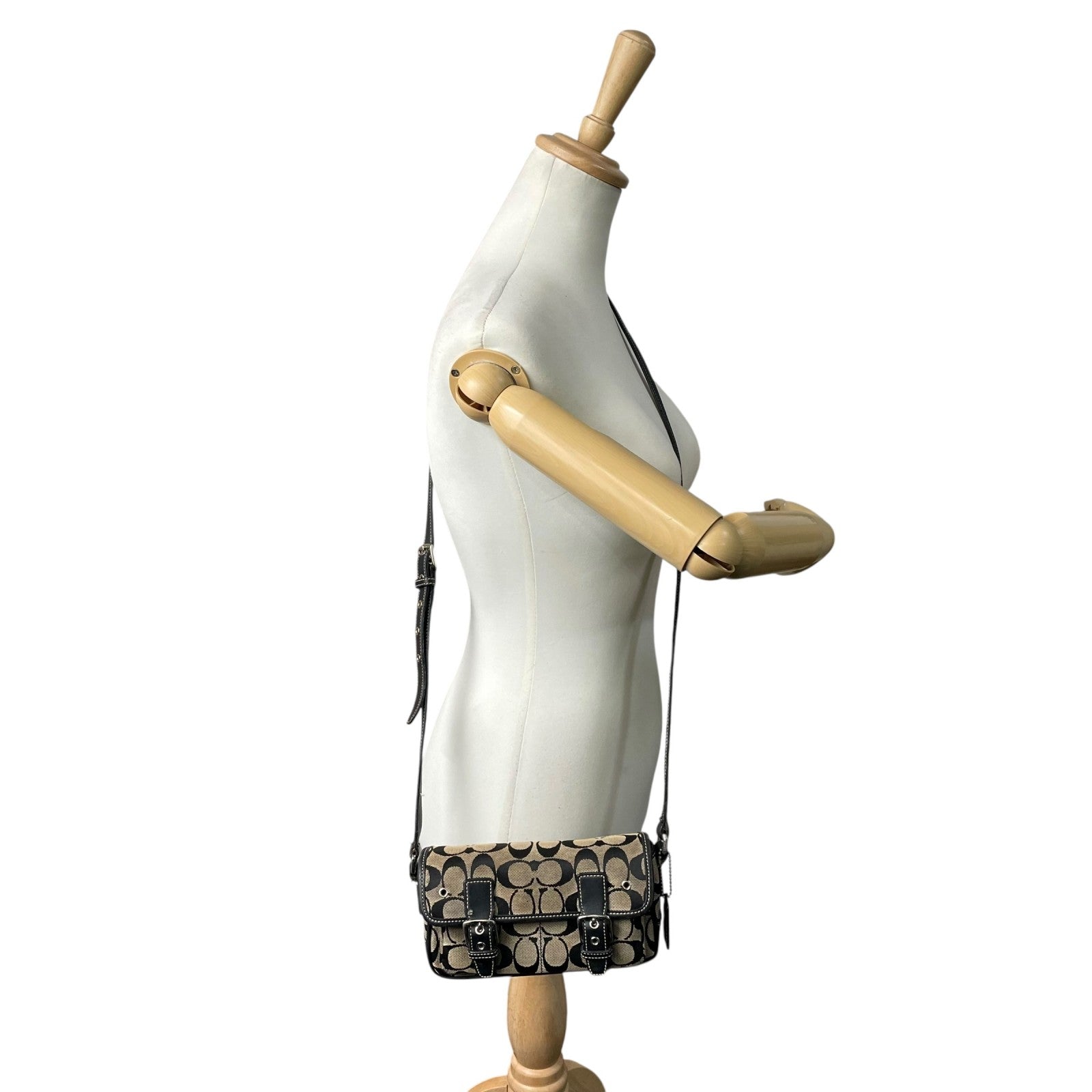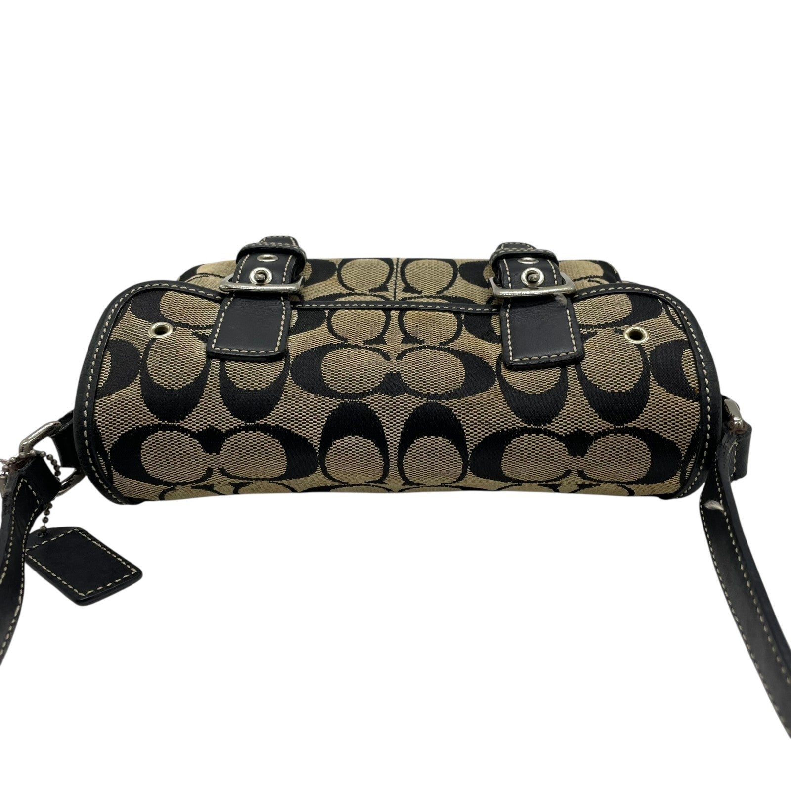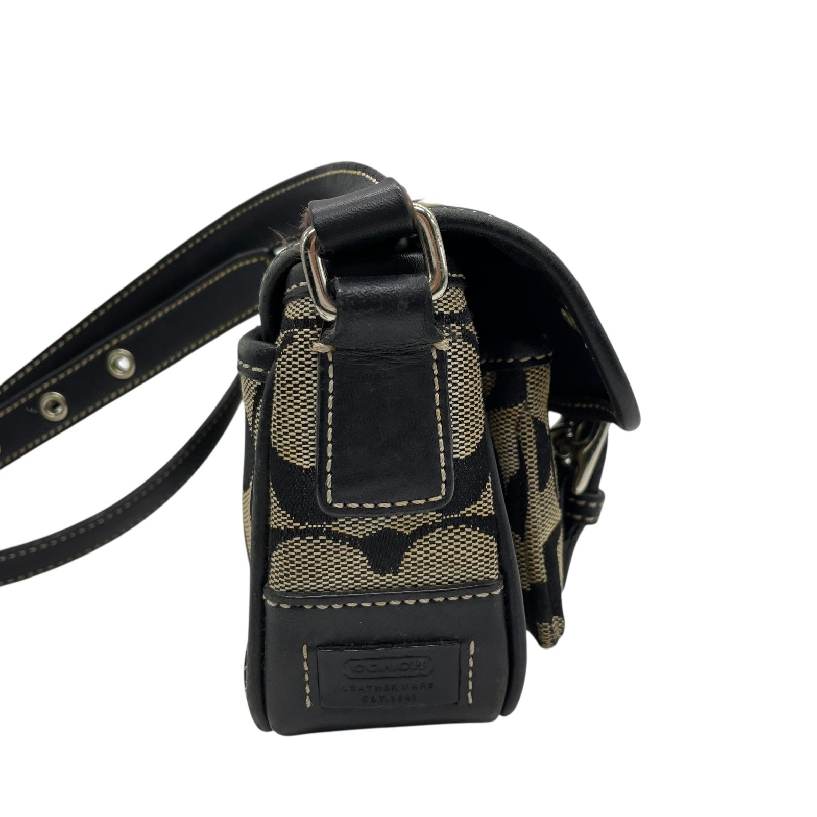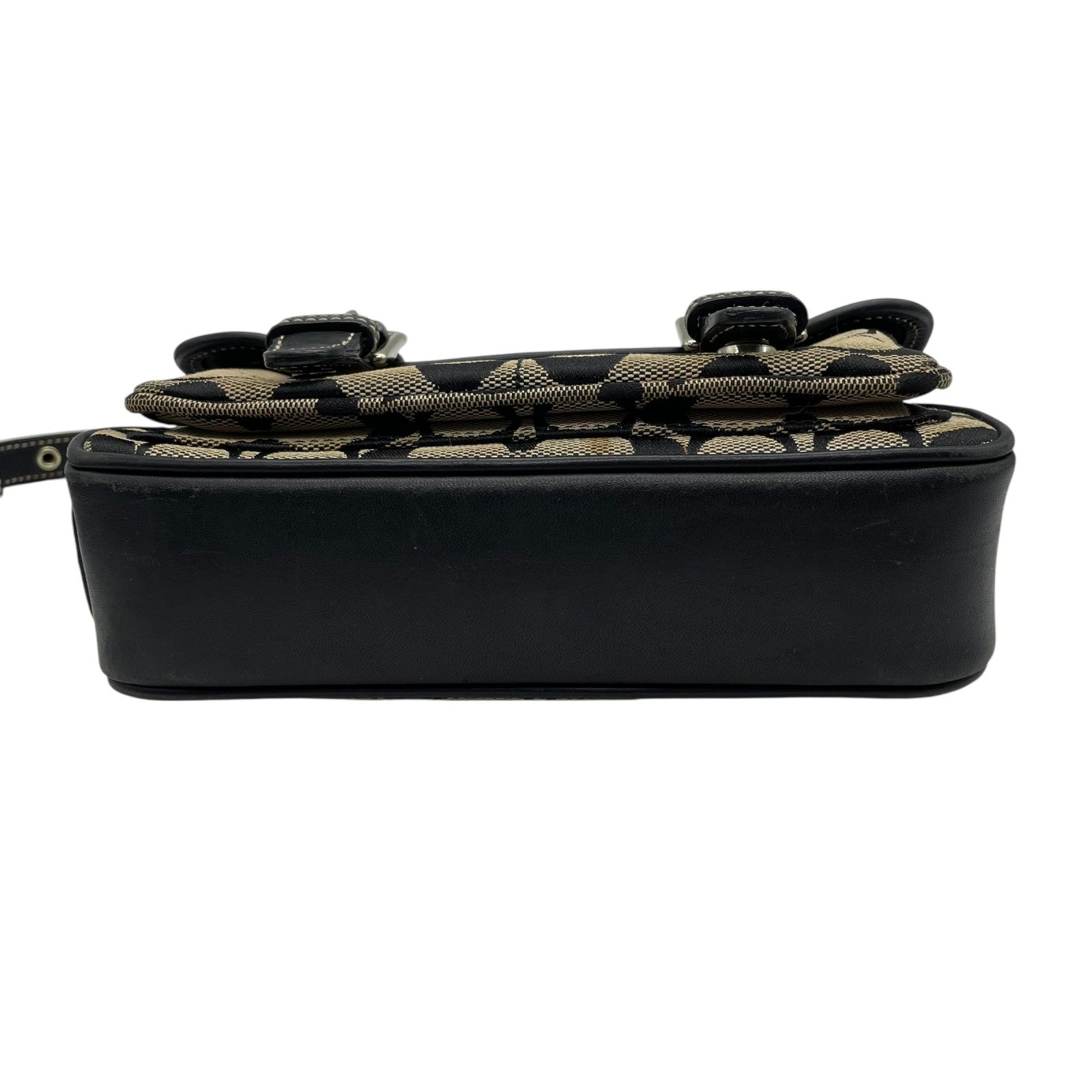 COACH コーチ ショルダーバッグ シグネチャー キャンバス レザー 黒 ブラック ベージュ シルバー金具 フラップ ベルト 横長 Y2K ミニバッグ 斜め掛け可 レディース S6