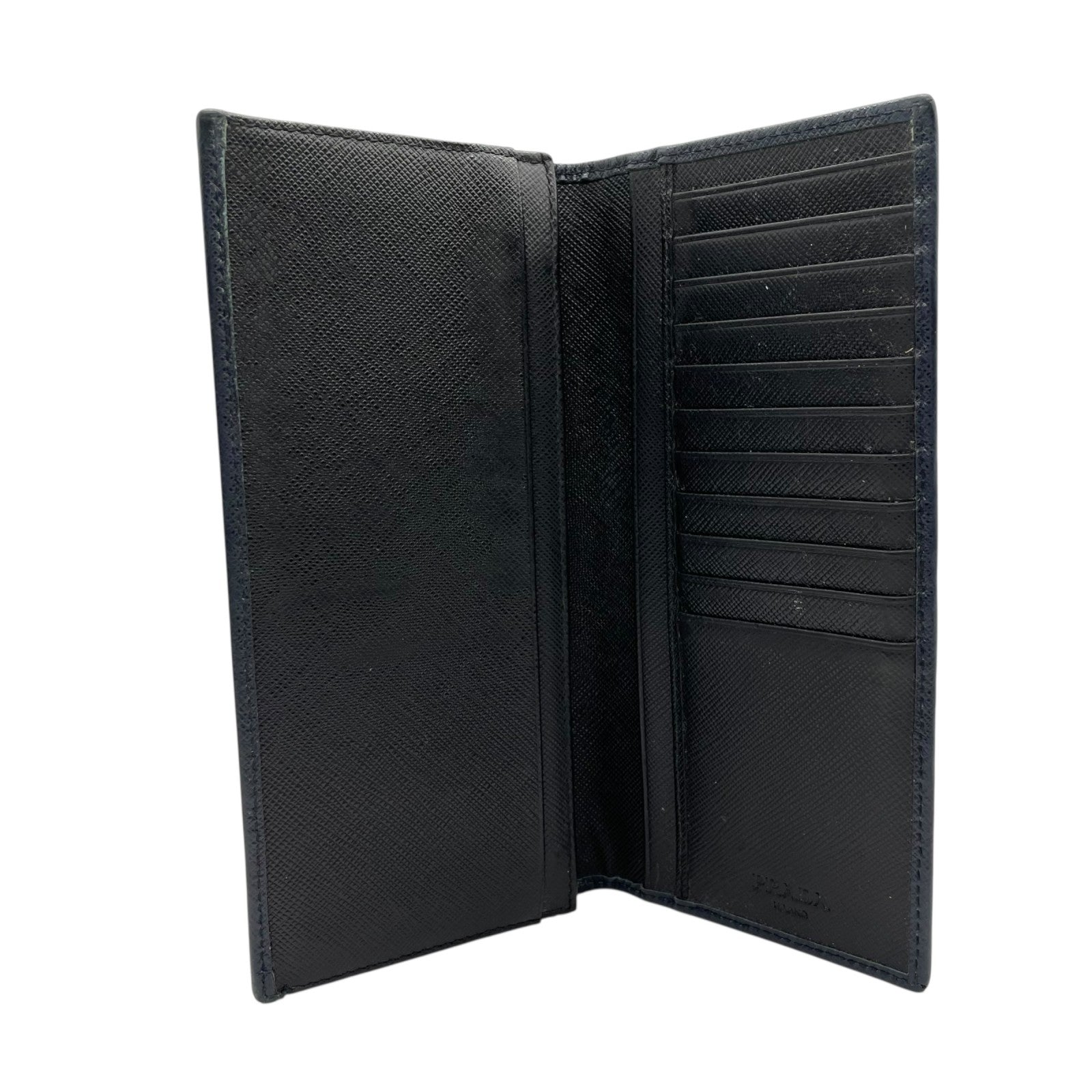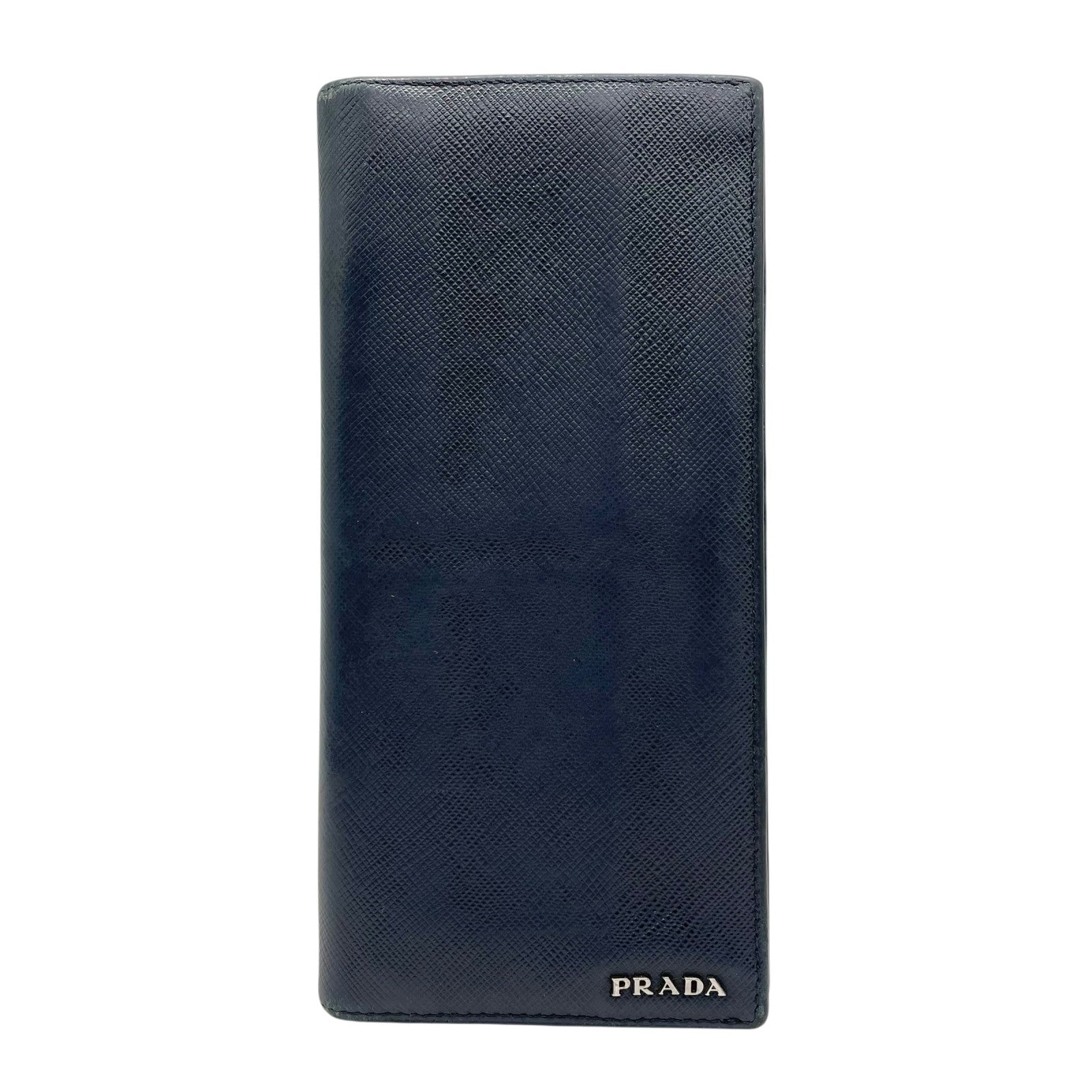 プラダ PRADA 長財布 ネイビー 紺 サフィアーノレザー シルバー金具 ロゴ 2MV836 メンズ M1