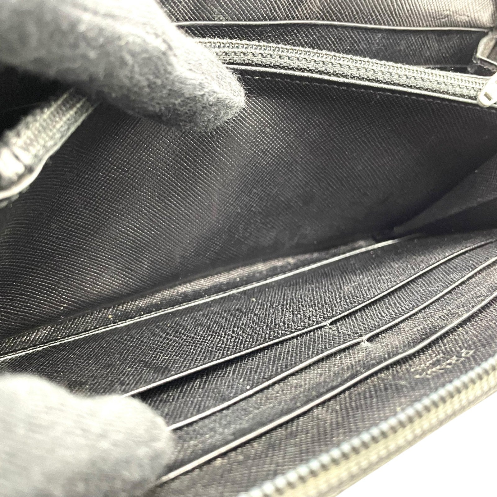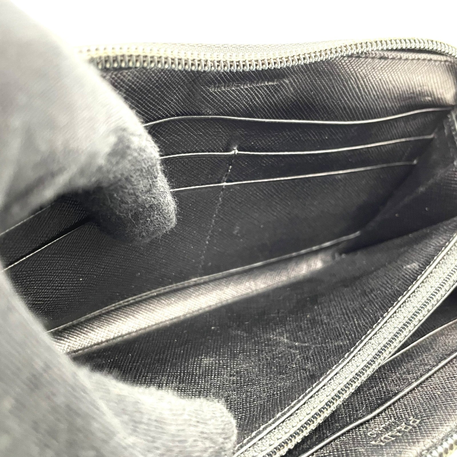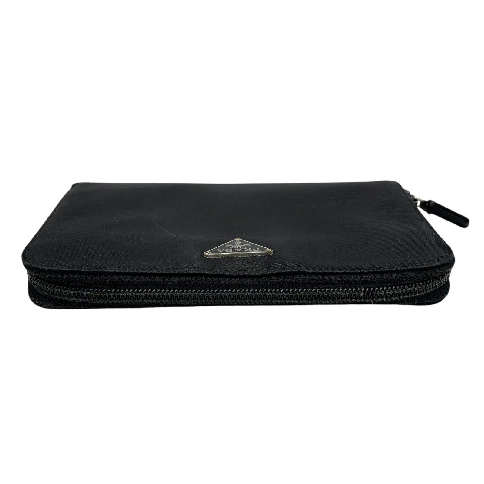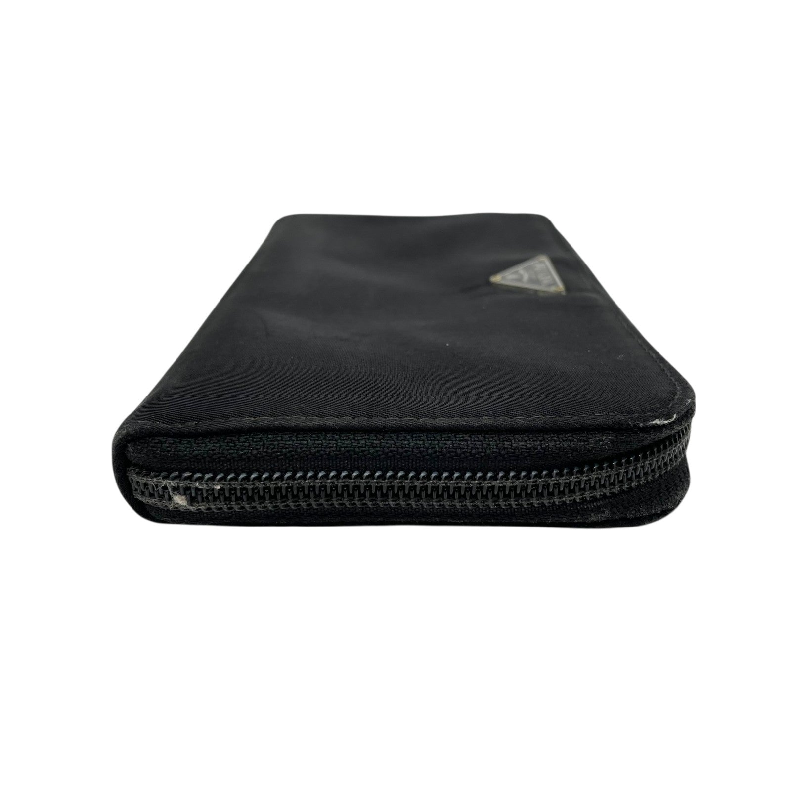 プラダ PRADA 長財布 ブラック 黒 NERO ナイロン レザー ラウンドファスナー 三角ロゴプレート トライアングルロゴ シルバー金具 メンズ レディース M1