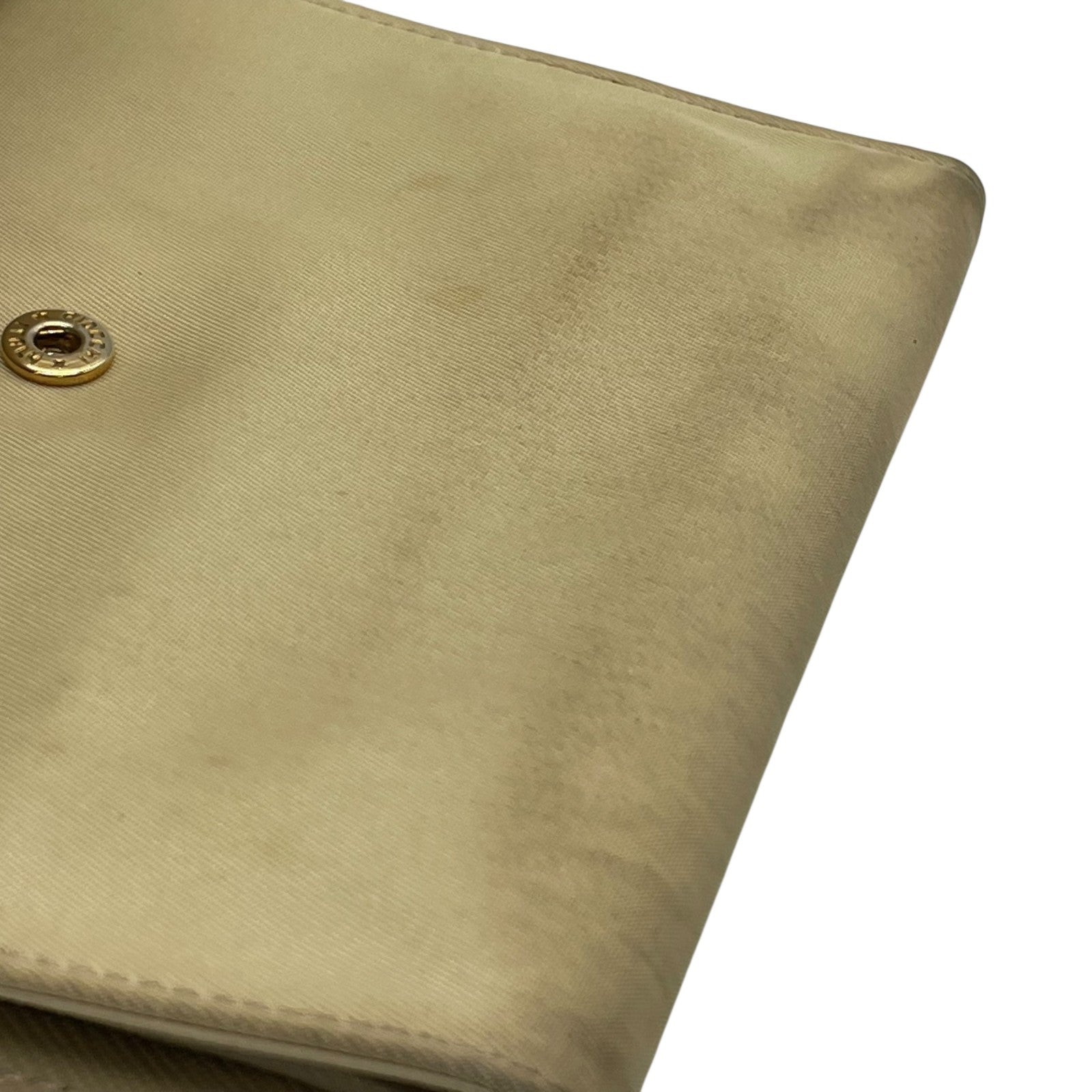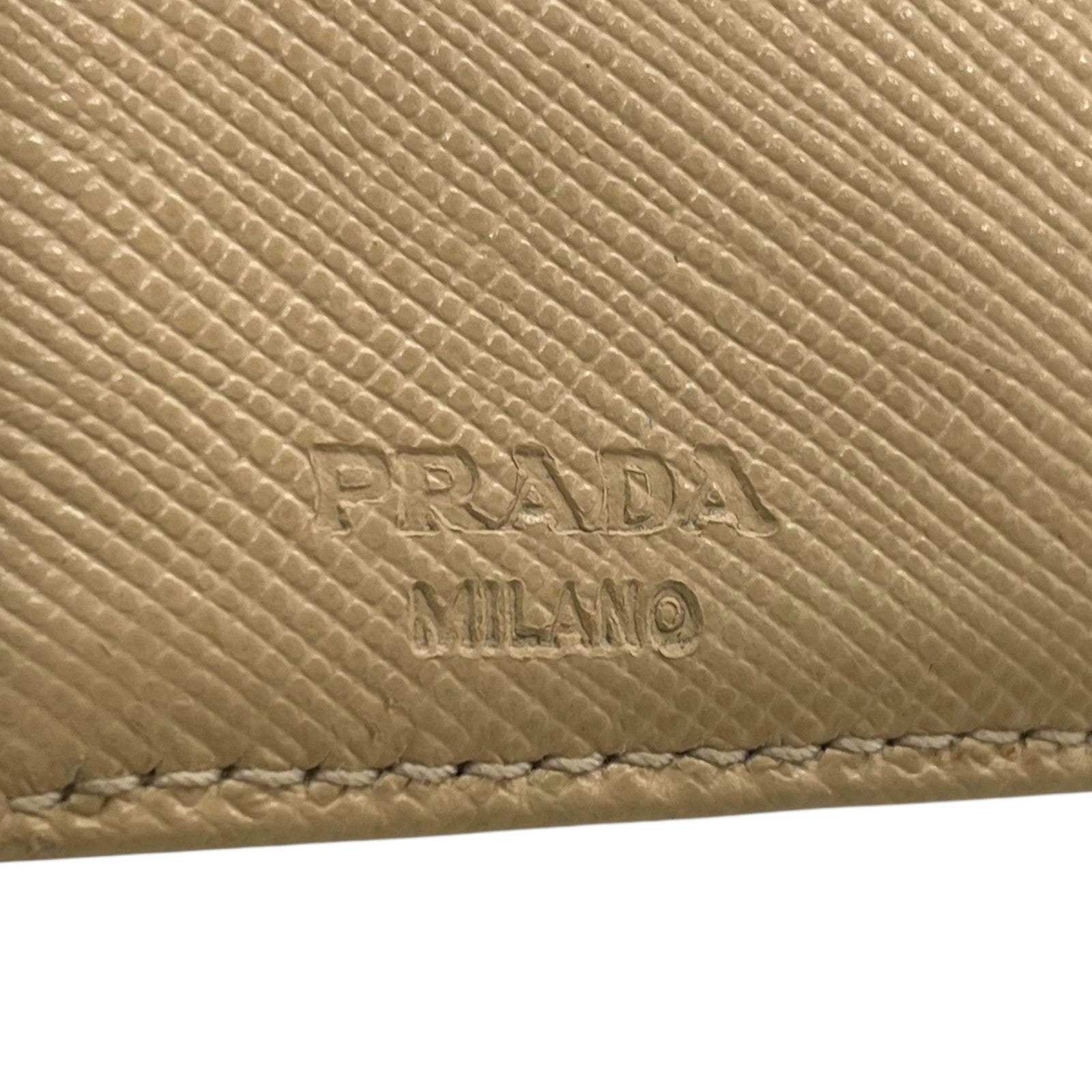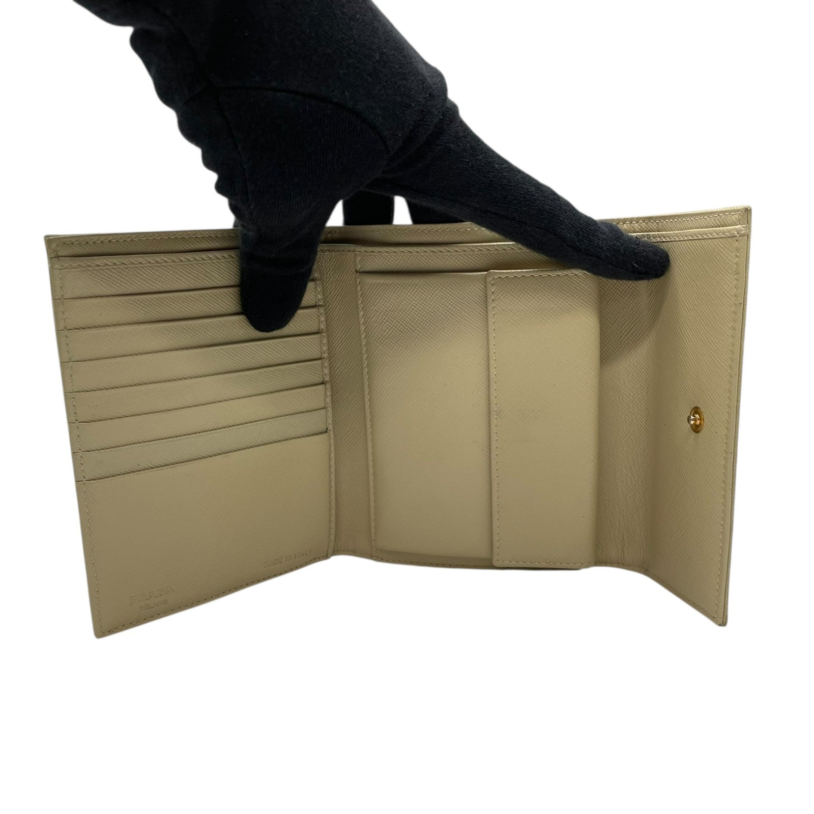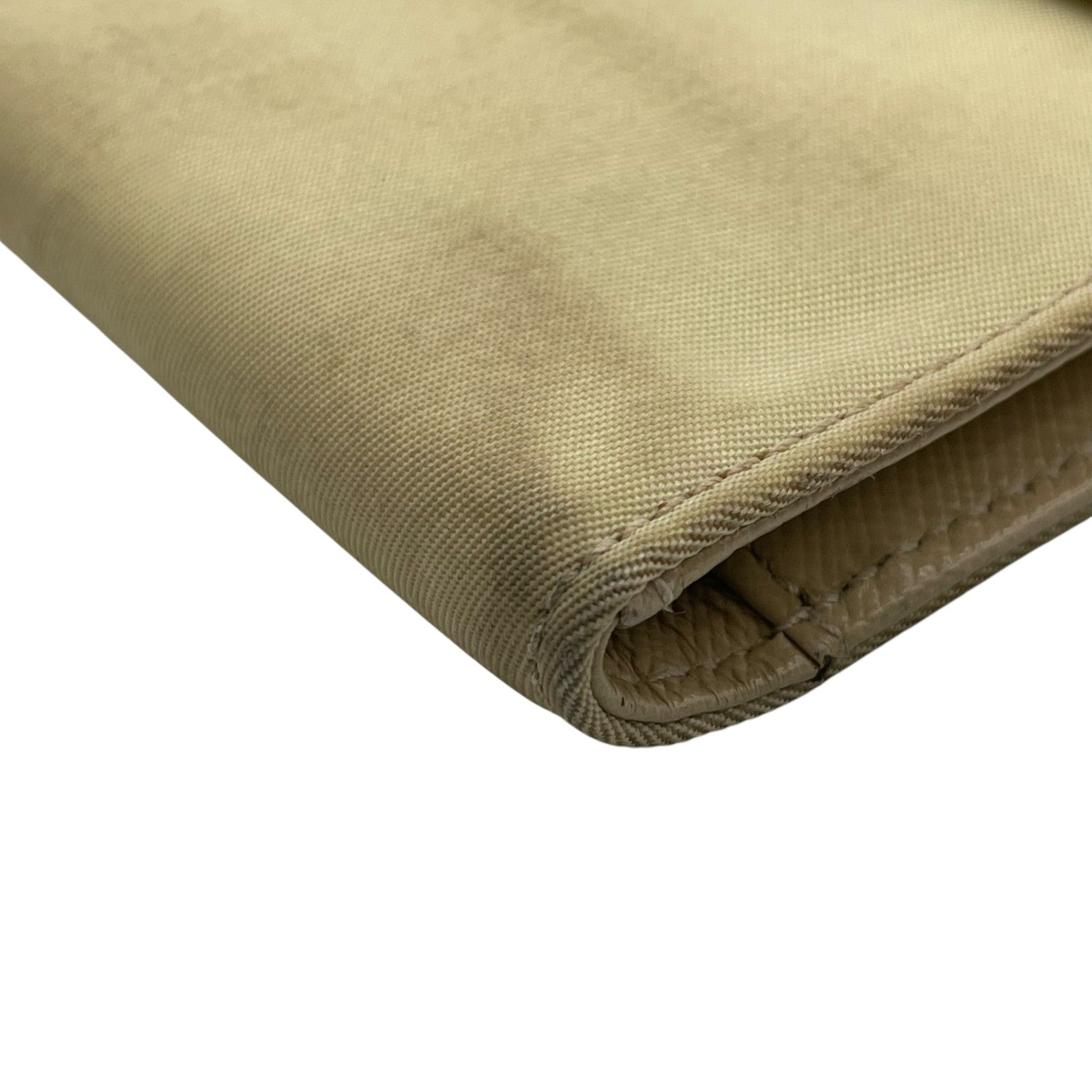 プラダ PRADA 三つ折り財布 コンパクトウォレット ベージュ ナイロン レザー 三角ロゴプレート トライアングルロゴ ゴールド金具 レディース M1