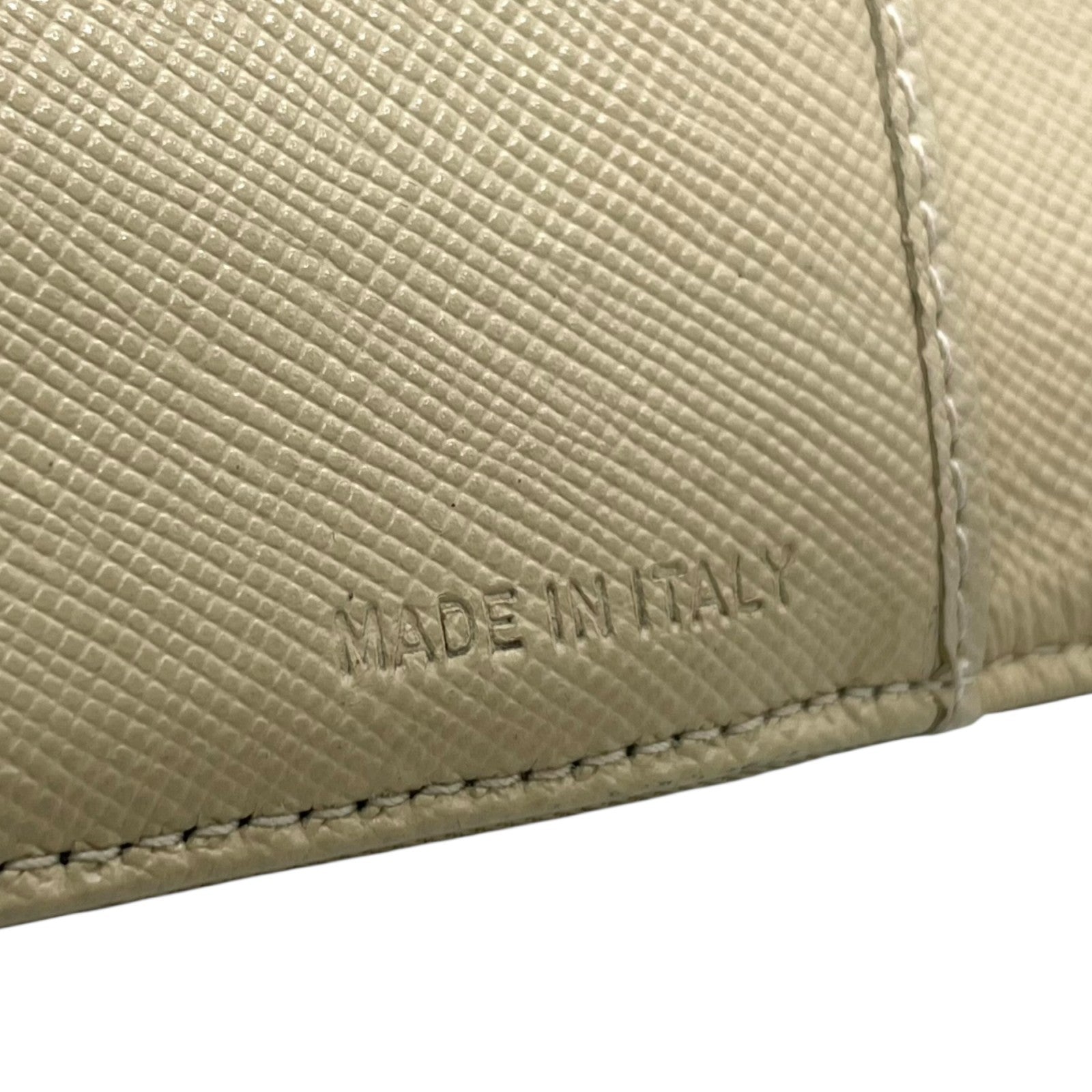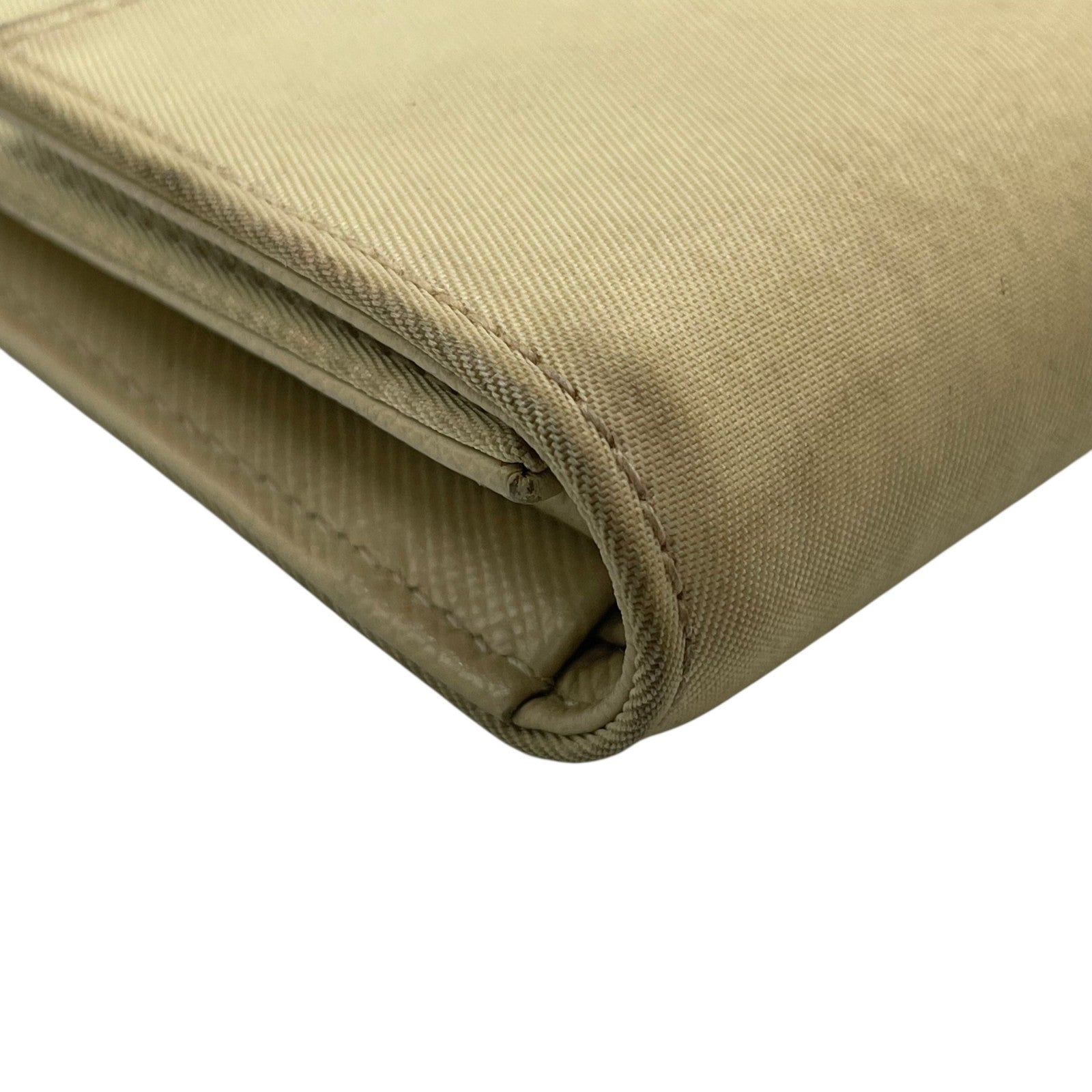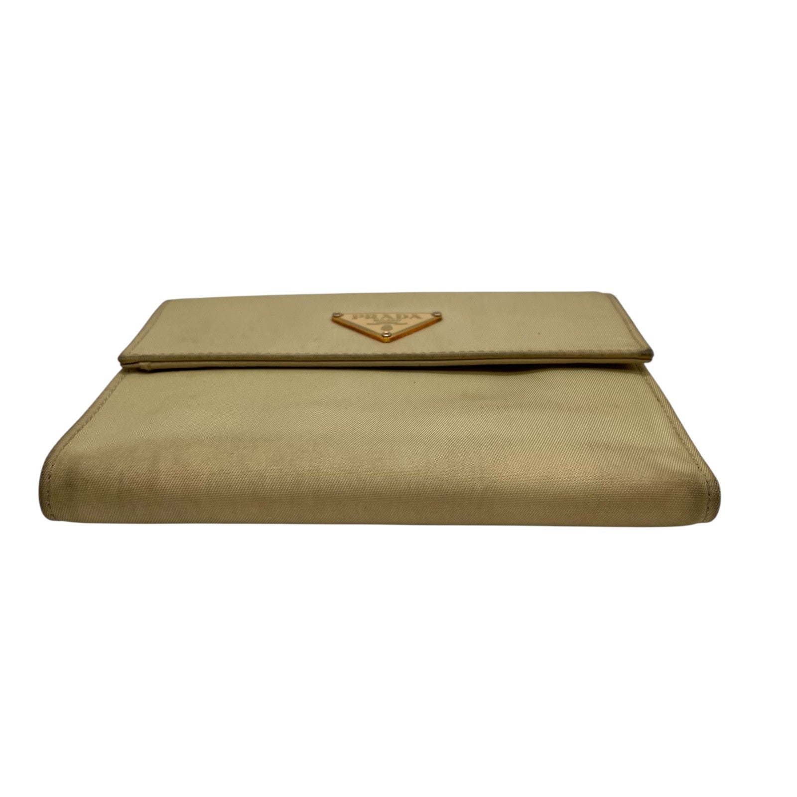 プラダ PRADA 三つ折り財布 コンパクトウォレット ベージュ ナイロン レザー 三角ロゴプレート トライアングルロゴ ゴールド金具 レディース M1