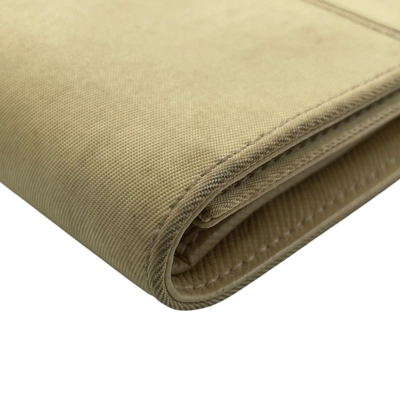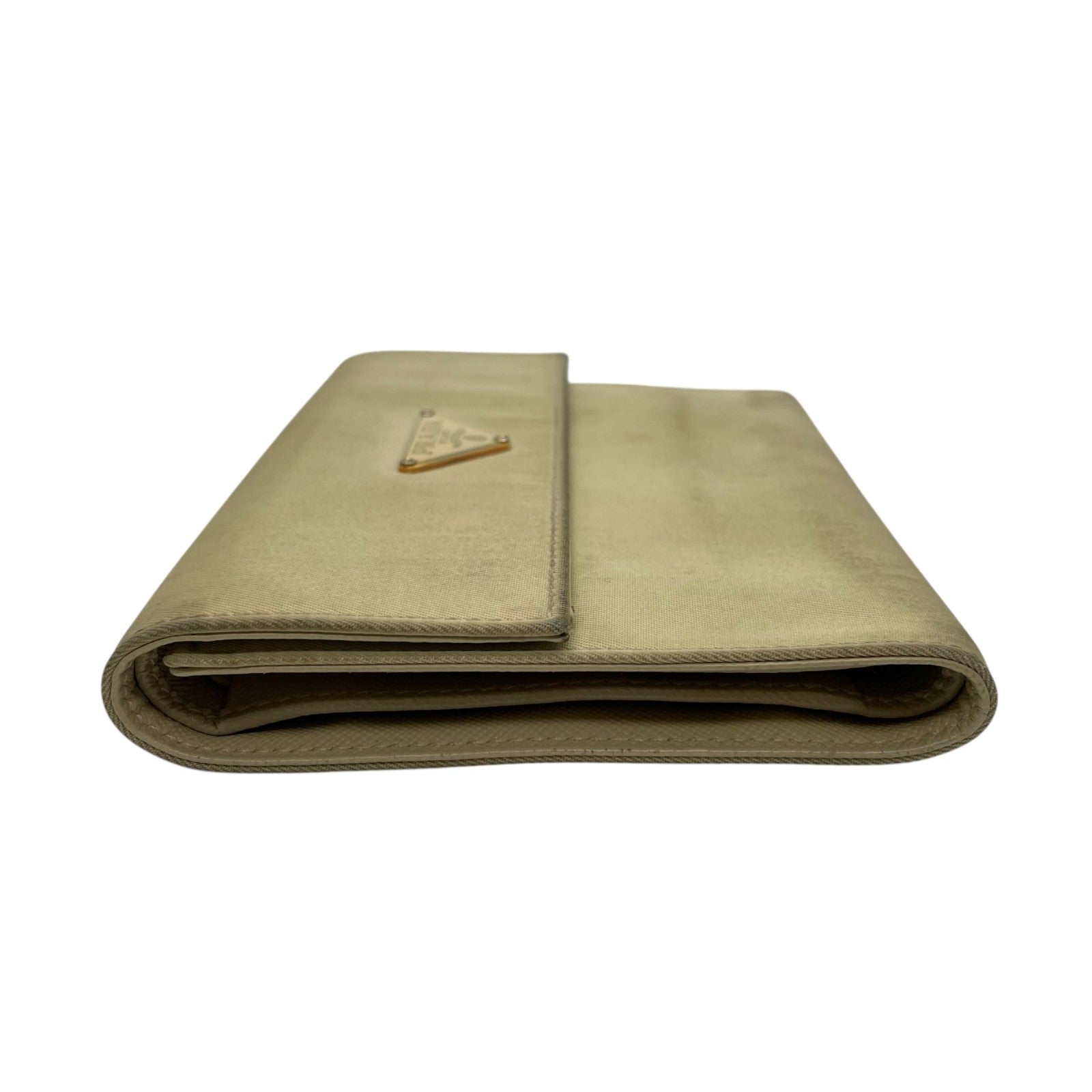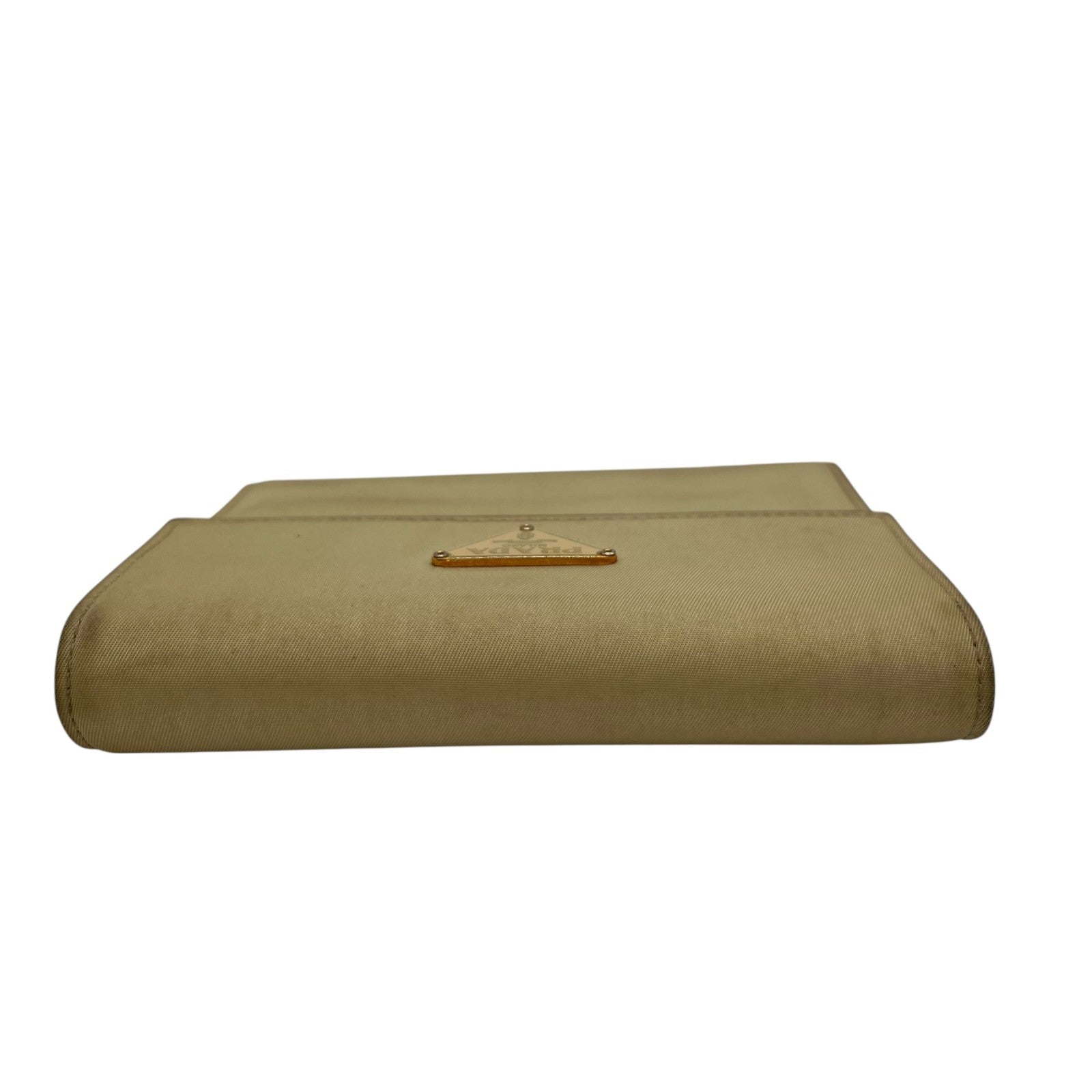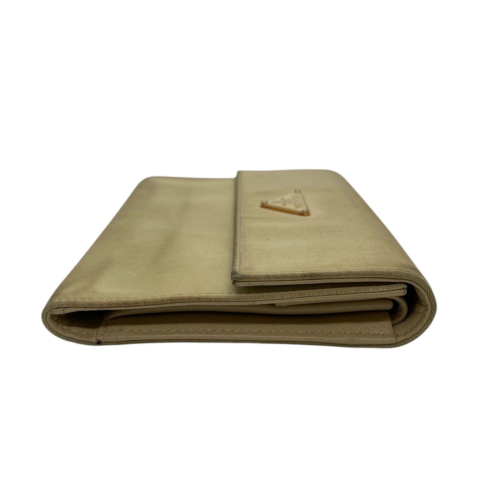 プラダ PRADA 三つ折り財布 コンパクトウォレット ベージュ ナイロン レザー 三角ロゴプレート トライアングルロゴ ゴールド金具 レディース M1