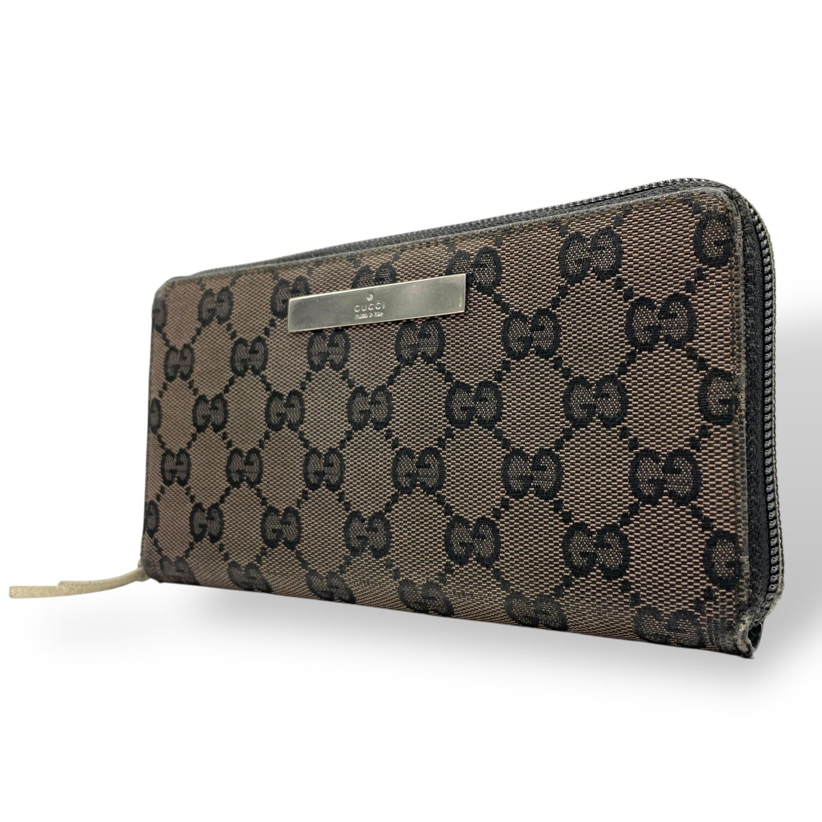 グッチ GUCCI 長財布 ラウンドファスナー GGキャンバス レザー ブラウン 茶 GG柄 ロゴ シルバー金具 メンズ レディース M1