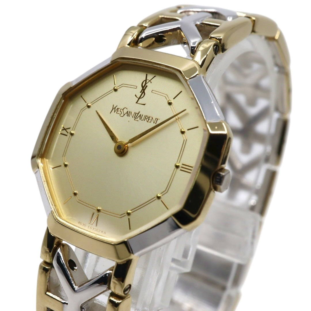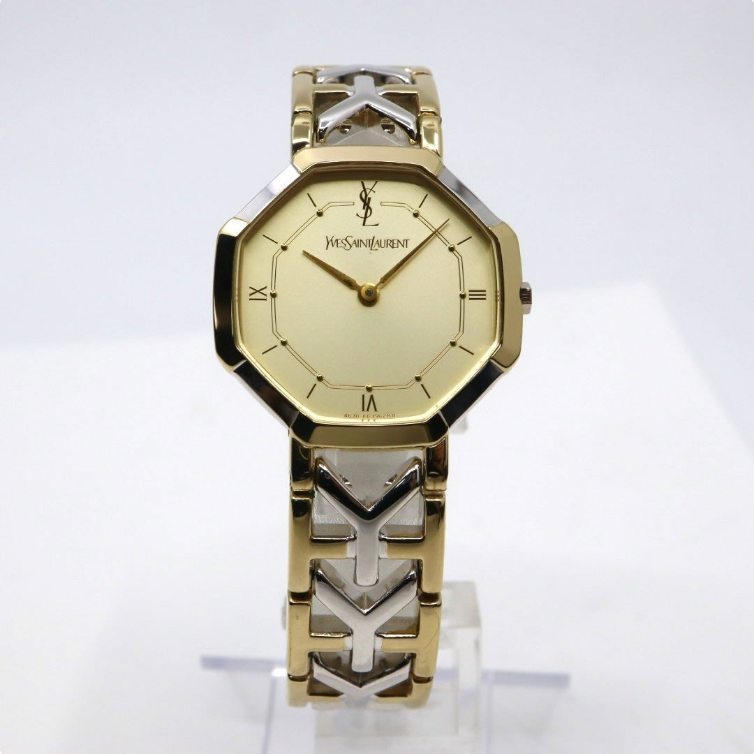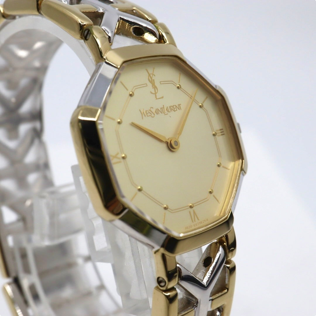 【新品同様/電池交換済】イヴサンローラン YSL 腕時計 4620-E62143 レディース クオーツ アナログ オクタゴン 八角形 ゴールド文字盤 コンビブレス ヴィンテージ クラシック エレガント ドレスウォッチ クリーニング済 G2