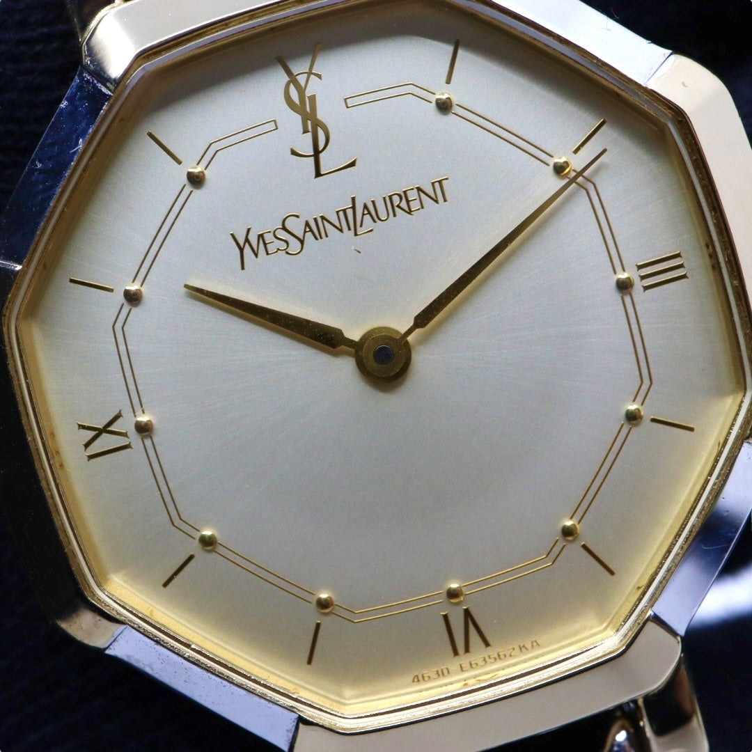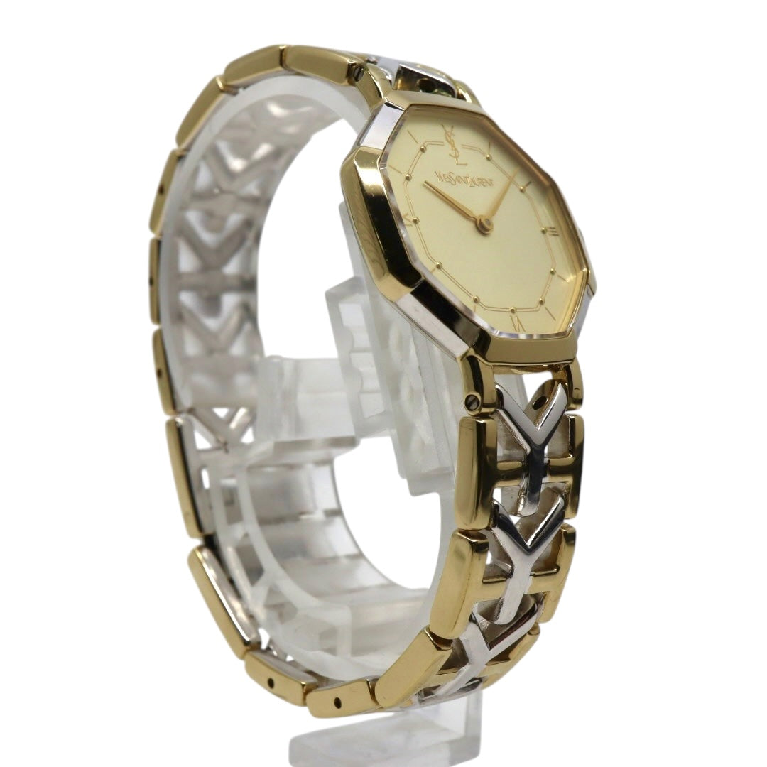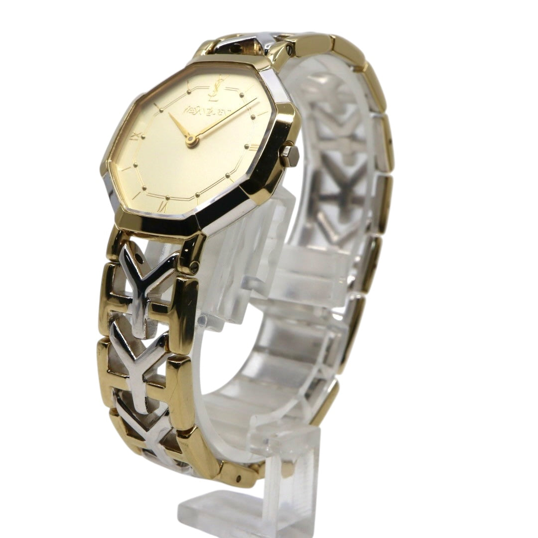 【新品同様/電池交換済】イヴサンローラン YSL 腕時計 4620-E62143 レディース クオーツ アナログ オクタゴン 八角形 ゴールド文字盤 コンビブレス ヴィンテージ クラシック エレガント ドレスウォッチ クリーニング済 G2