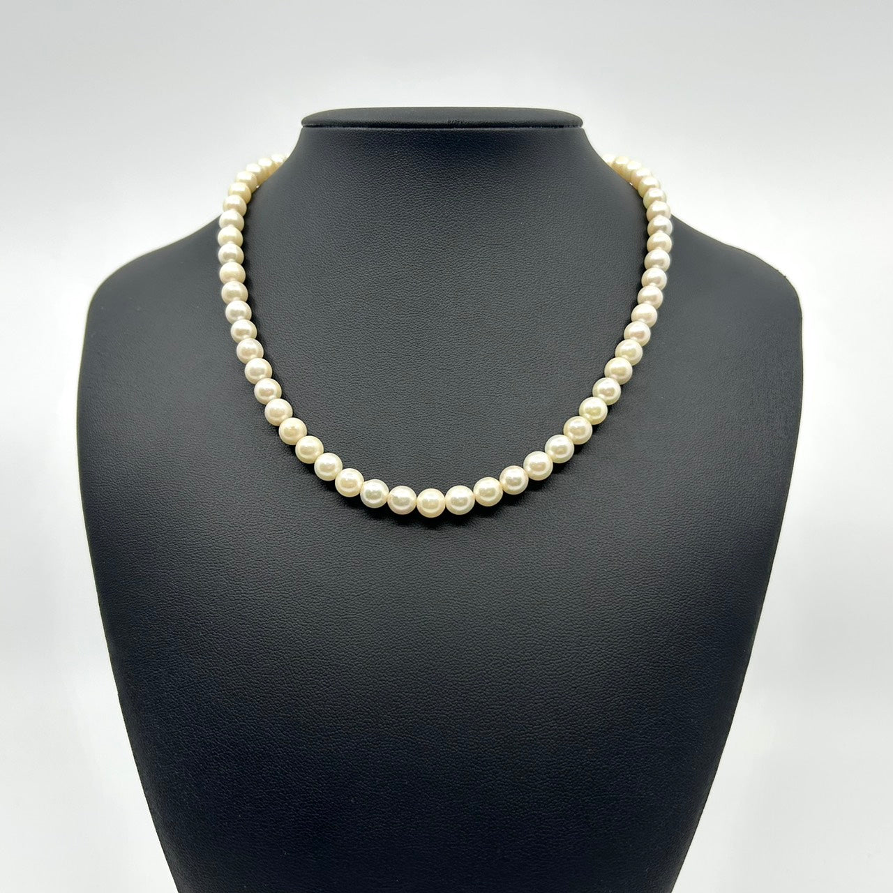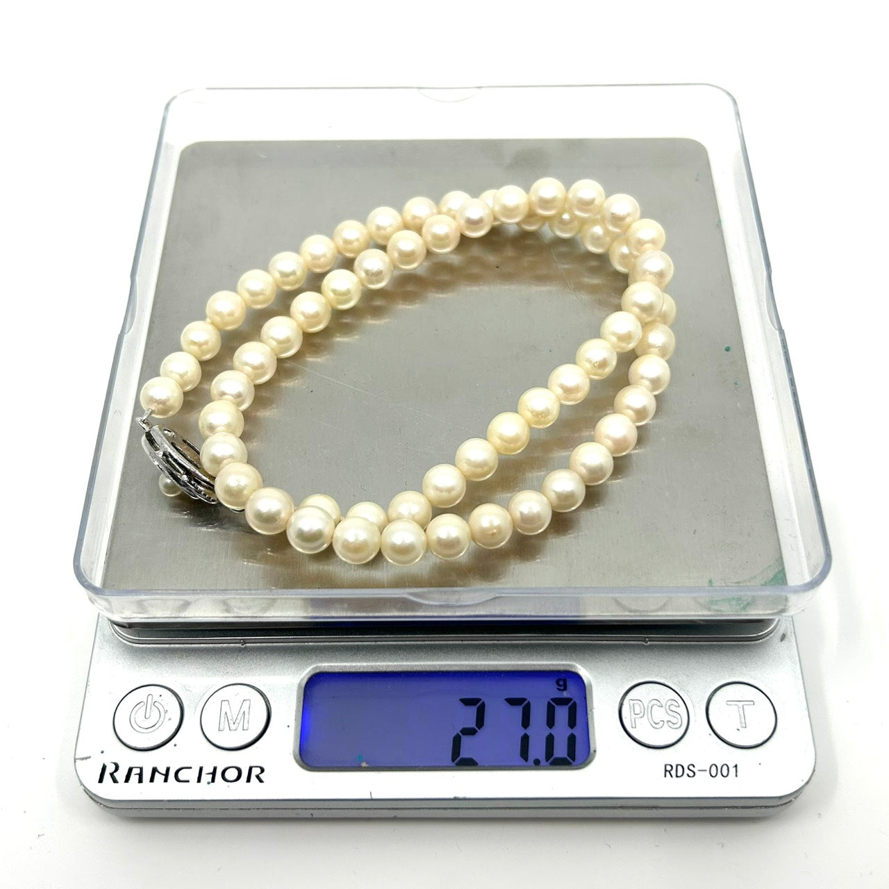 未使用 美品 あこや真珠 本真珠 パール 一連ネックレス SILVER刻印 オーバル クラスプ ホワイト系 真珠 アクセサリー エレガント フォーマル 冠婚葬祭 I3
