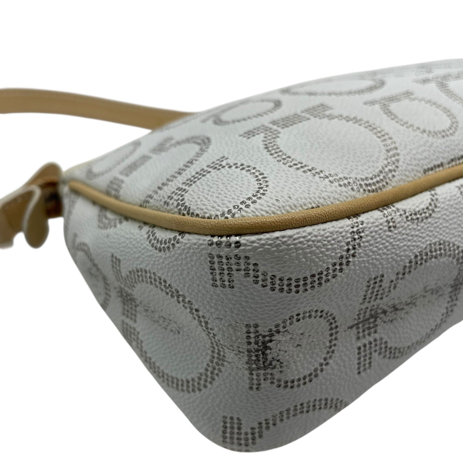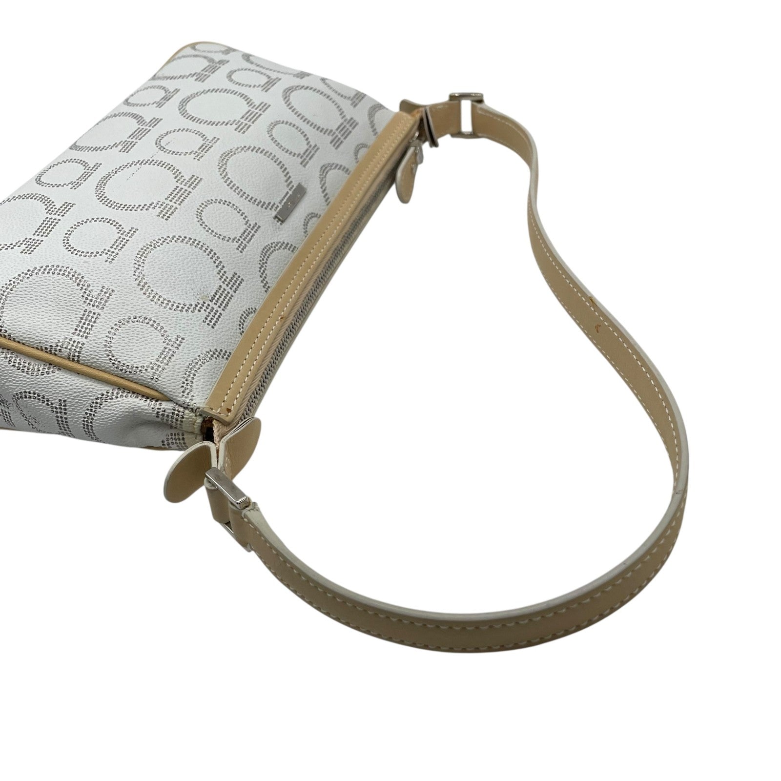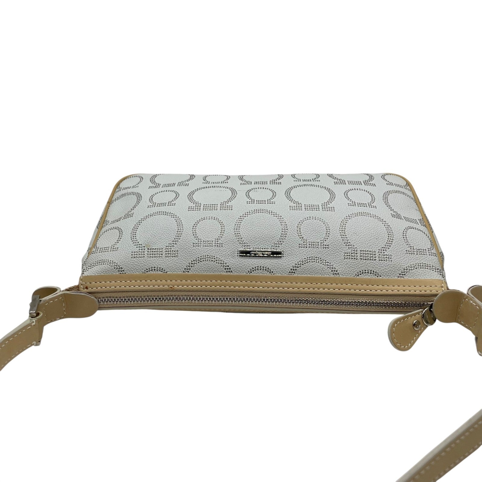 フェラガモ Salvatore Ferragamo ハンドバッグ アクセサリーポーチ ミニバッグ ガンチーニ AU-21 7497 グレー ベージュ レザー シルバー金具 ロゴ ワンショルダー 肩掛け可 レディース C5
