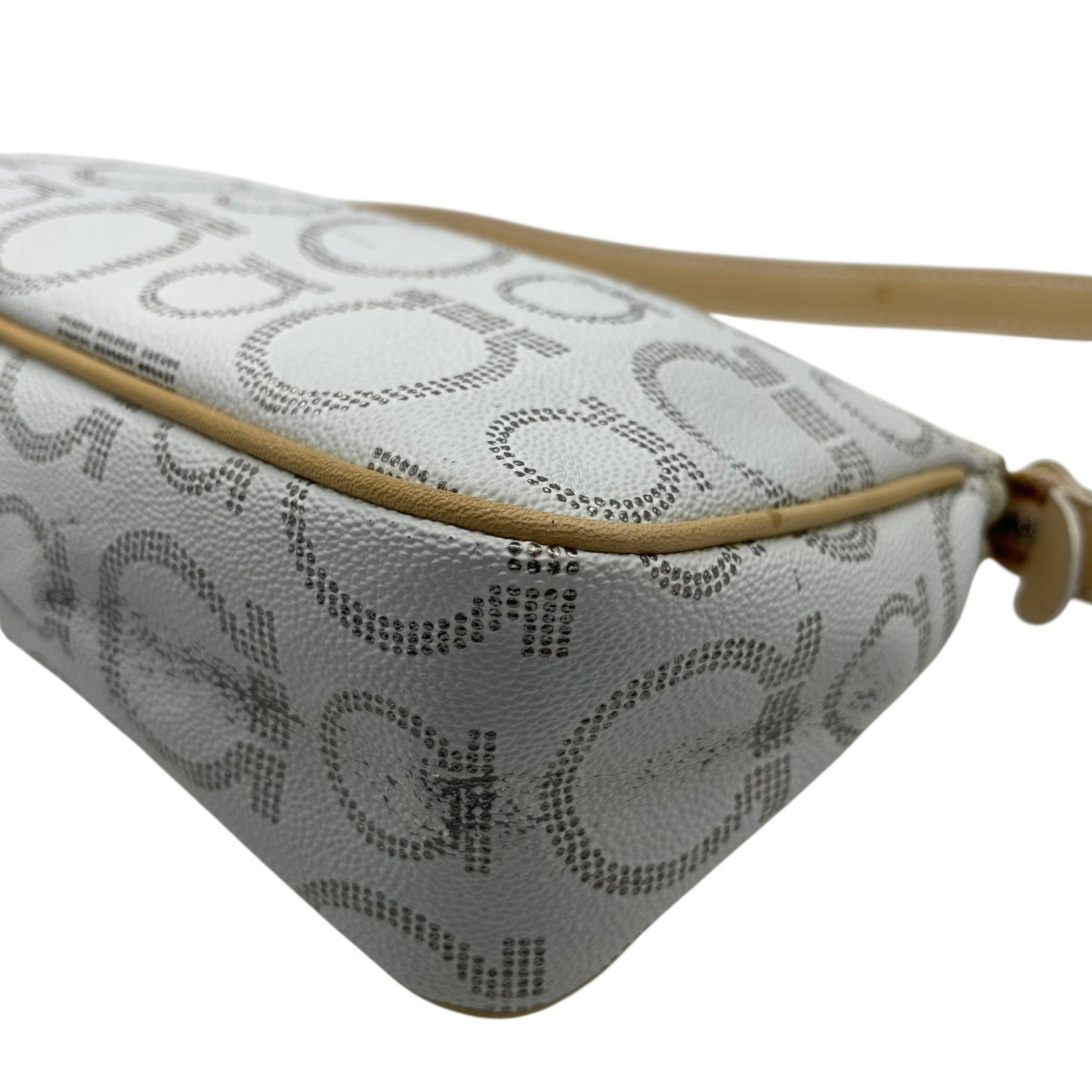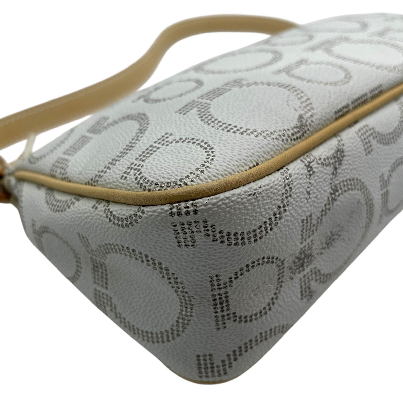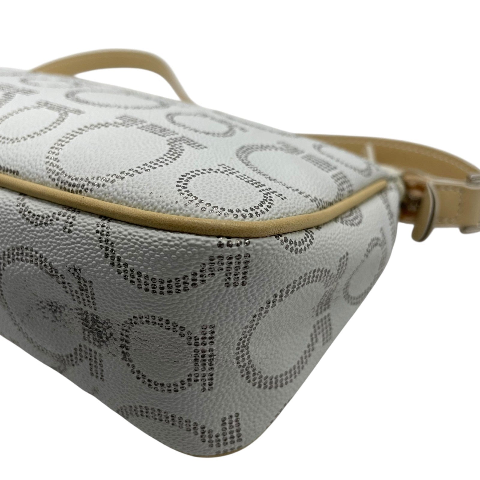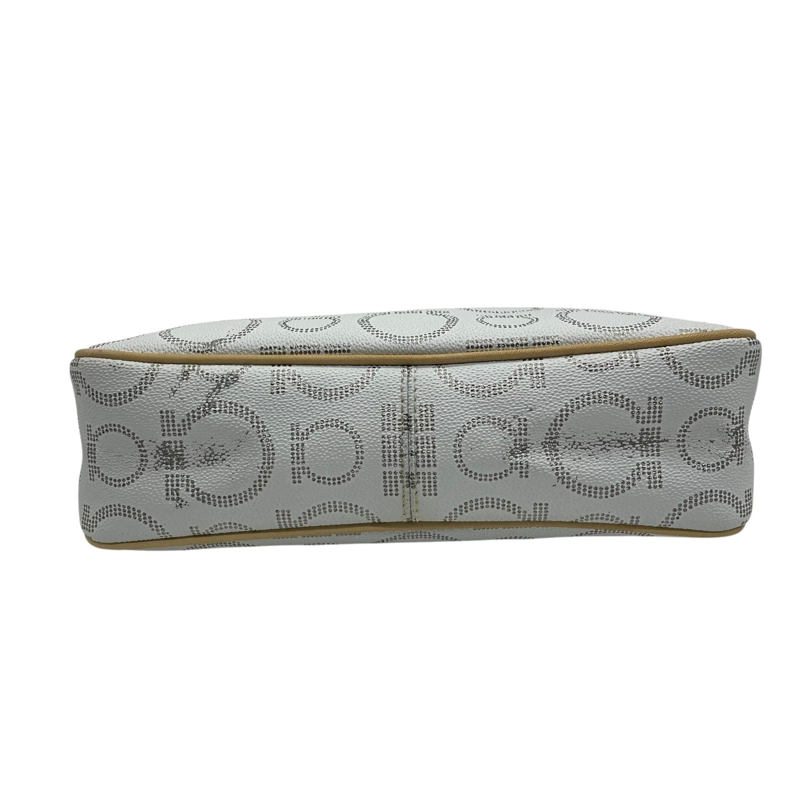 フェラガモ Salvatore Ferragamo ハンドバッグ アクセサリーポーチ ミニバッグ ガンチーニ AU-21 7497 グレー ベージュ レザー シルバー金具 ロゴ ワンショルダー 肩掛け可 レディース C5