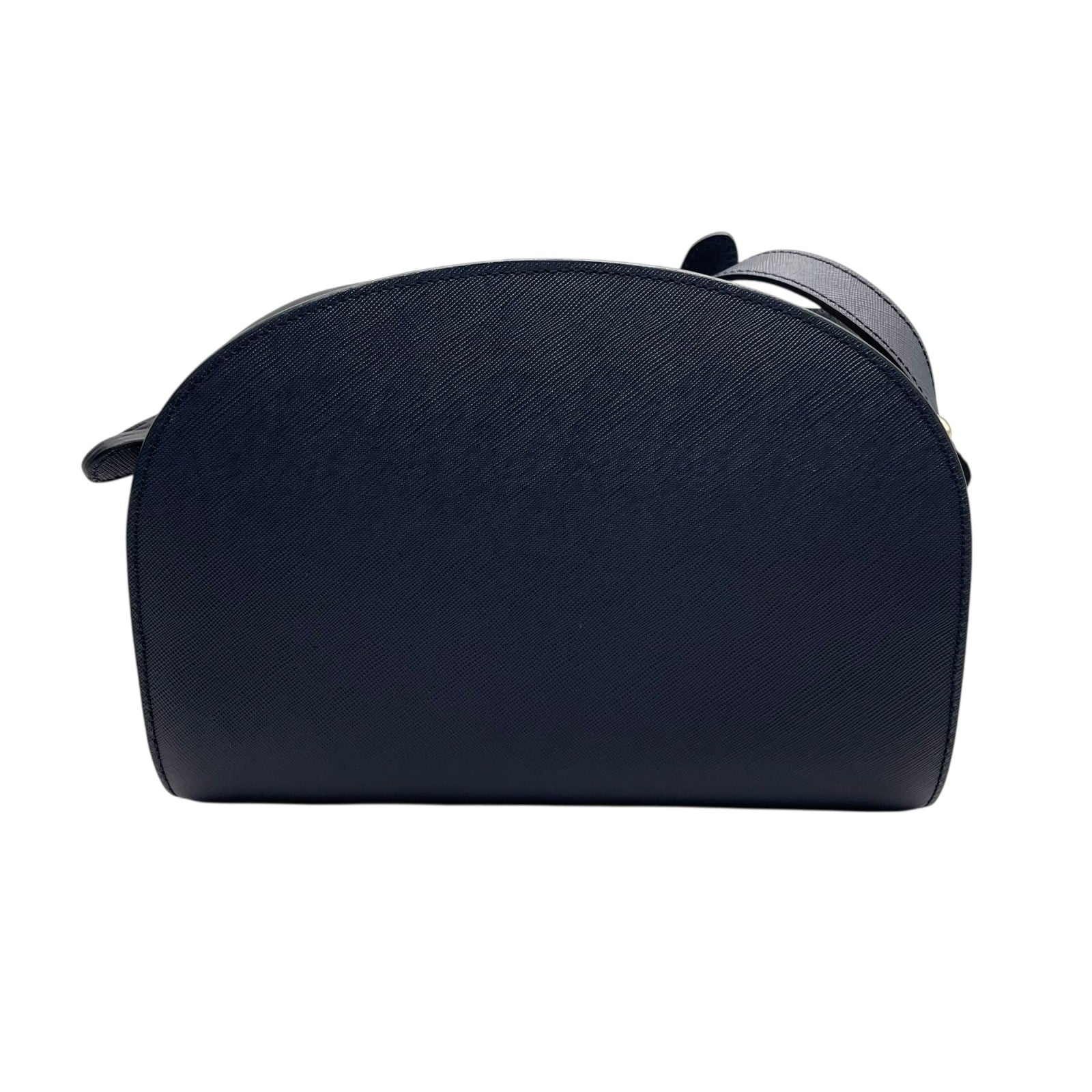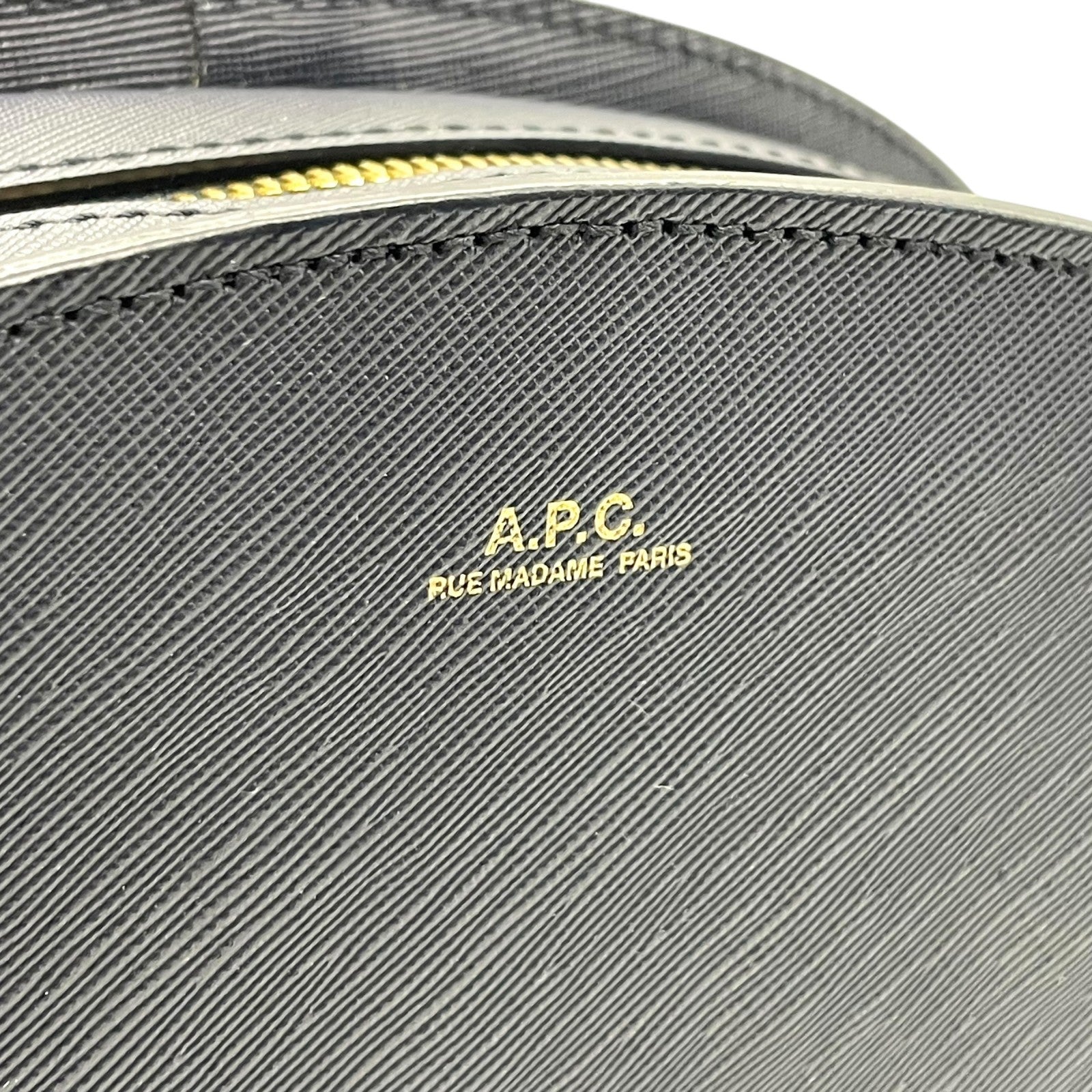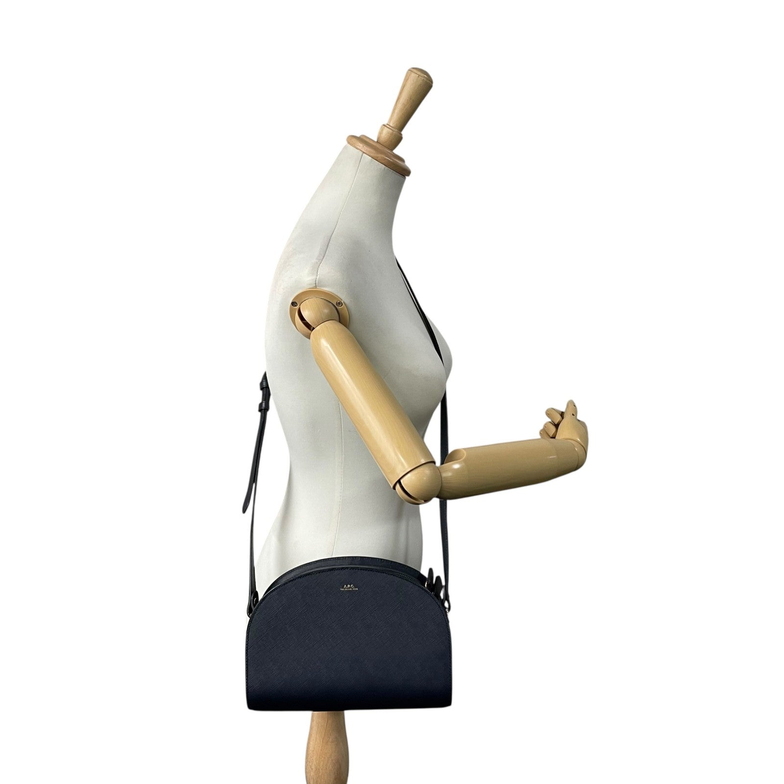 未使用級 アーペーセー A.P.C デミルーン Demi-Lune ショルダーバッグ クロスボディ 紺 ネイビー サフィアーノレザー ゴールド金具 半月型 ハーフムーン ロゴ 斜め掛け可 レディース B2