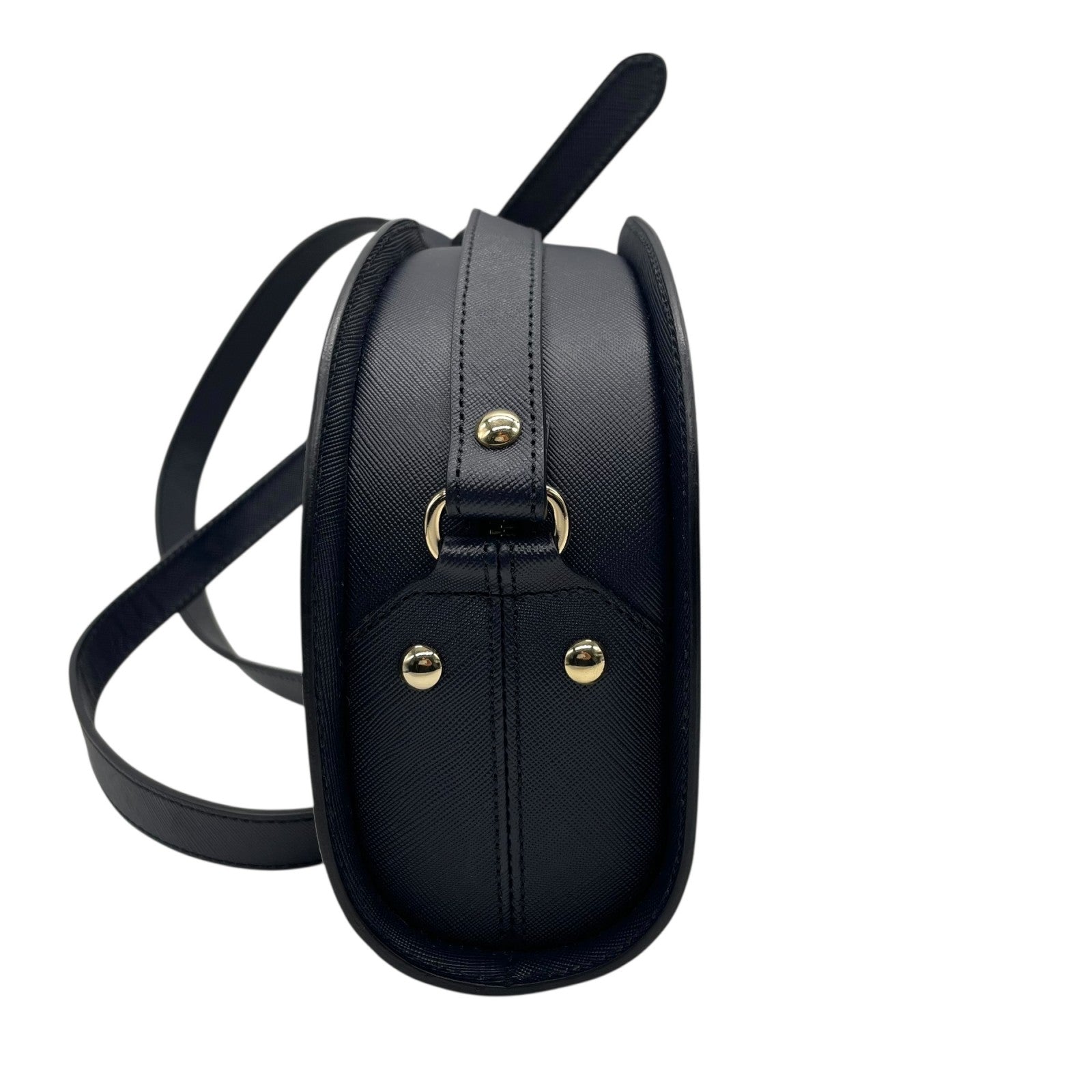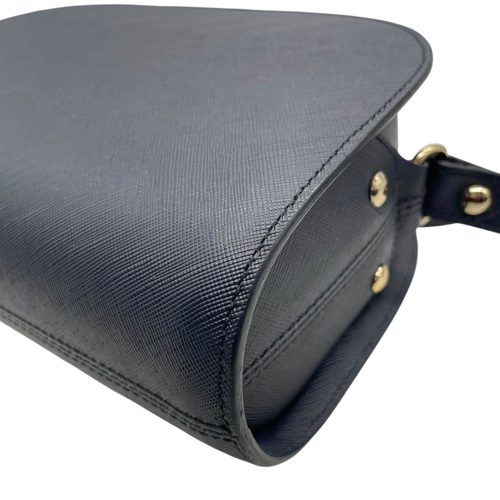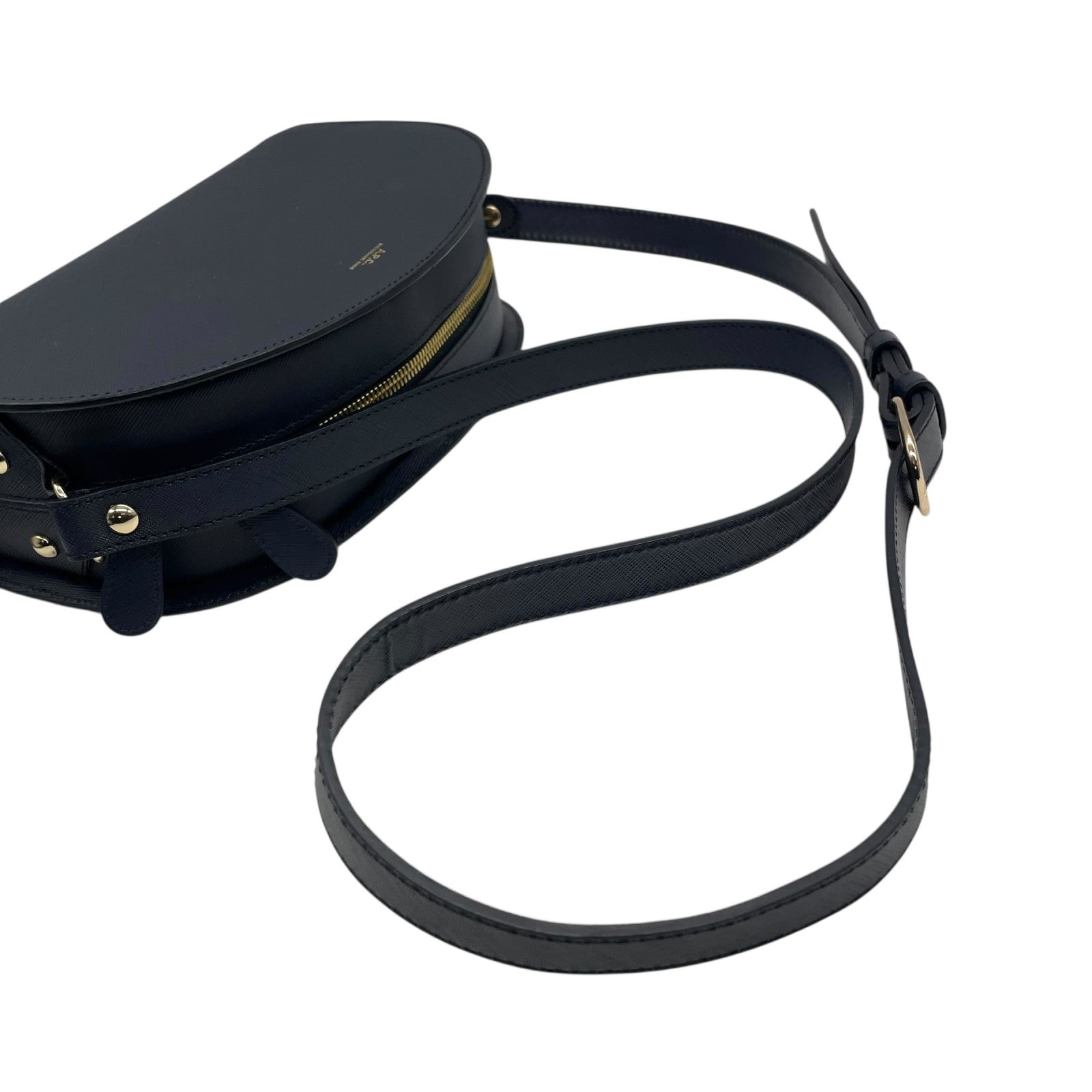 未使用級 アーペーセー A.P.C デミルーン Demi-Lune ショルダーバッグ クロスボディ 紺 ネイビー サフィアーノレザー ゴールド金具 半月型 ハーフムーン ロゴ 斜め掛け可 レディース B2