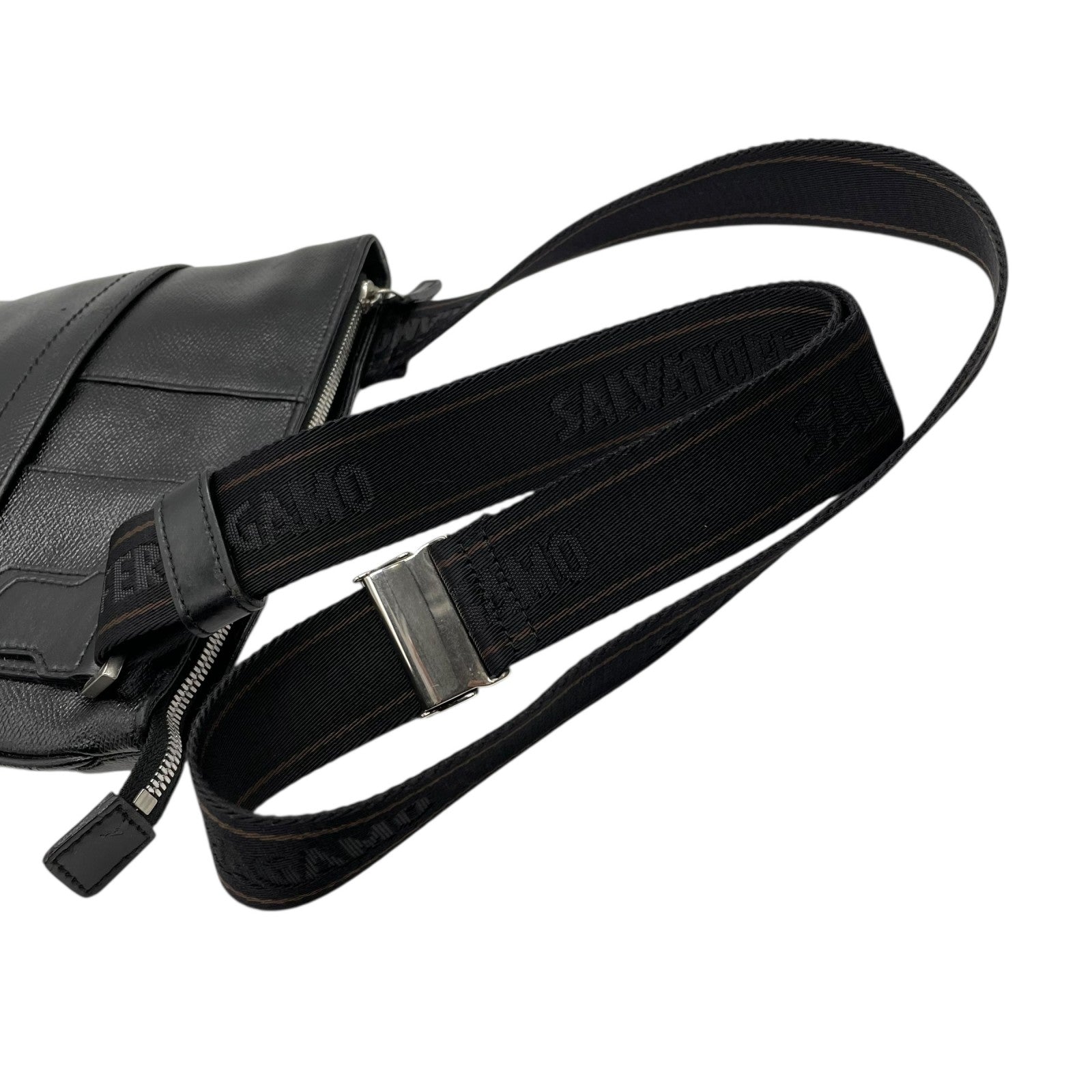 フェラガモ Salvatore Ferragamo ショルダーバッグ サコッシュ 黒 ブラック レザー シルバー金具 ロゴストラップ 斜め掛け可 メンズ K6