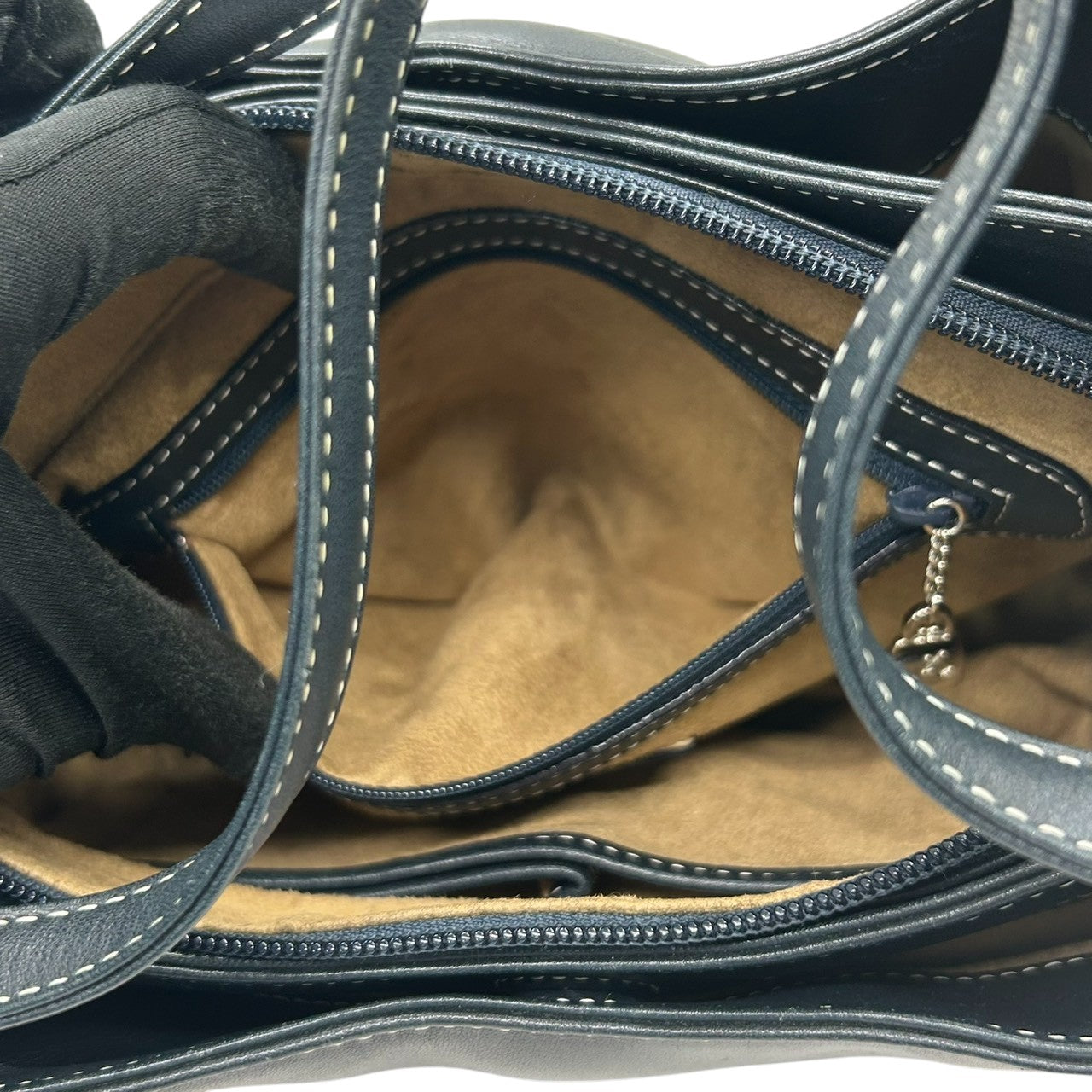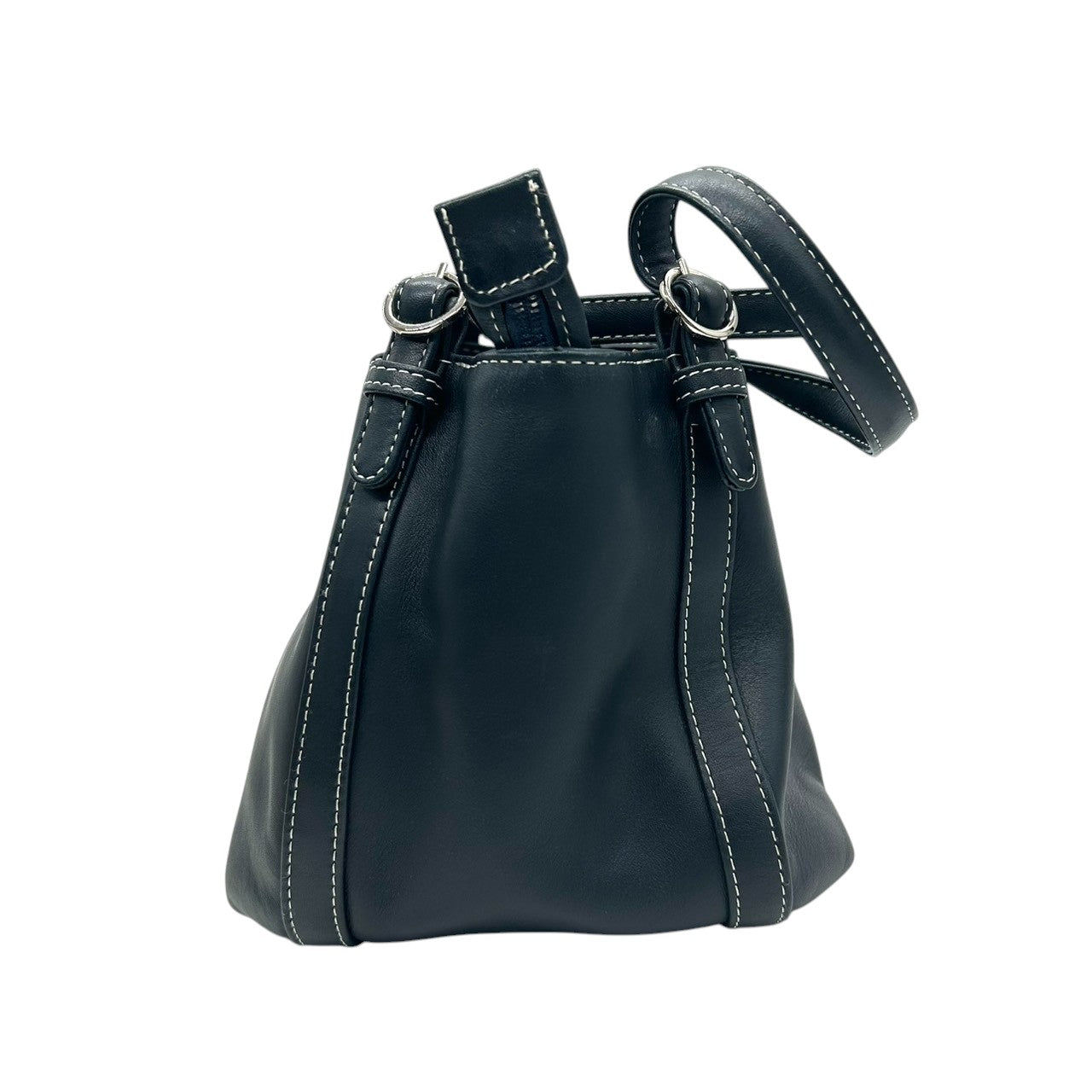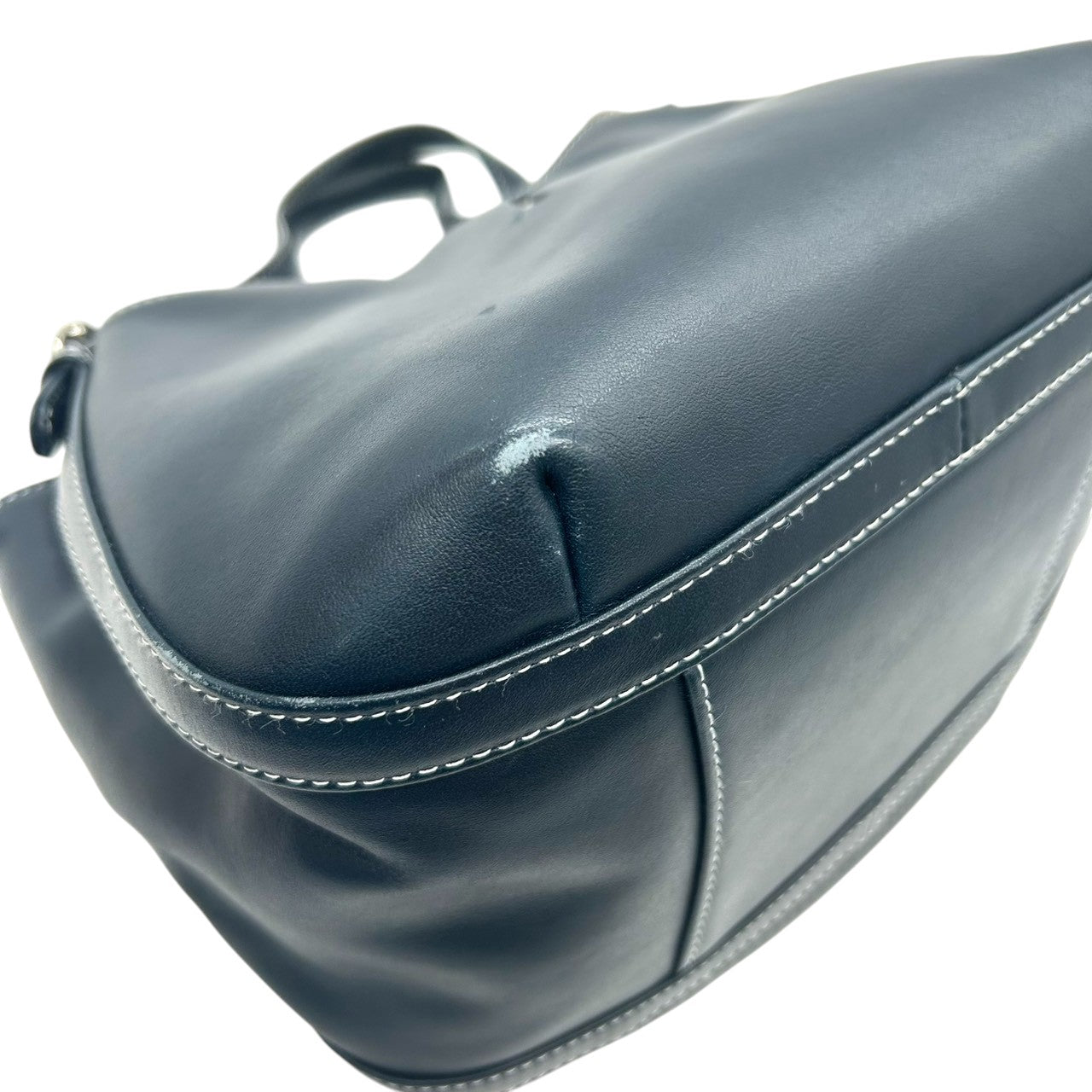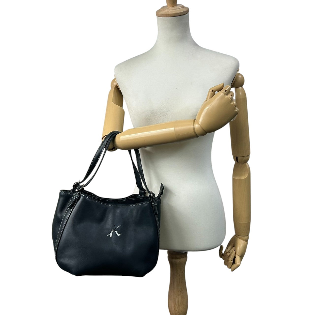 【美品】Kitamura キタムラ ハンドバッグ ショルダーバッグ ワンショルダー レザー Kロゴ ステッチ ネイビー 紺 シルバー金具 レディース エレガント 上品 フォーマル カジュアル 通勤 自立可 G3