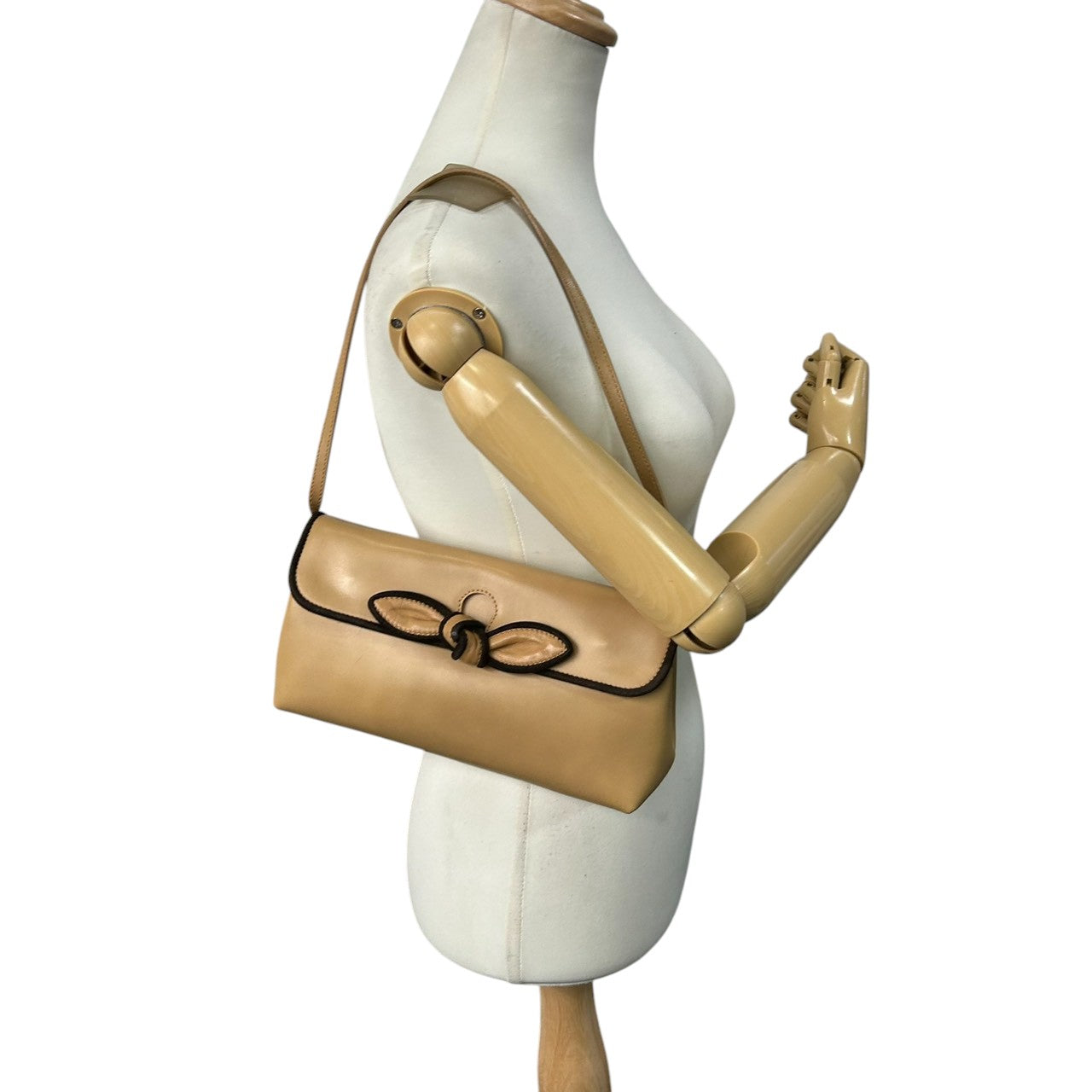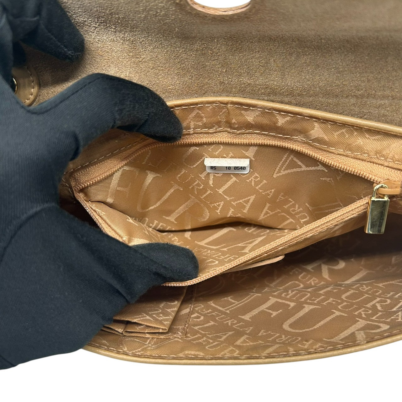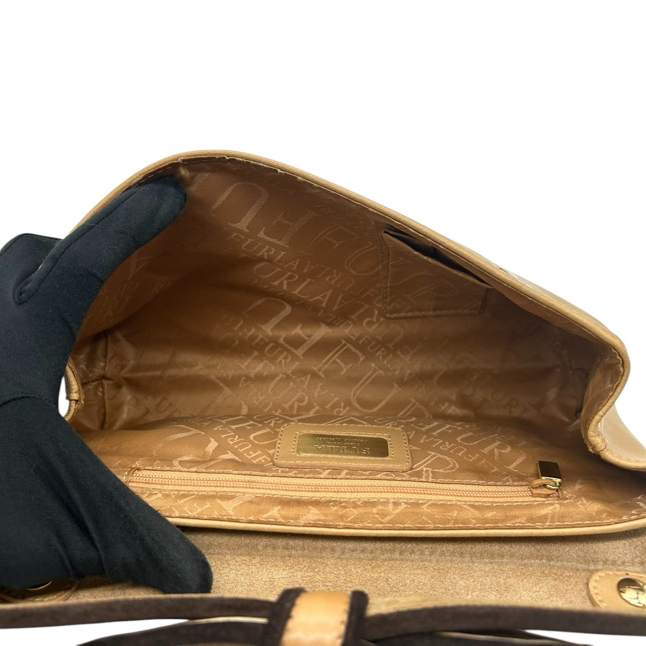美品 フルラ FURLA ショルダーバッグ レザー ベージュ リボン 斜め掛け可 ワンショルダー エレガント 上品 イタリア製 フォーマル カジュアル デイリーユース シンプル クラシック レディース 大人 スタイリッシュ 自立可 U2