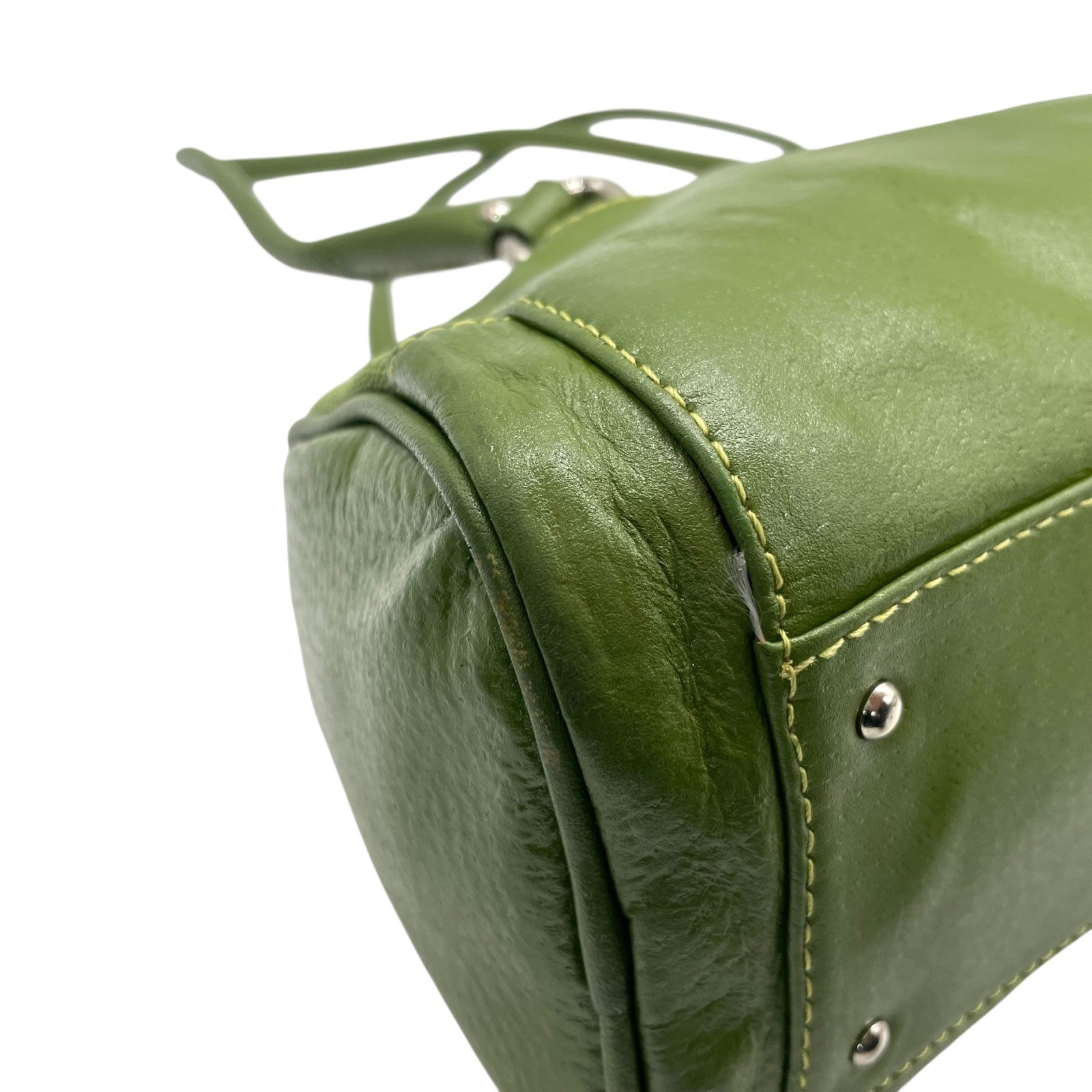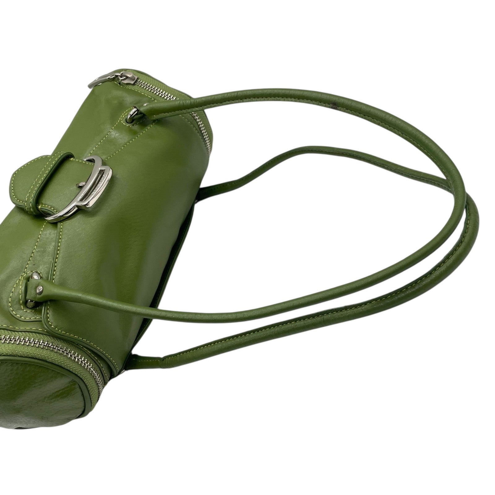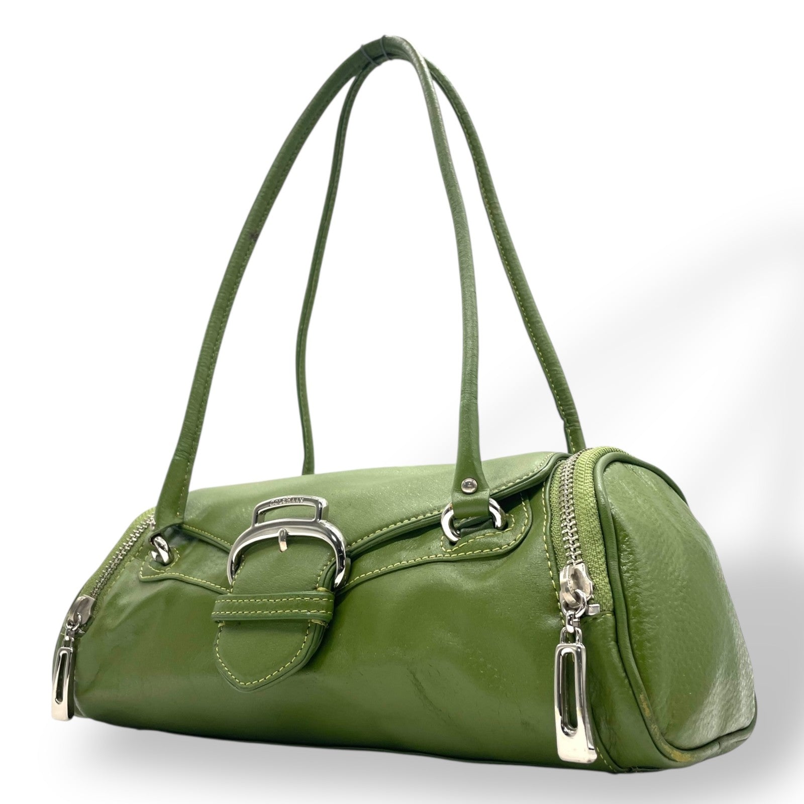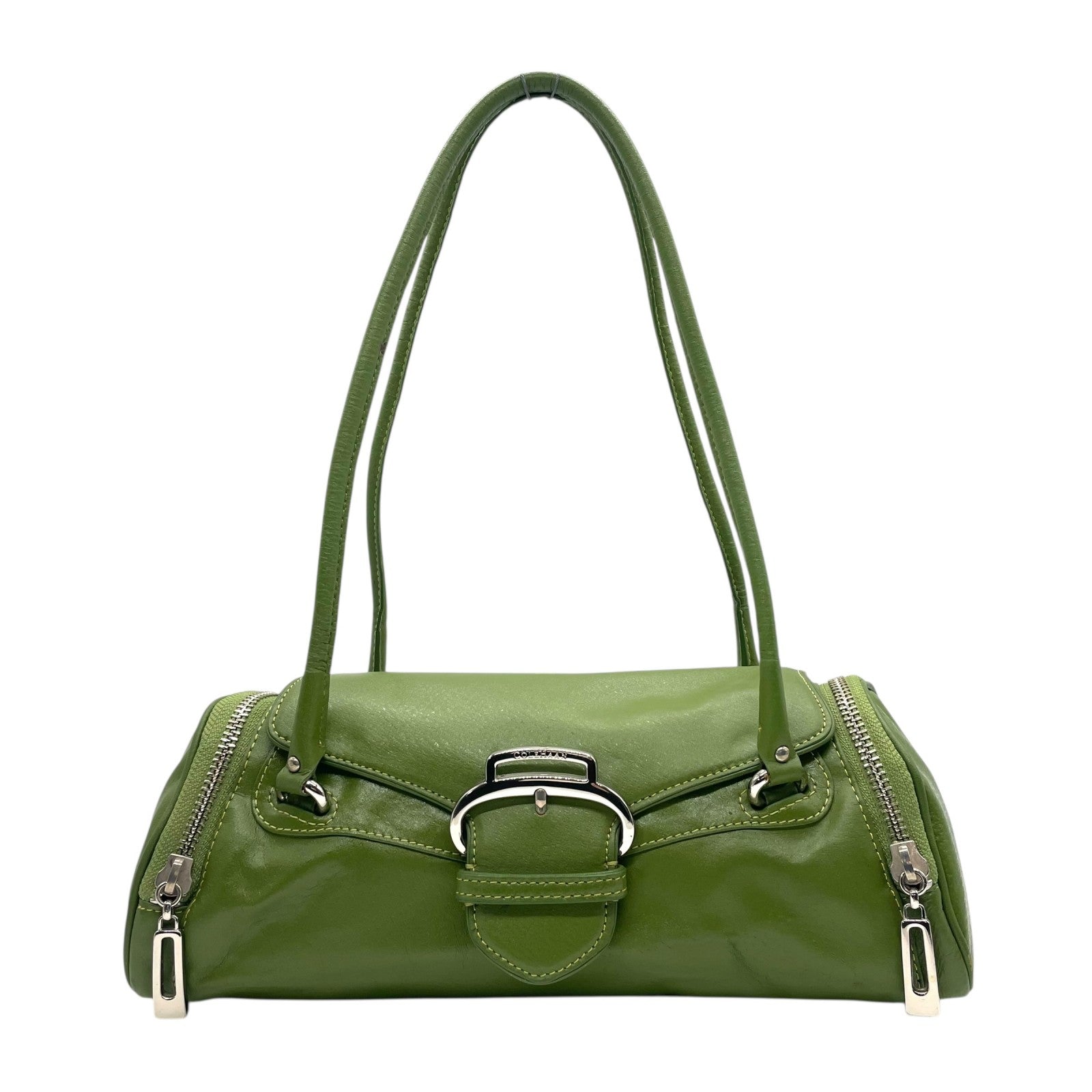 コールハーン COLE HAAN ハンドバッグ ロングハンドル レザー グリーン 緑 若草色 シルバー金具 バゲット型 スリムデザイン T3
