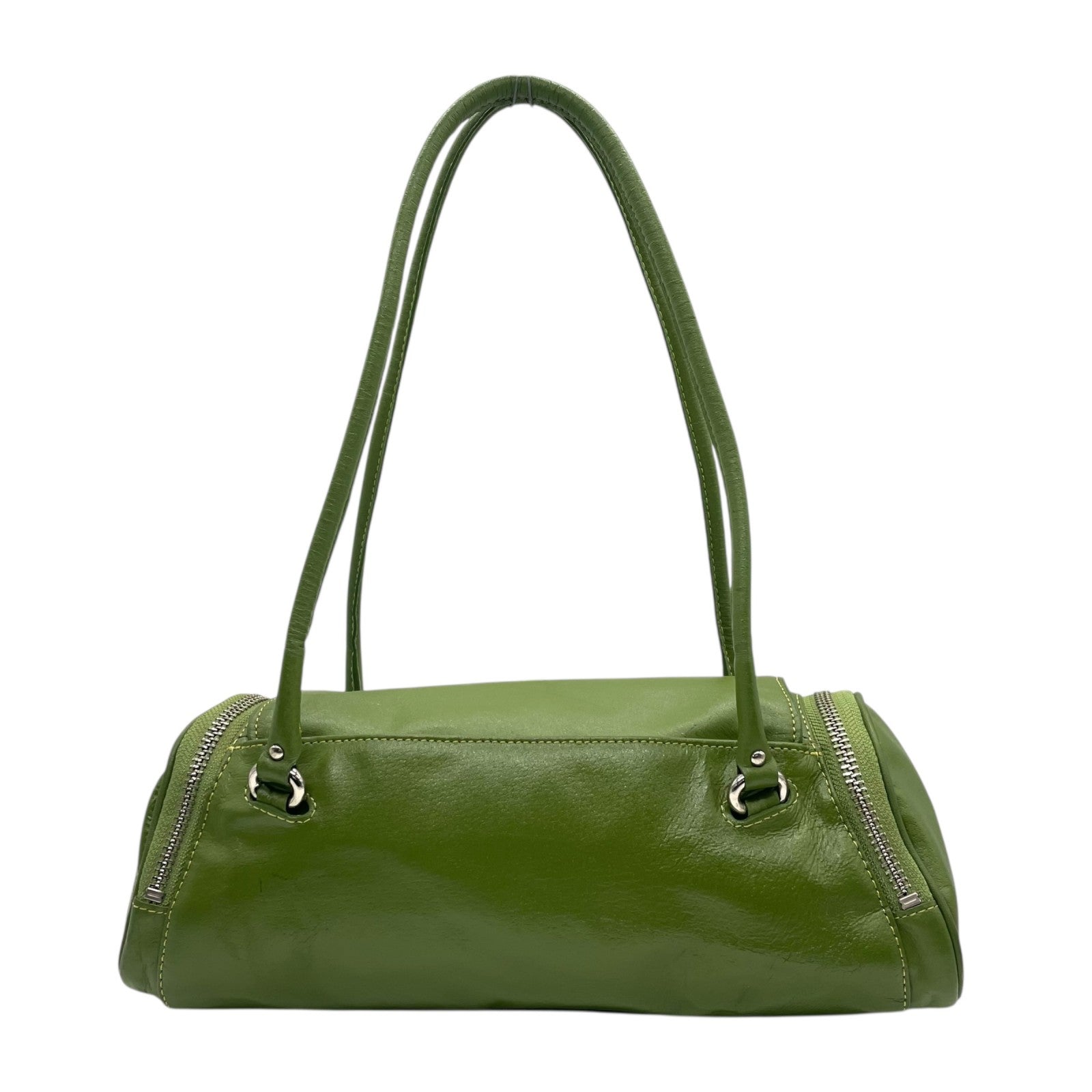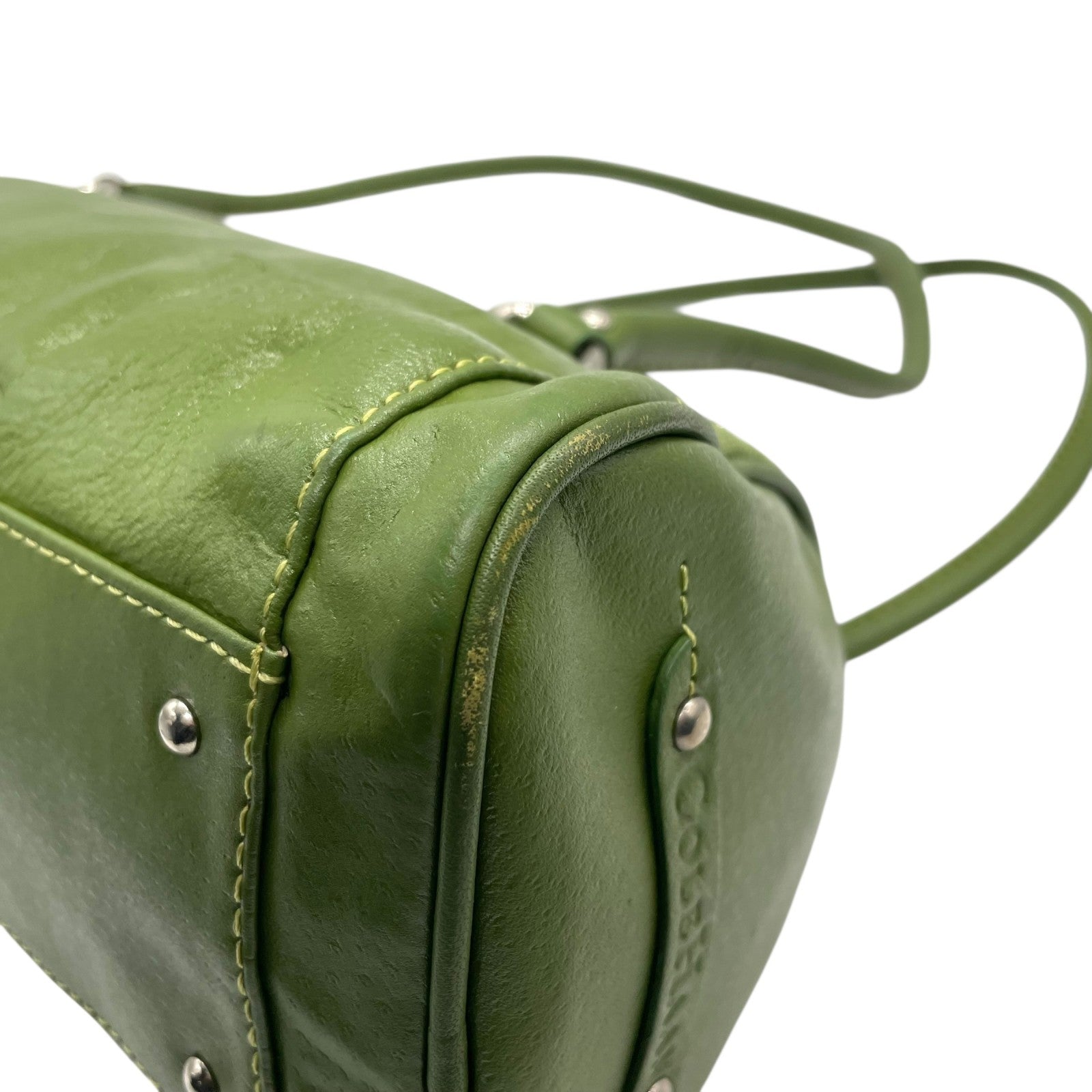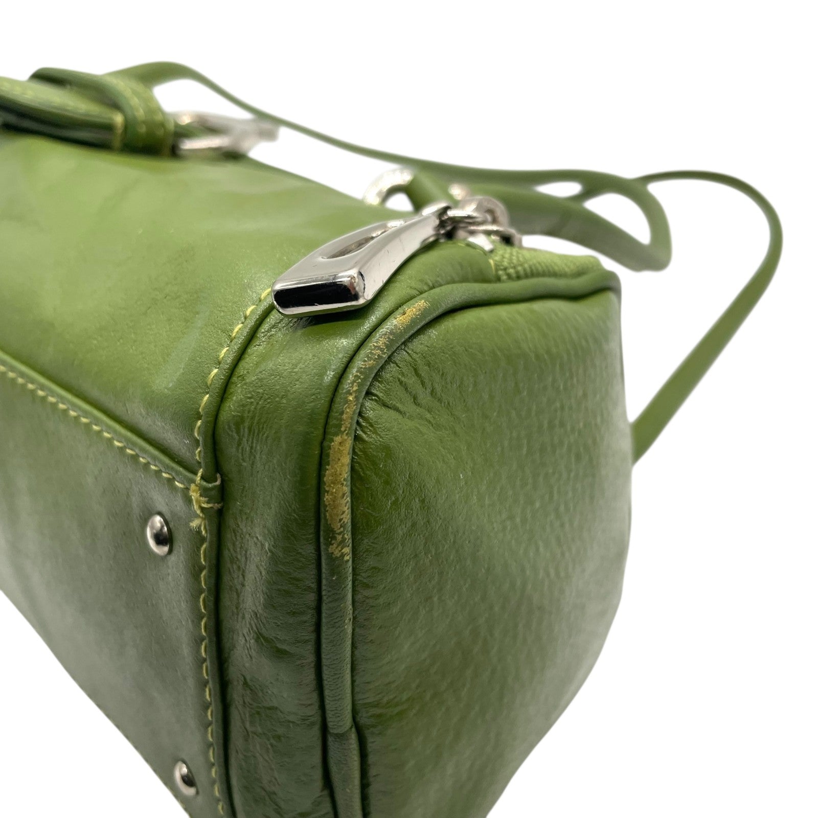 コールハーン COLE HAAN ハンドバッグ ロングハンドル レザー グリーン 緑 若草色 シルバー金具 バゲット型 スリムデザイン T3