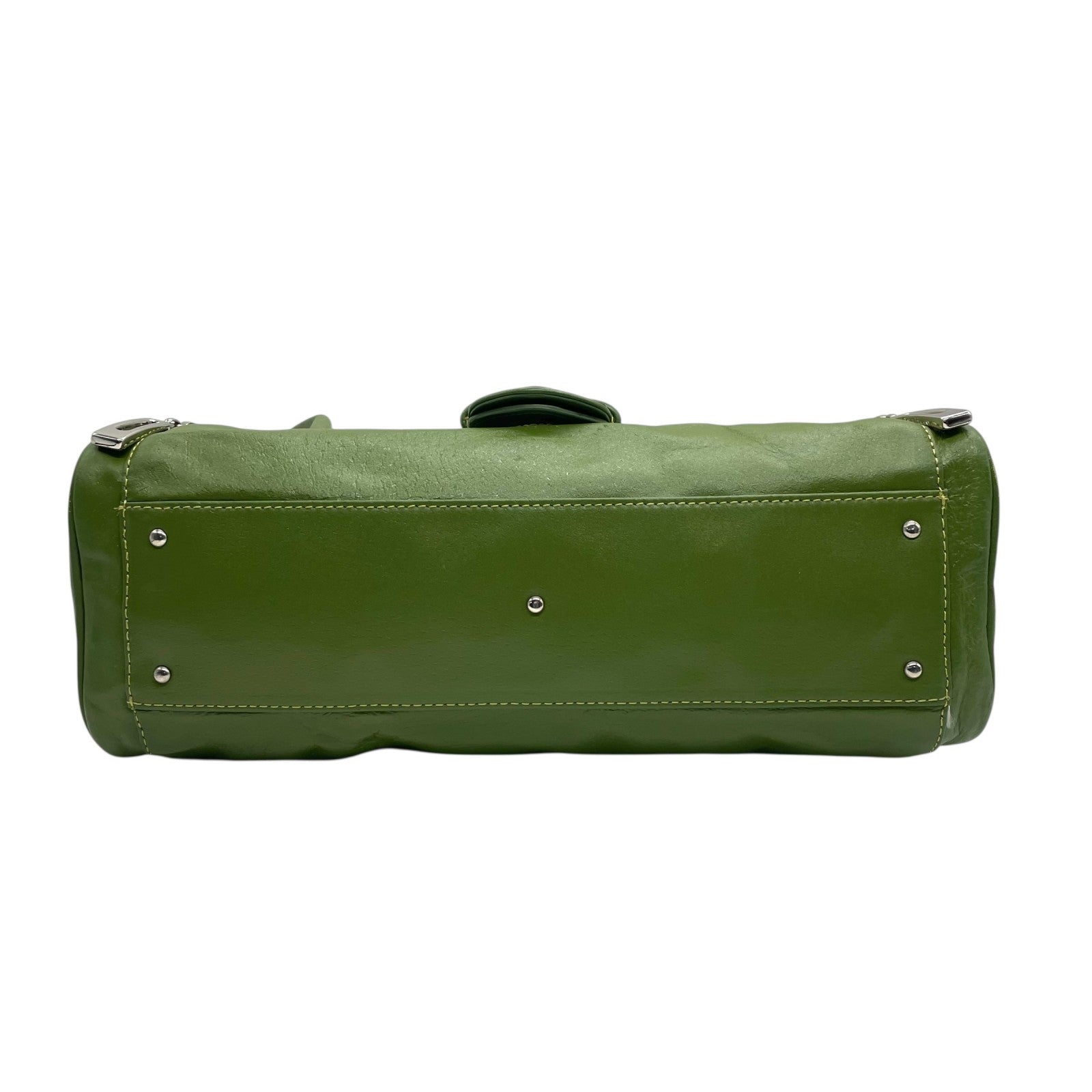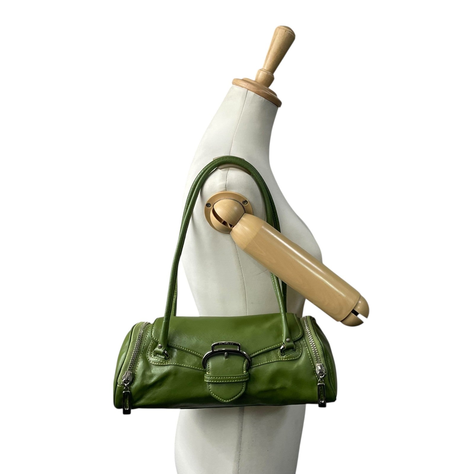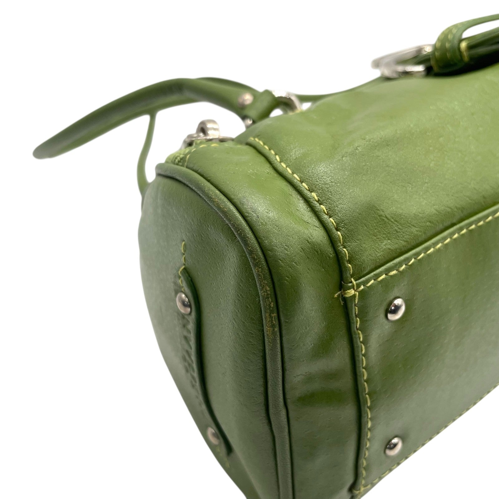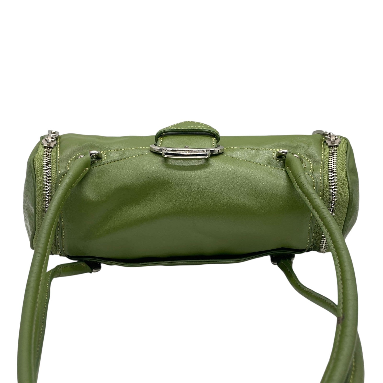 コールハーン COLE HAAN ハンドバッグ ロングハンドル レザー グリーン 緑 若草色 シルバー金具 バゲット型 スリムデザイン T3