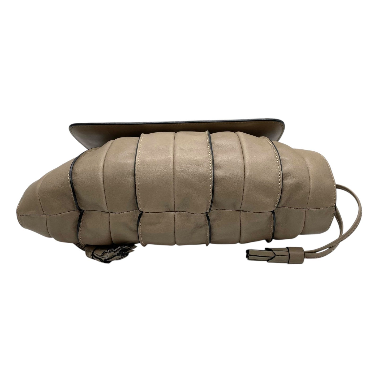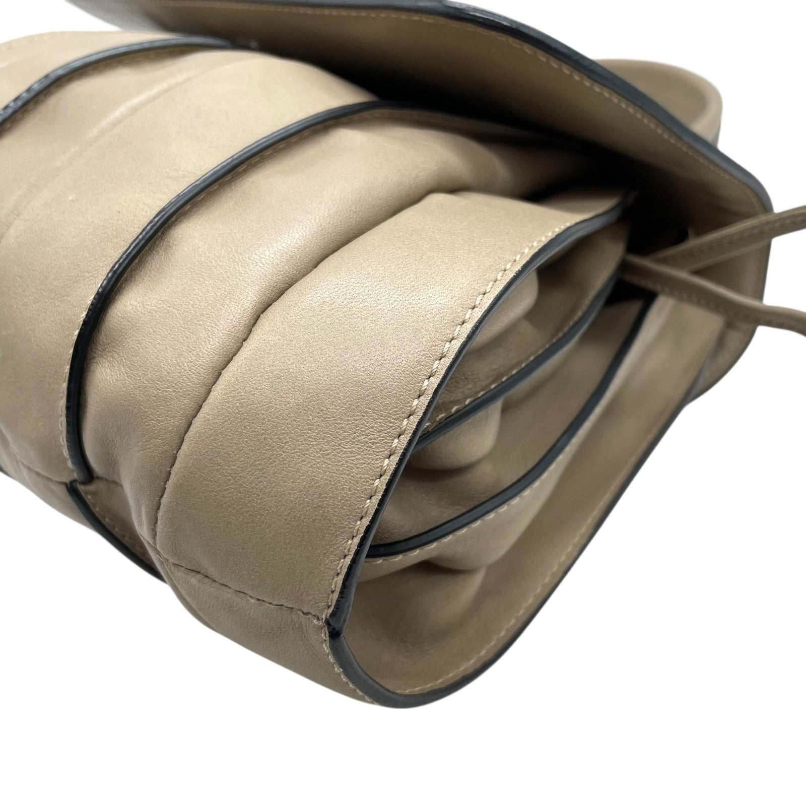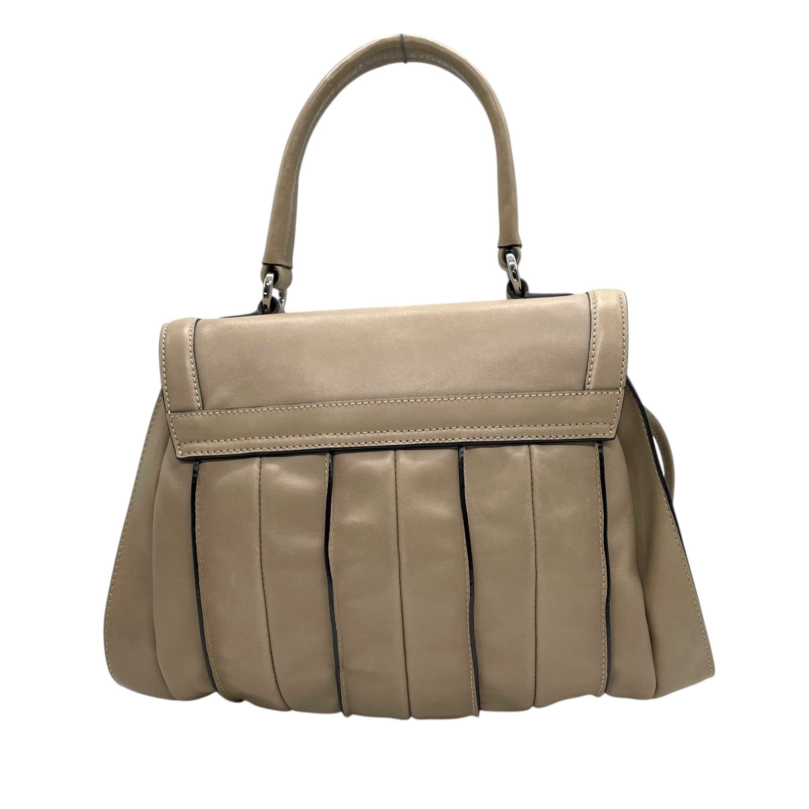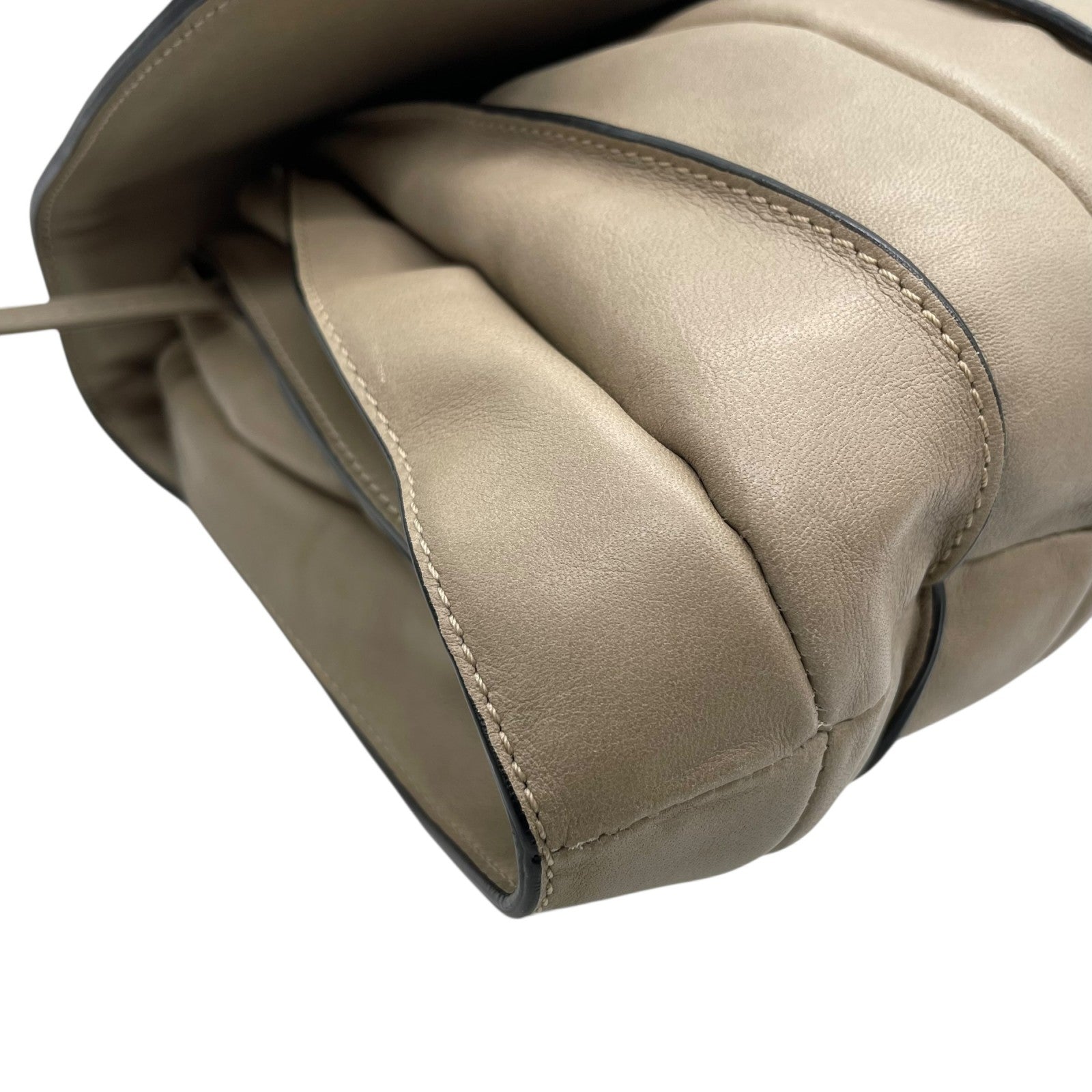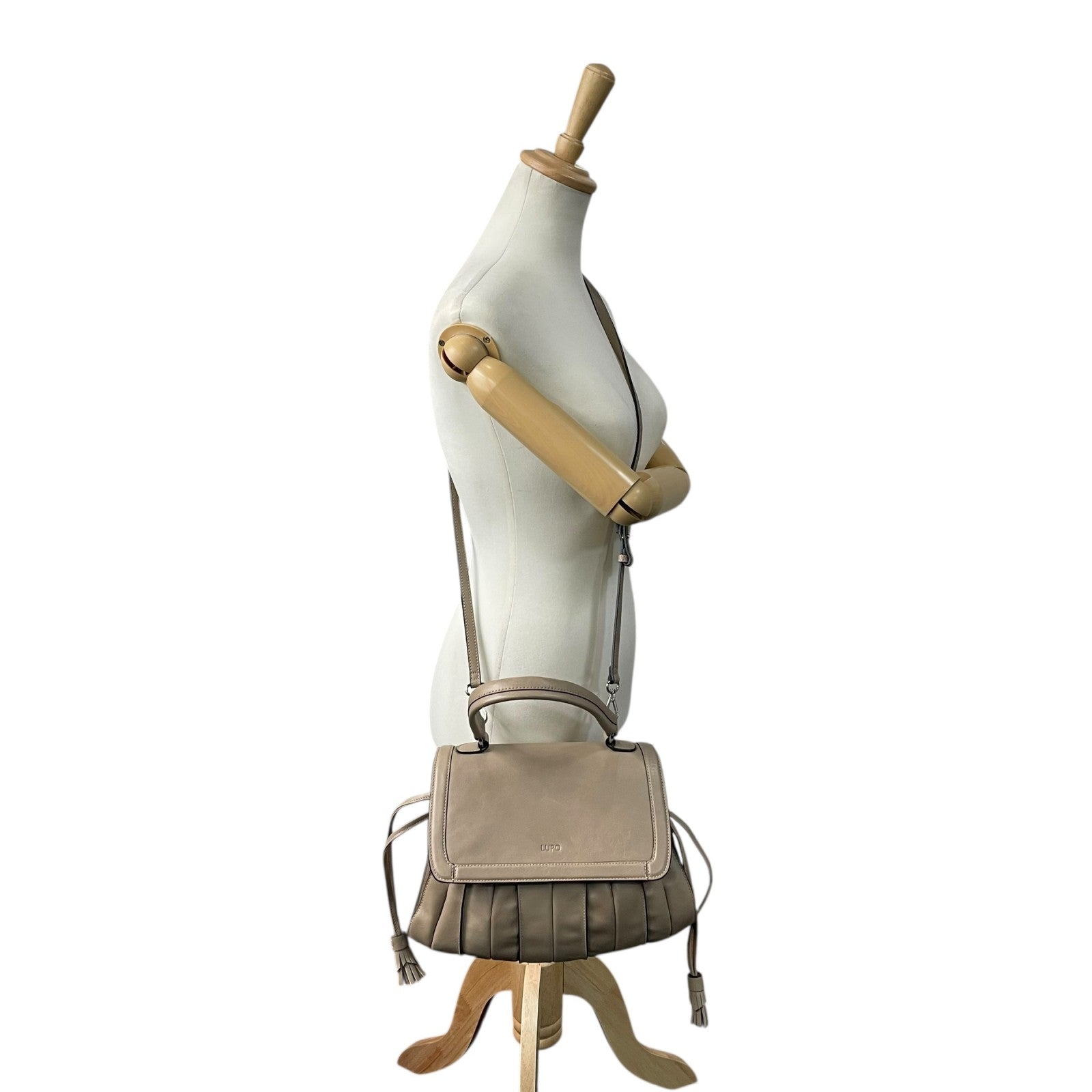 美品 ルポ LUPO ハンドバッグ グレージュ ベージュ レザー ショルダーストラップ付 肩掛け 2WAY フラップデザイン 上品カラー C6