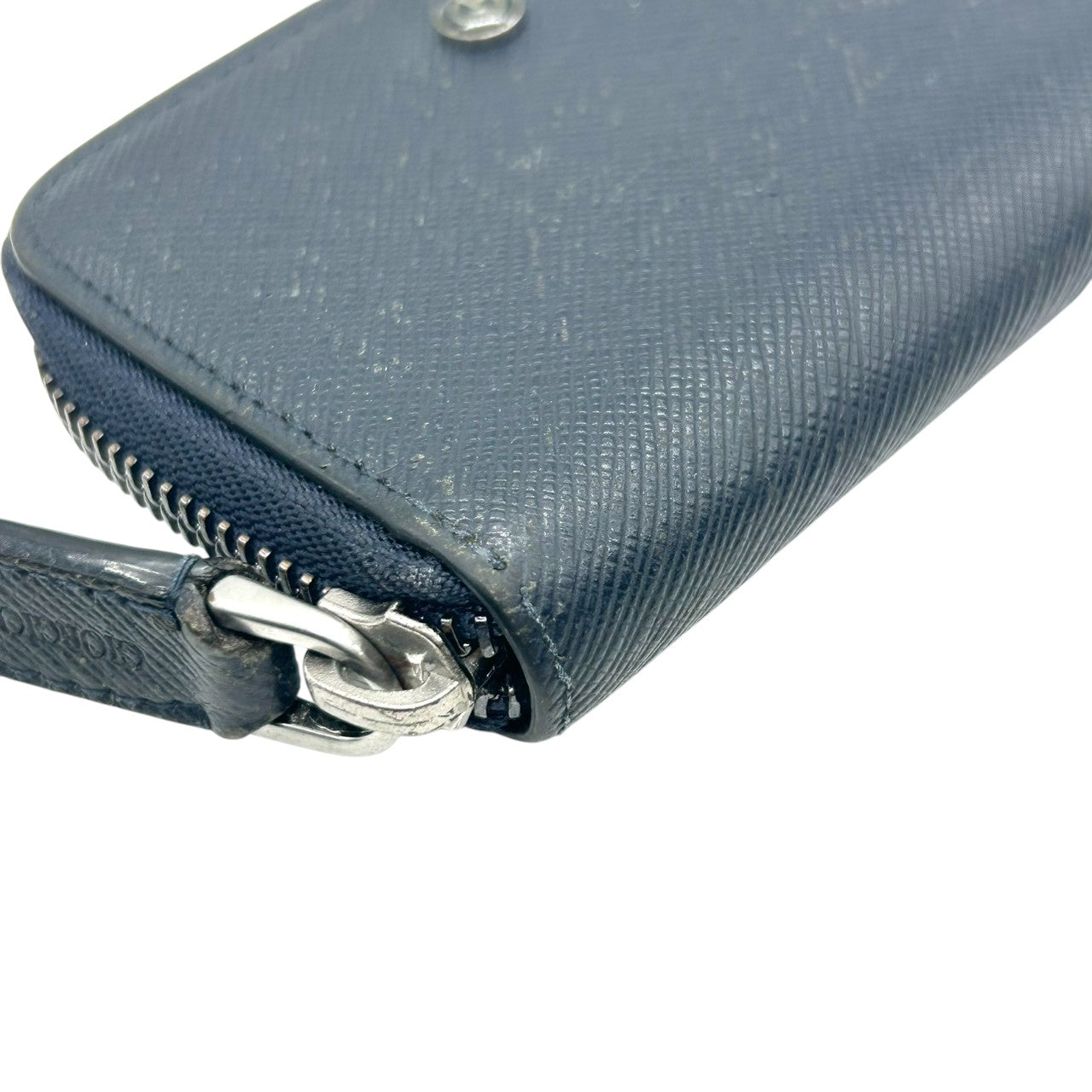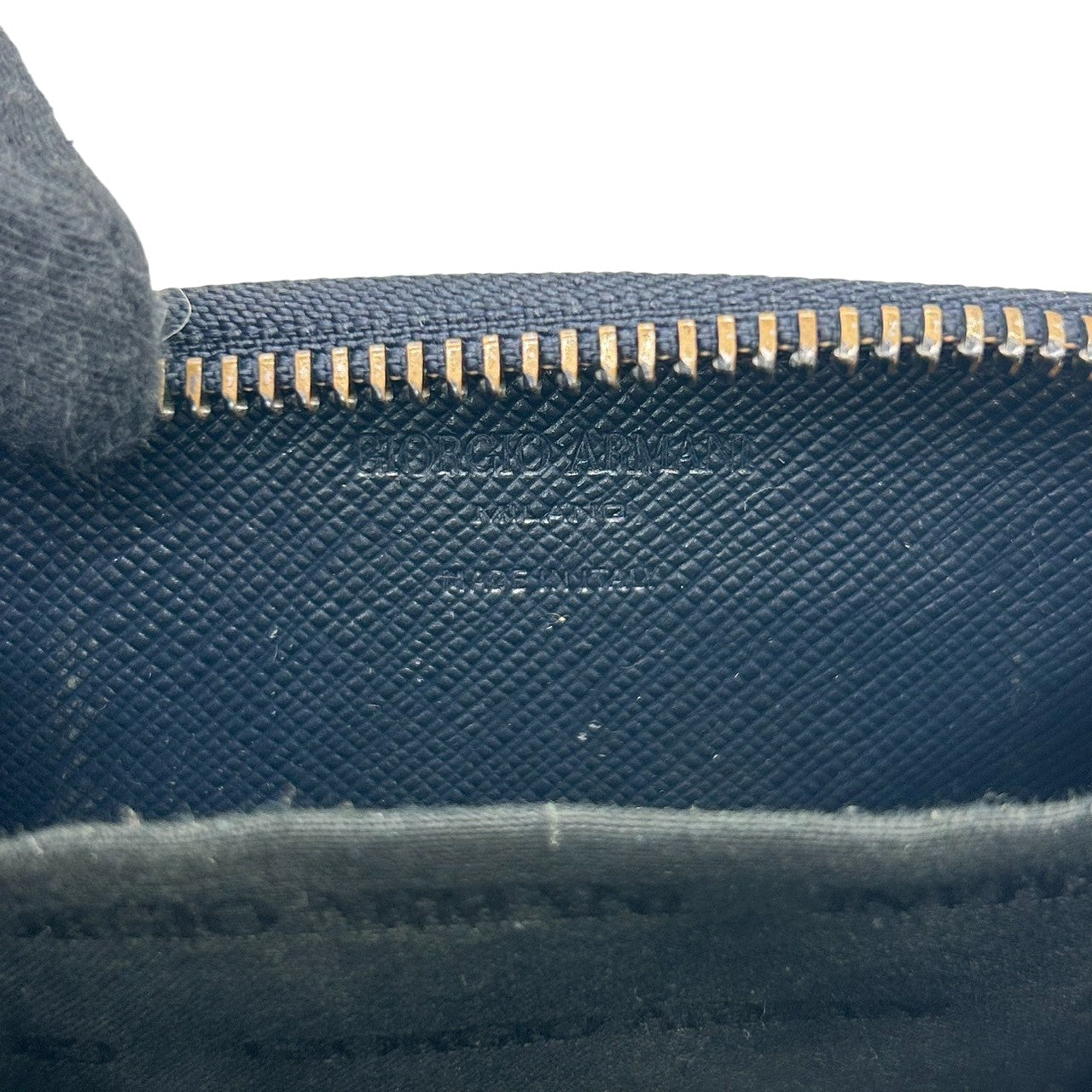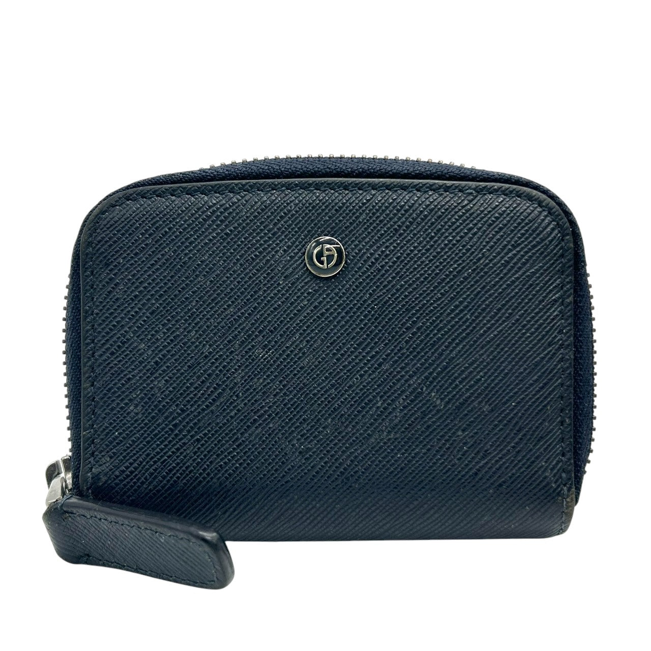 ジョルジオアルマーニ コインケース 小銭入れ L字ファスナー ミニ財布 サフィアーノレザー 本革 ネイビー 紺 GAロゴ メンズ レディース ユニセックス ビジネス フォーマル 上品 高級 イタリア製 GIORGIO ARMANI w2