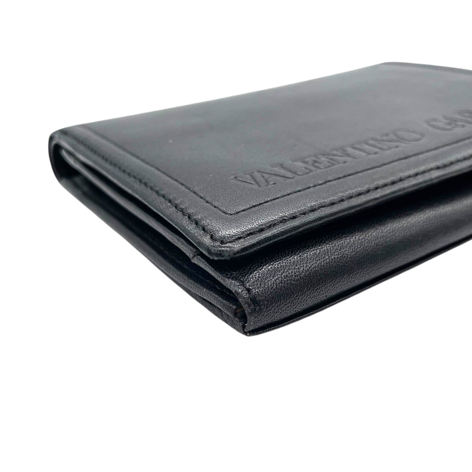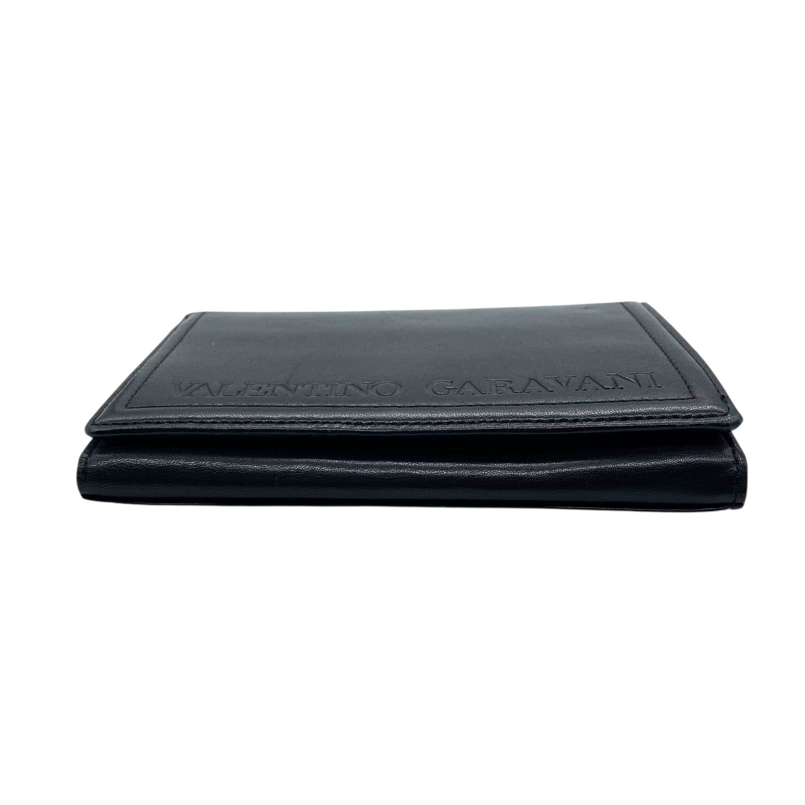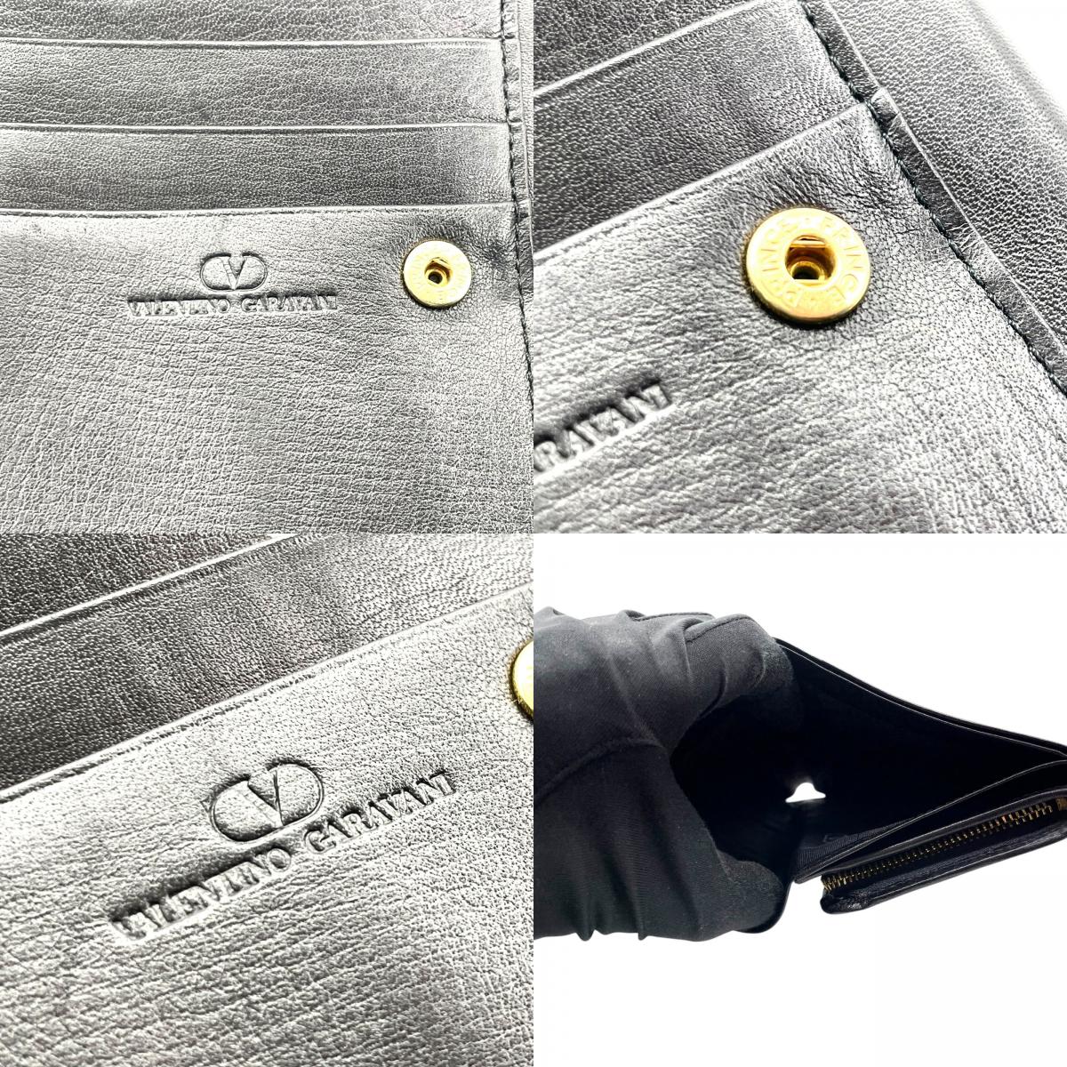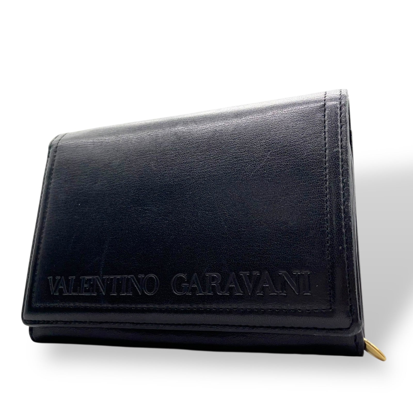 ヴァレンティノ ガラヴァーニ VALENTINO GARAVANI レザー 二つ折り財布 黒 ブラック ロゴ刻印 ゴールド金具 金金具 ヴィンテージ メンズ レディース W4