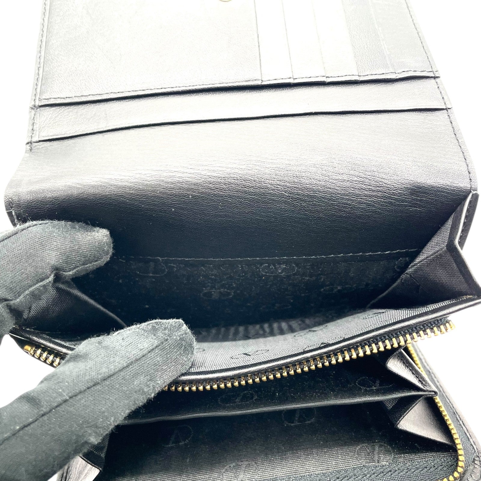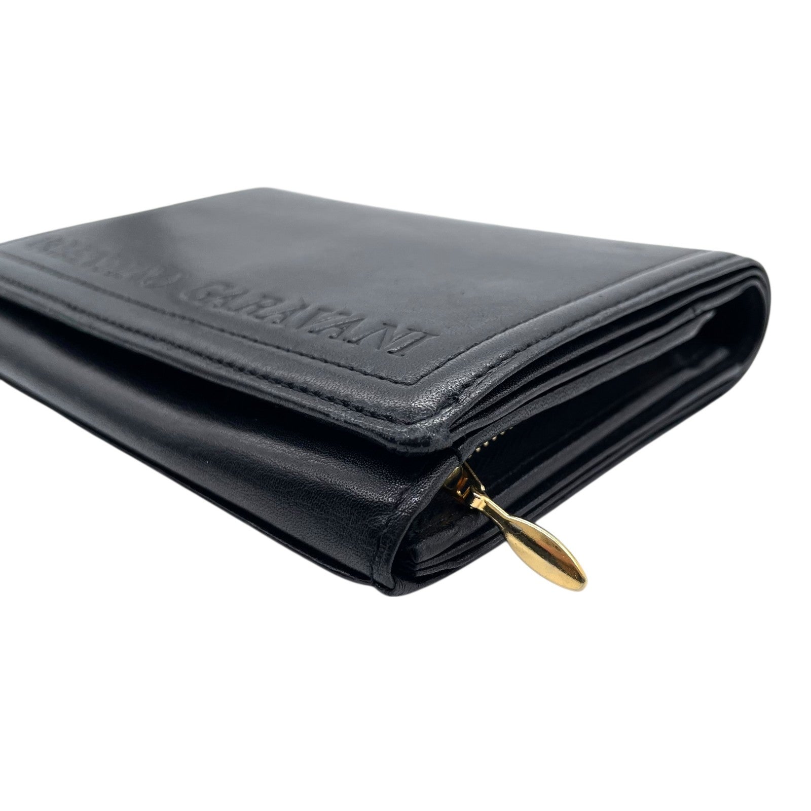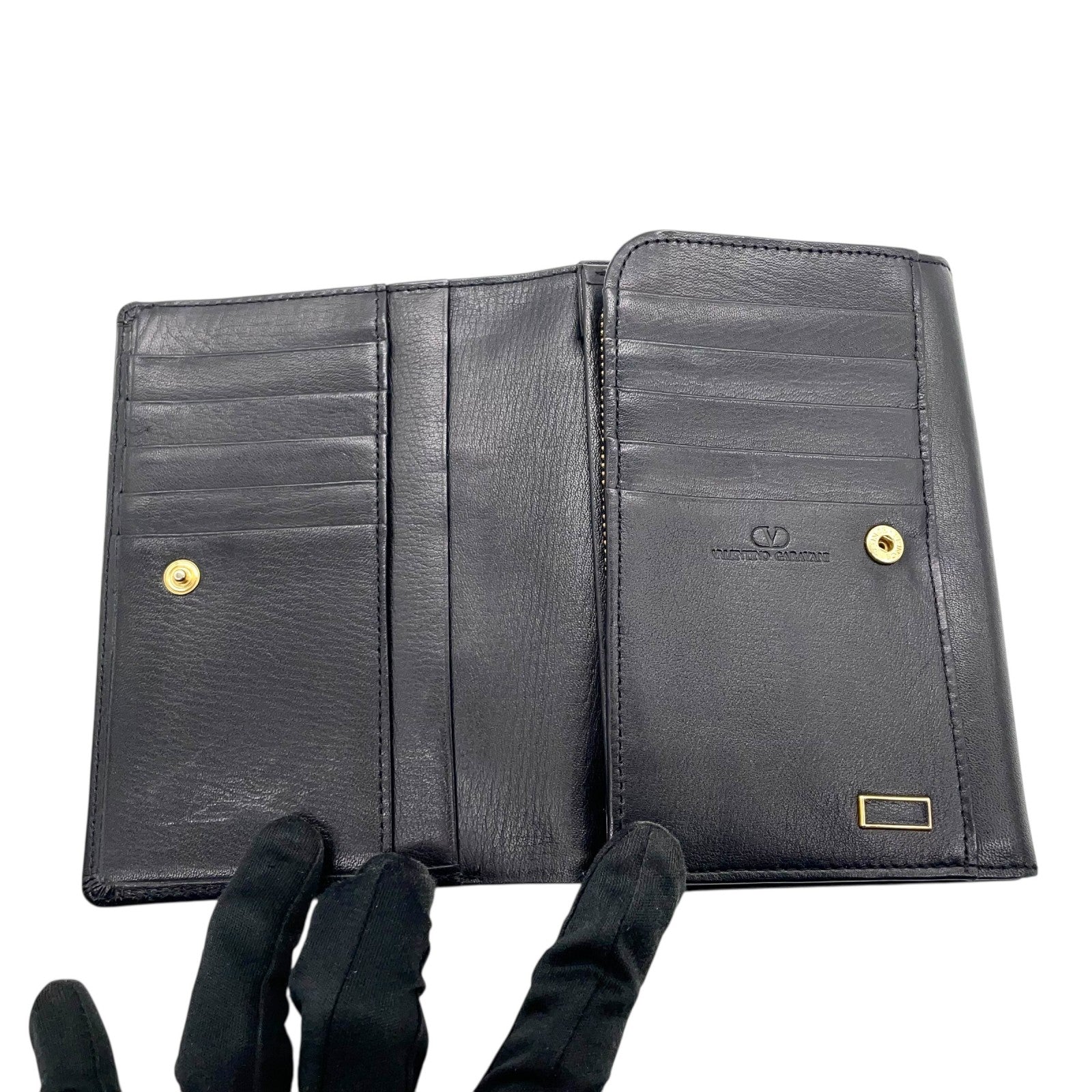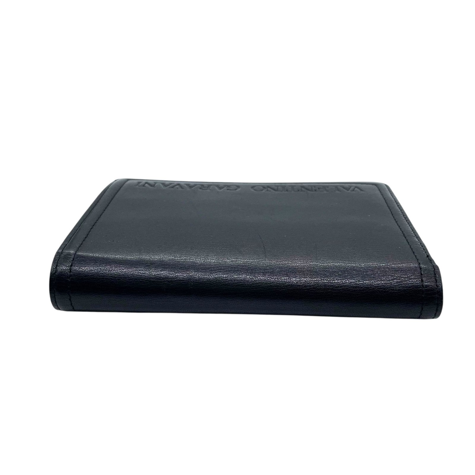 ヴァレンティノ ガラヴァーニ VALENTINO GARAVANI レザー 二つ折り財布 黒 ブラック ロゴ刻印 ゴールド金具 金金具 ヴィンテージ メンズ レディース W4