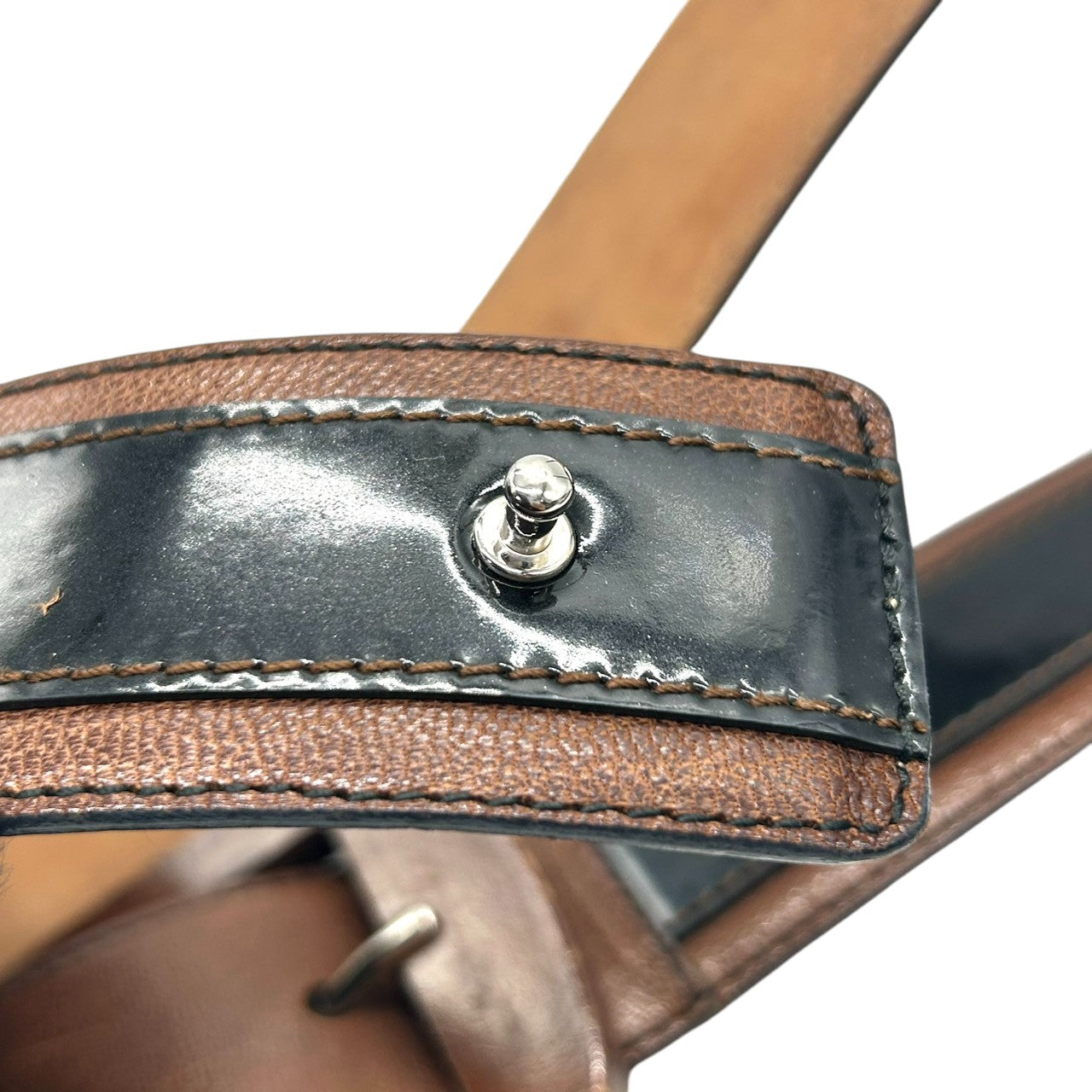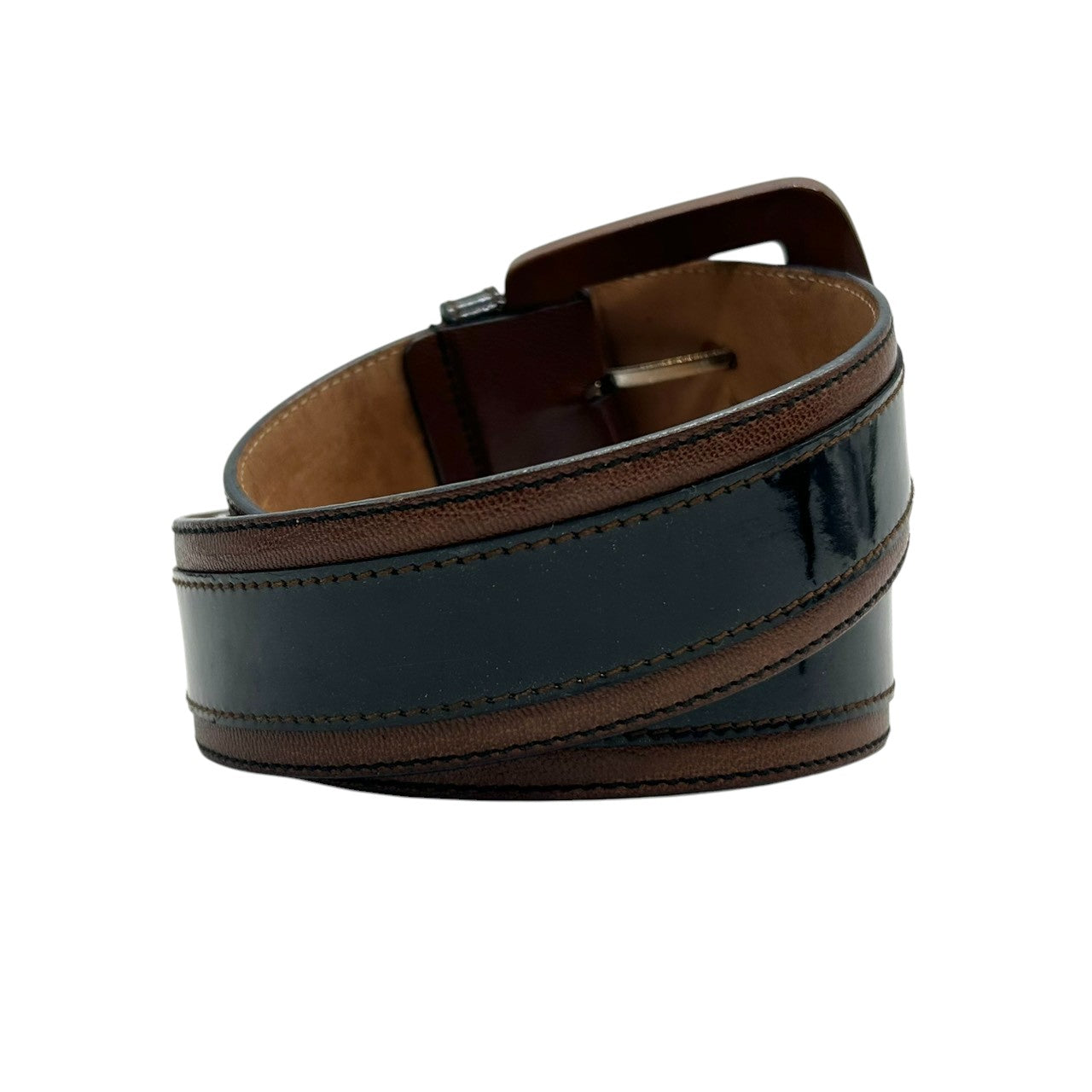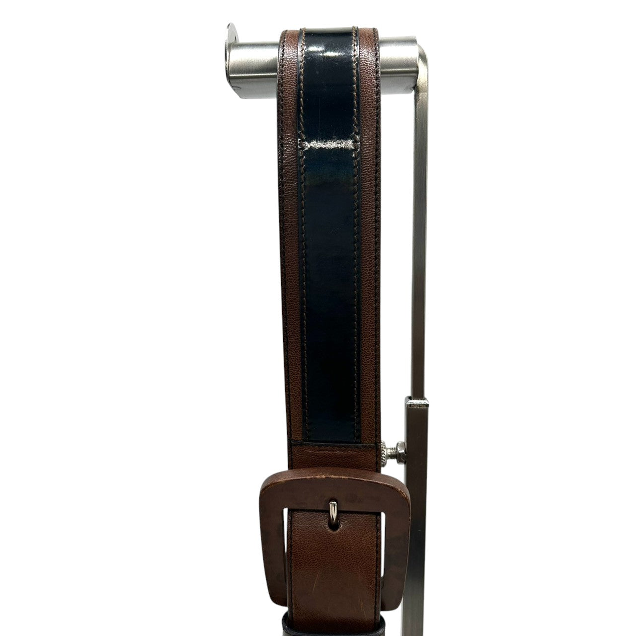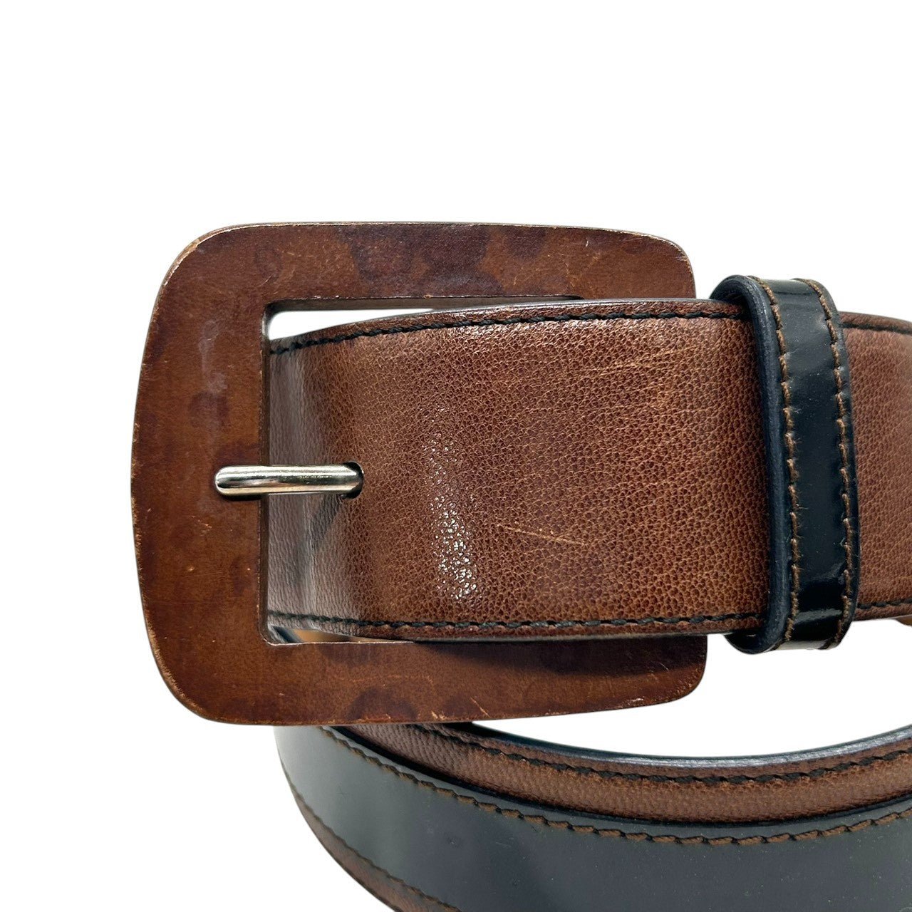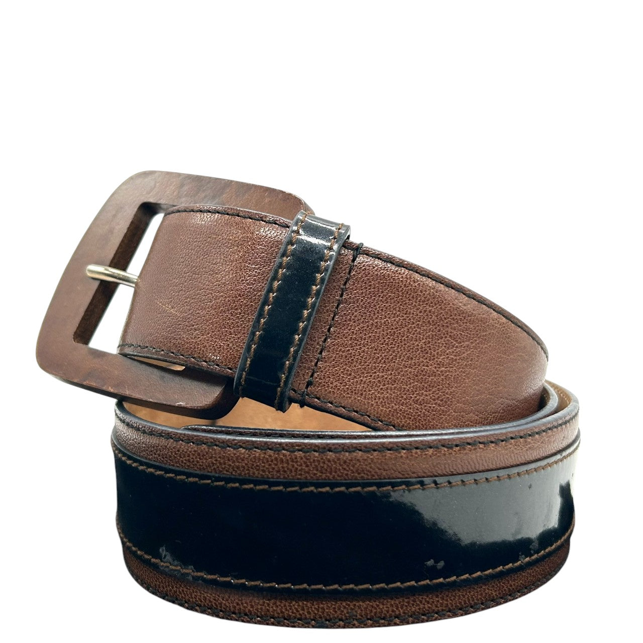 D&G ドルチェ&ガッバーナ ベルト ワイドベルト レザー 本革 エナメル バイカラー ブラウン ブラック ウッド調バックル メンズ レディース ユニセックス カジュアル モード ファッション小物 高級 イタリア製 px-1