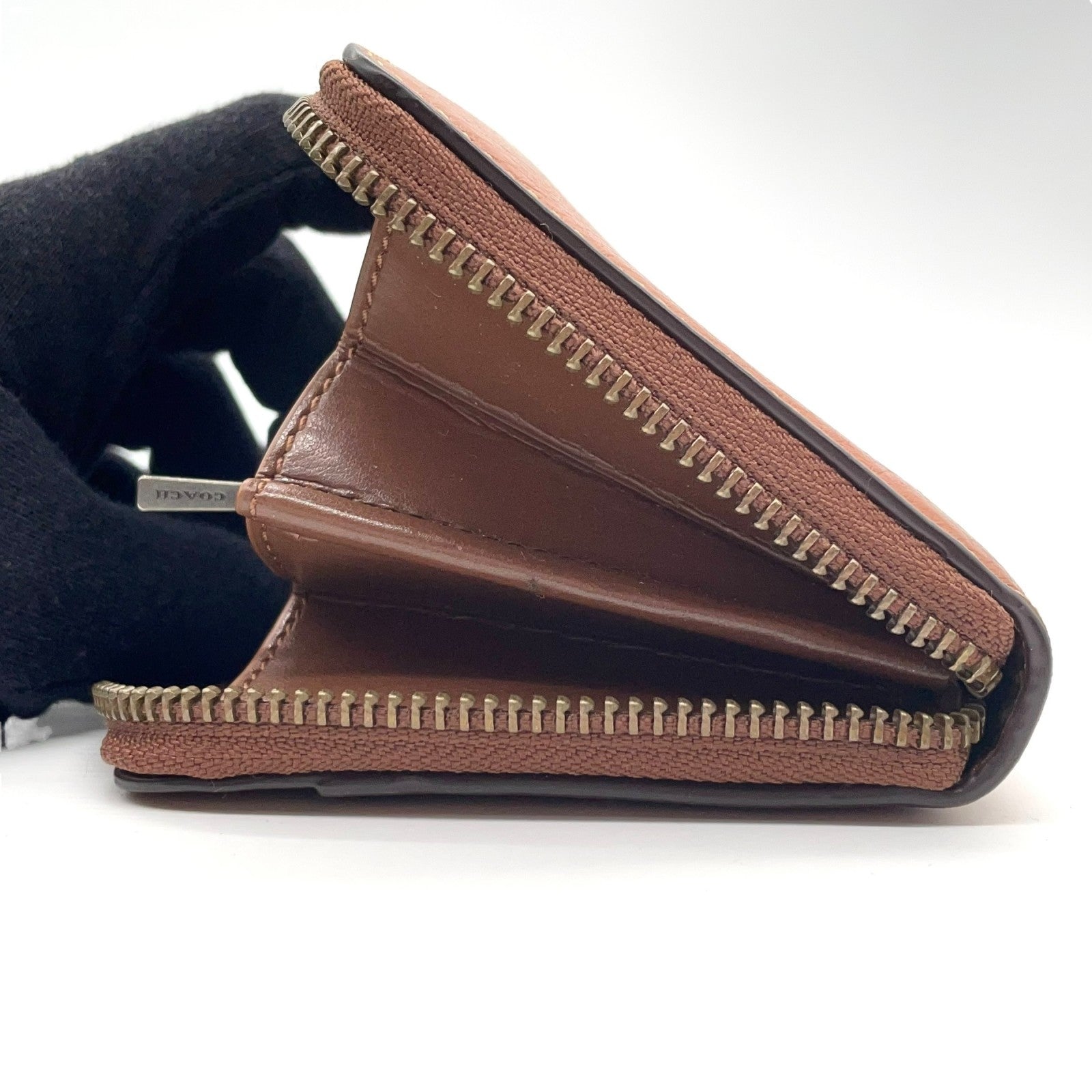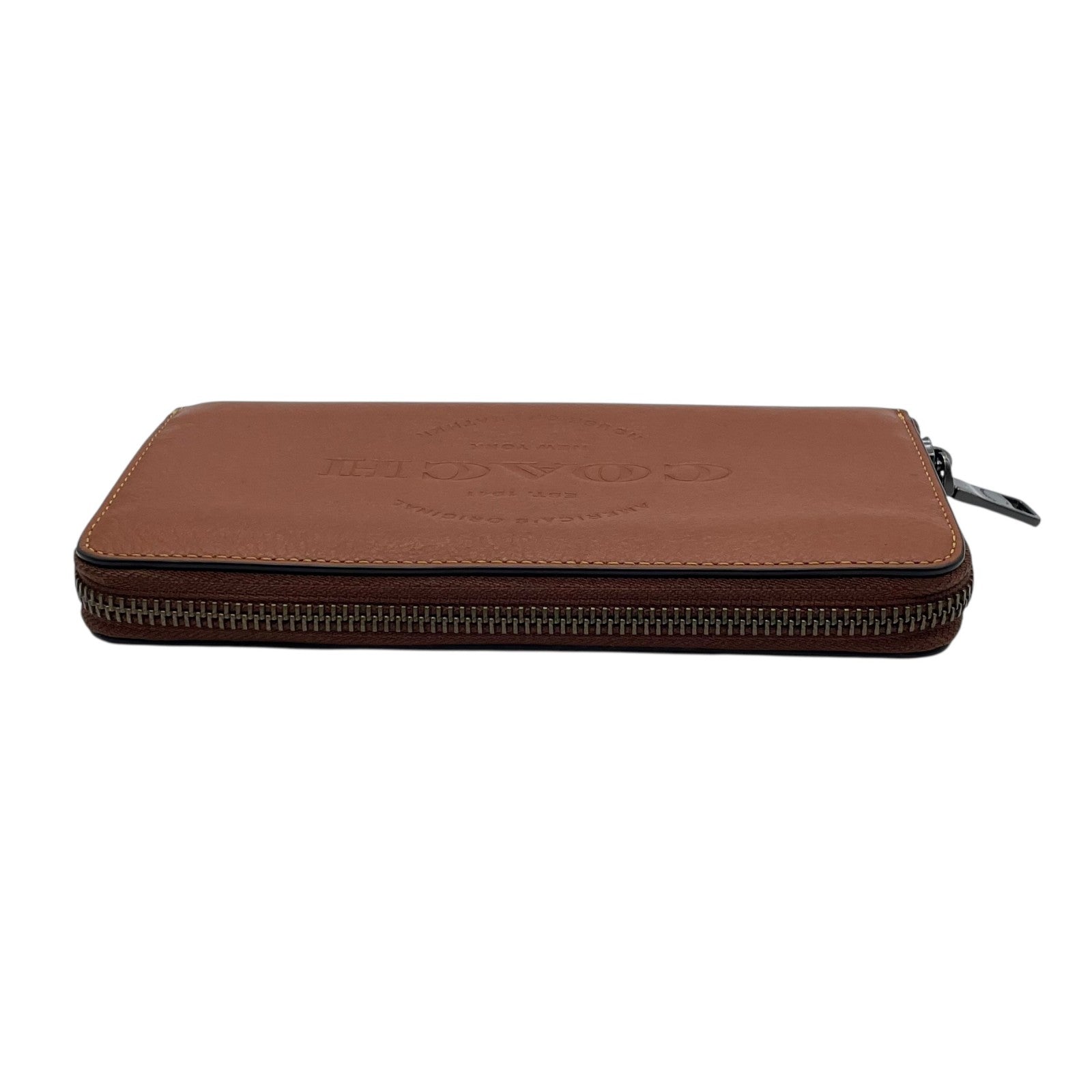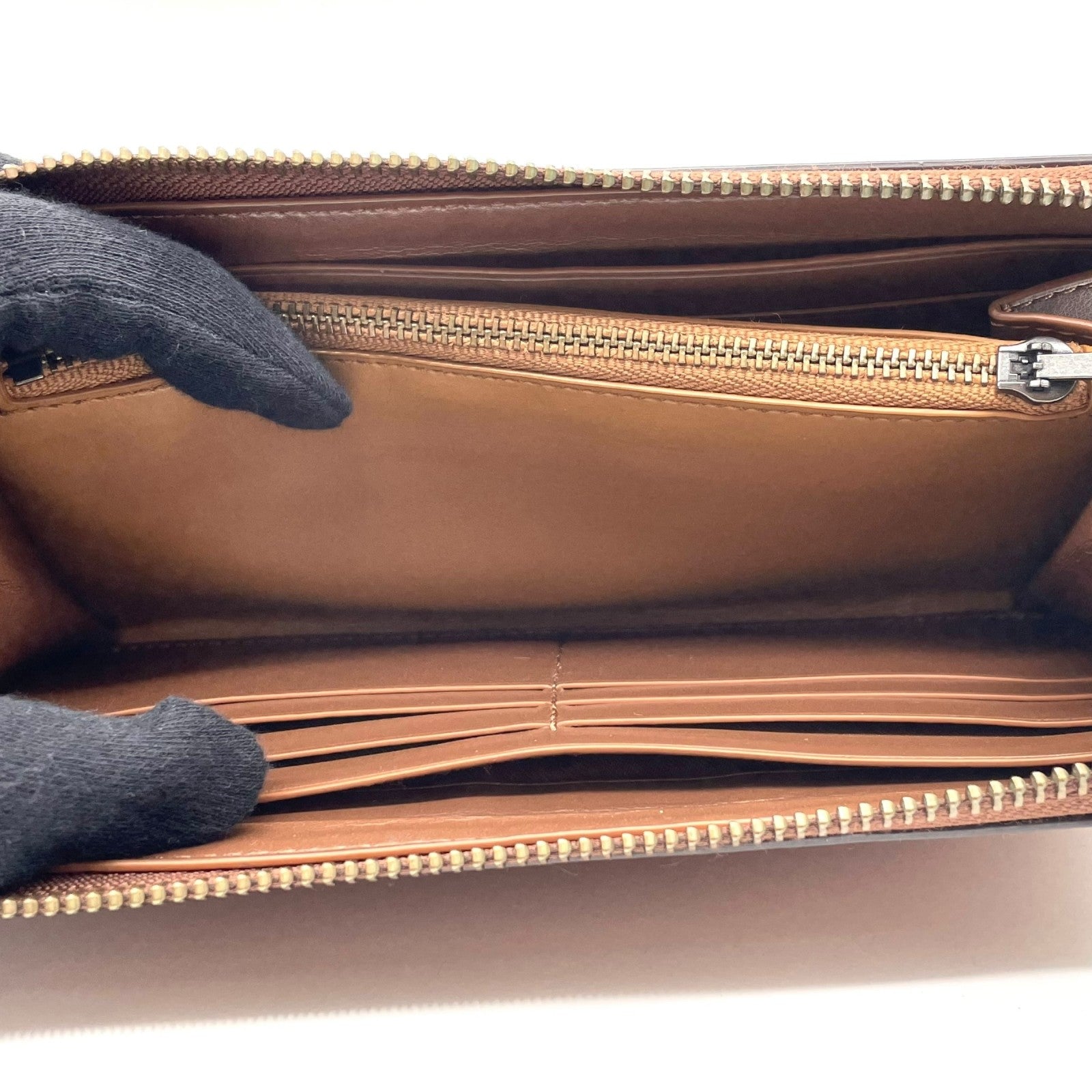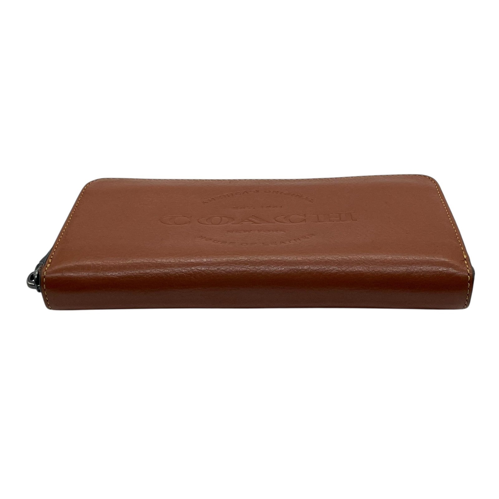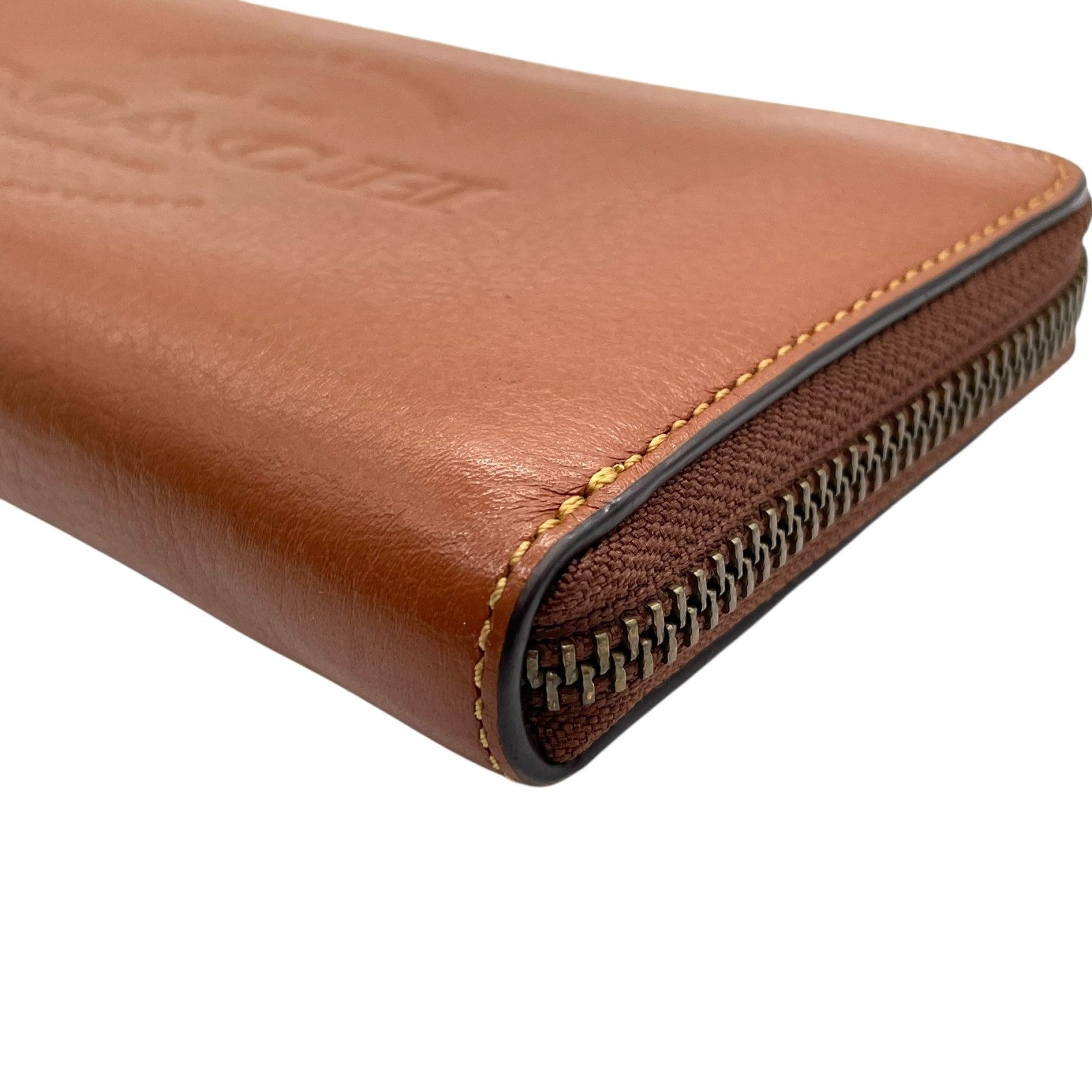 美品 コーチ COACH 長財布 ブラウン 茶色 レザー ラウンドジップ ラウンドファスナー ロゴ型押し シンプル ウォレット W4