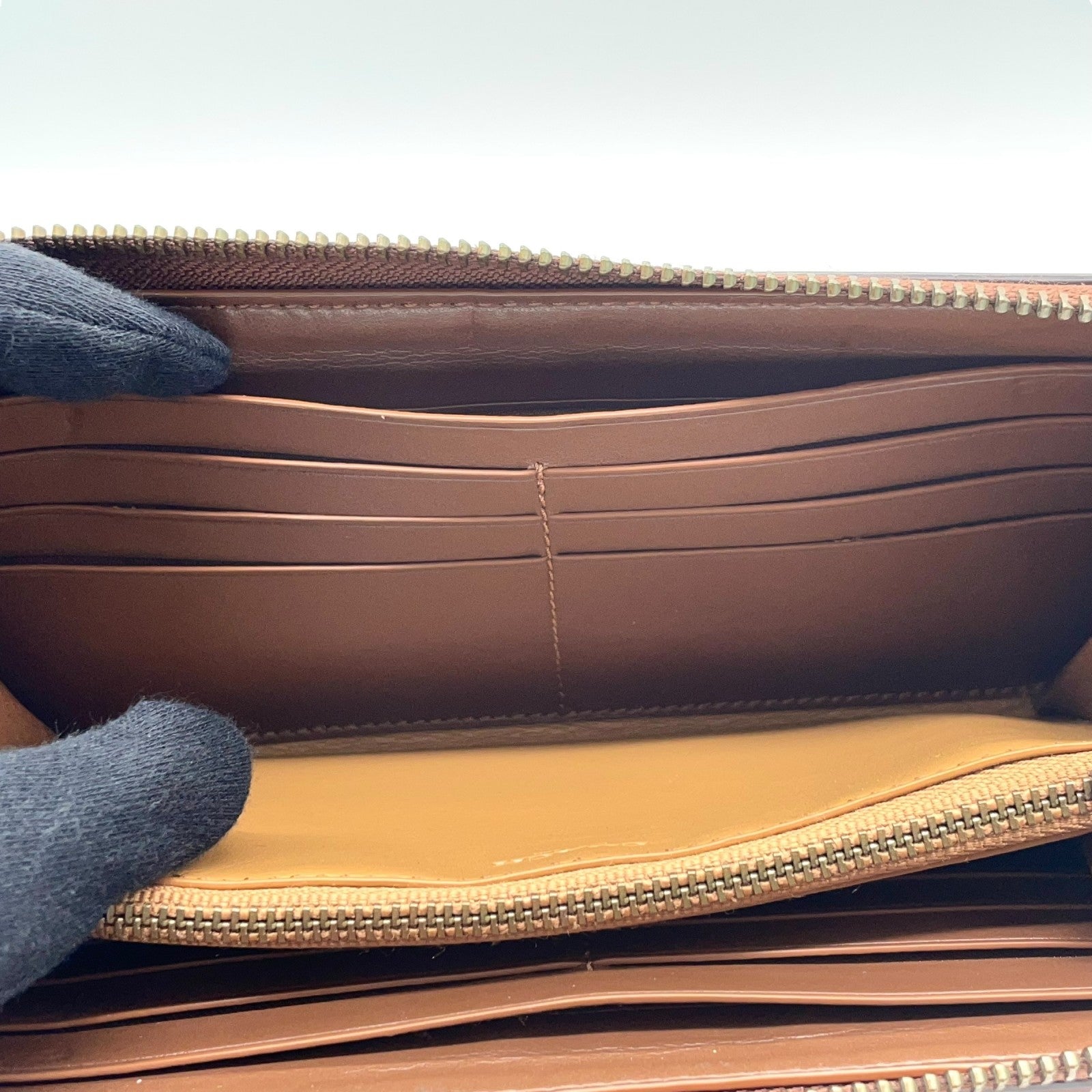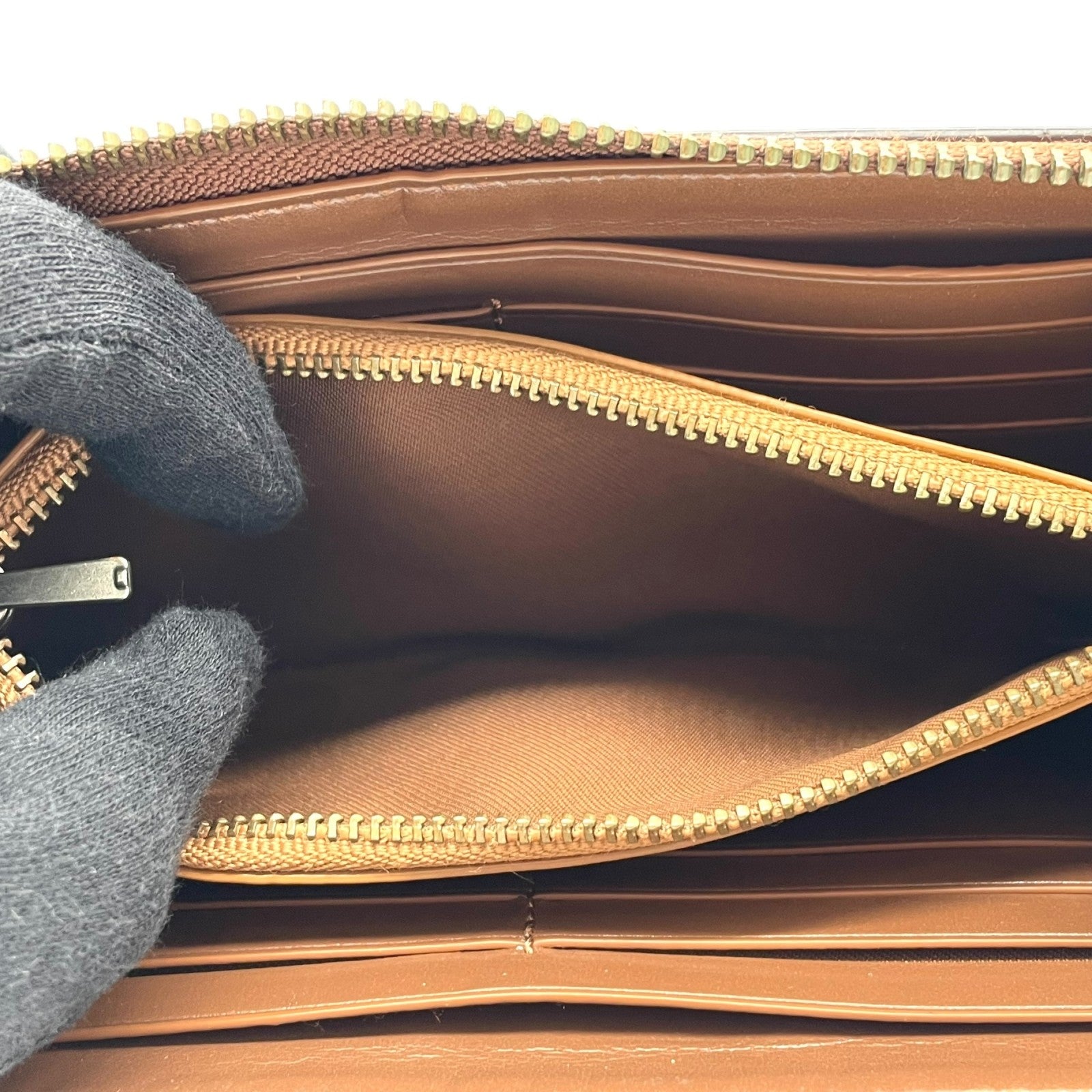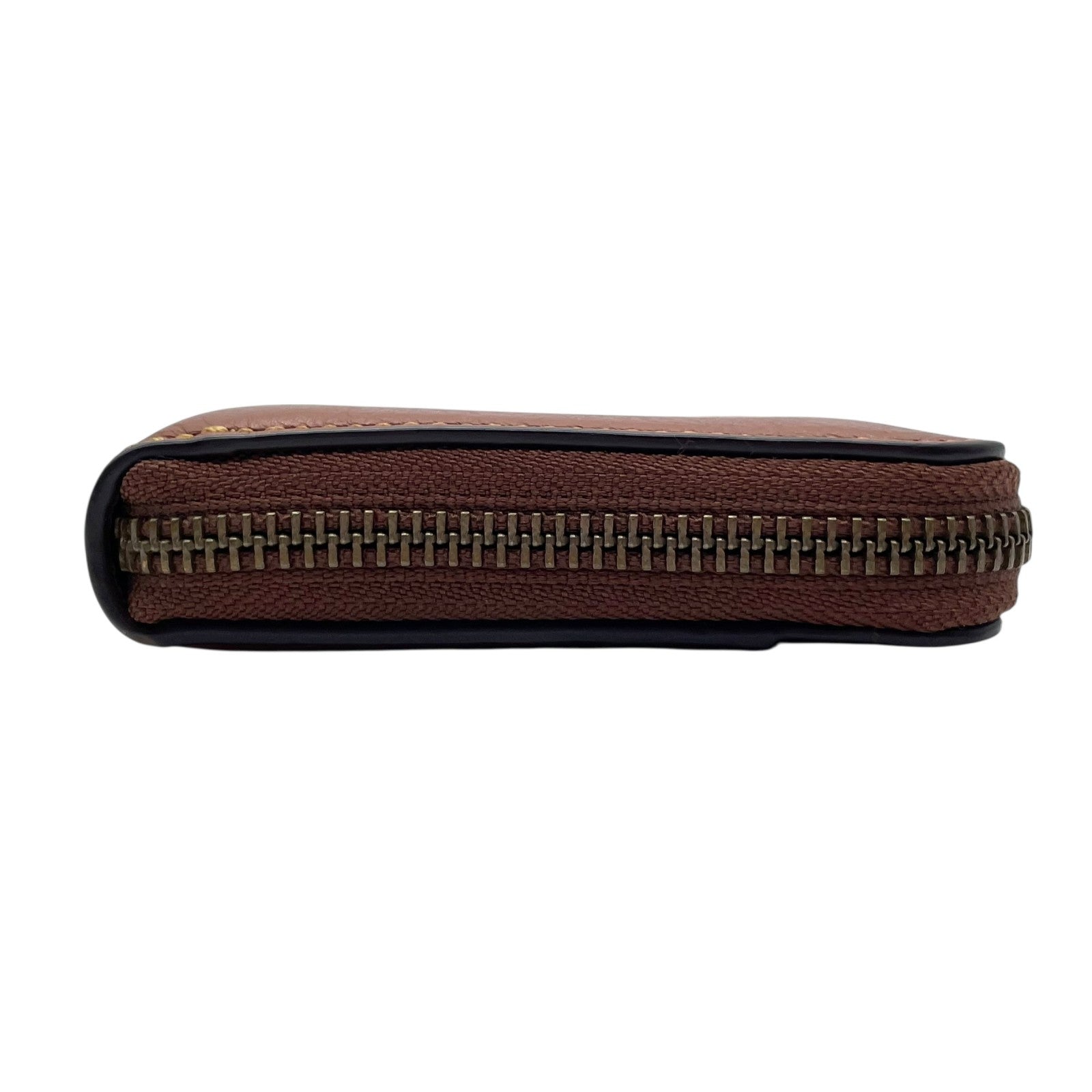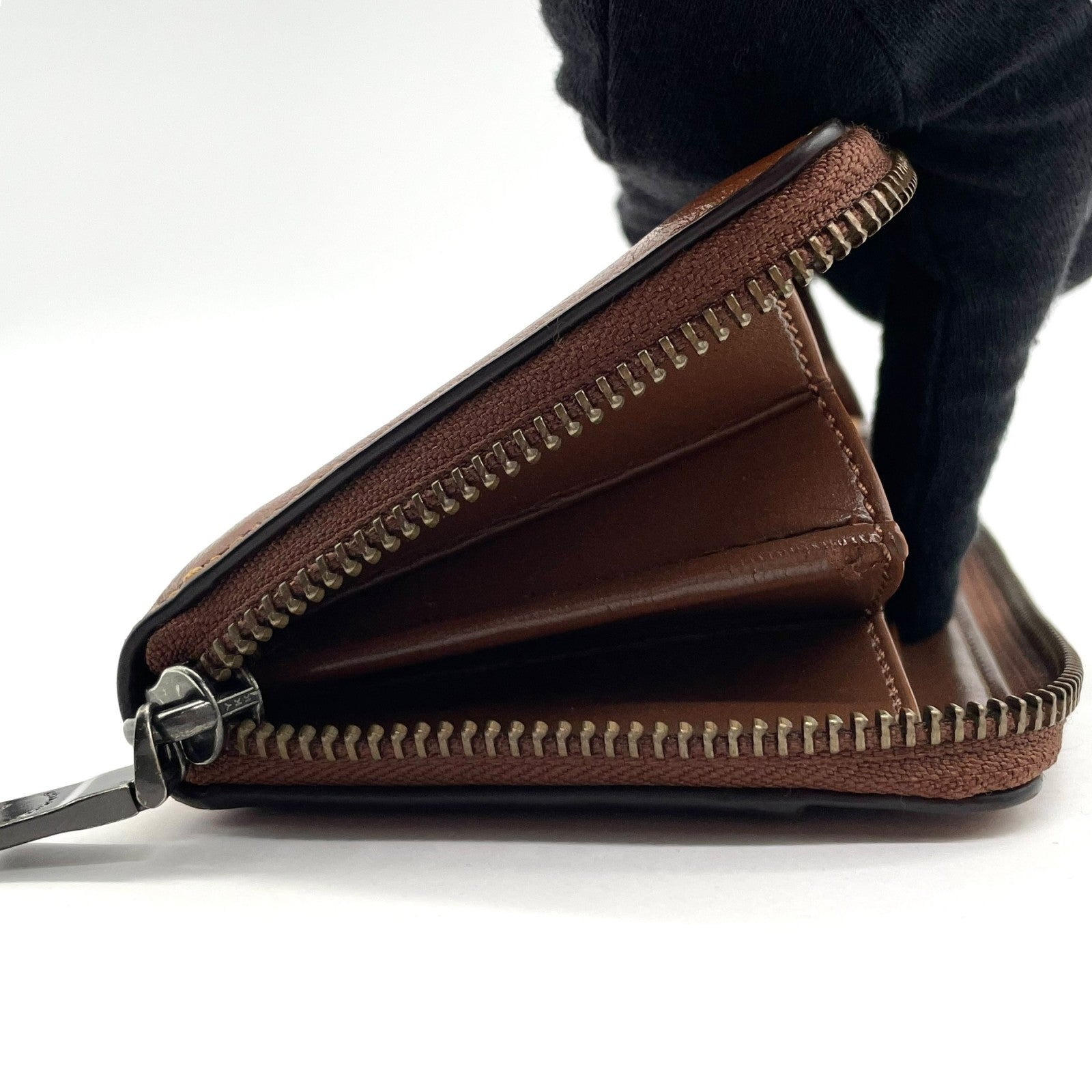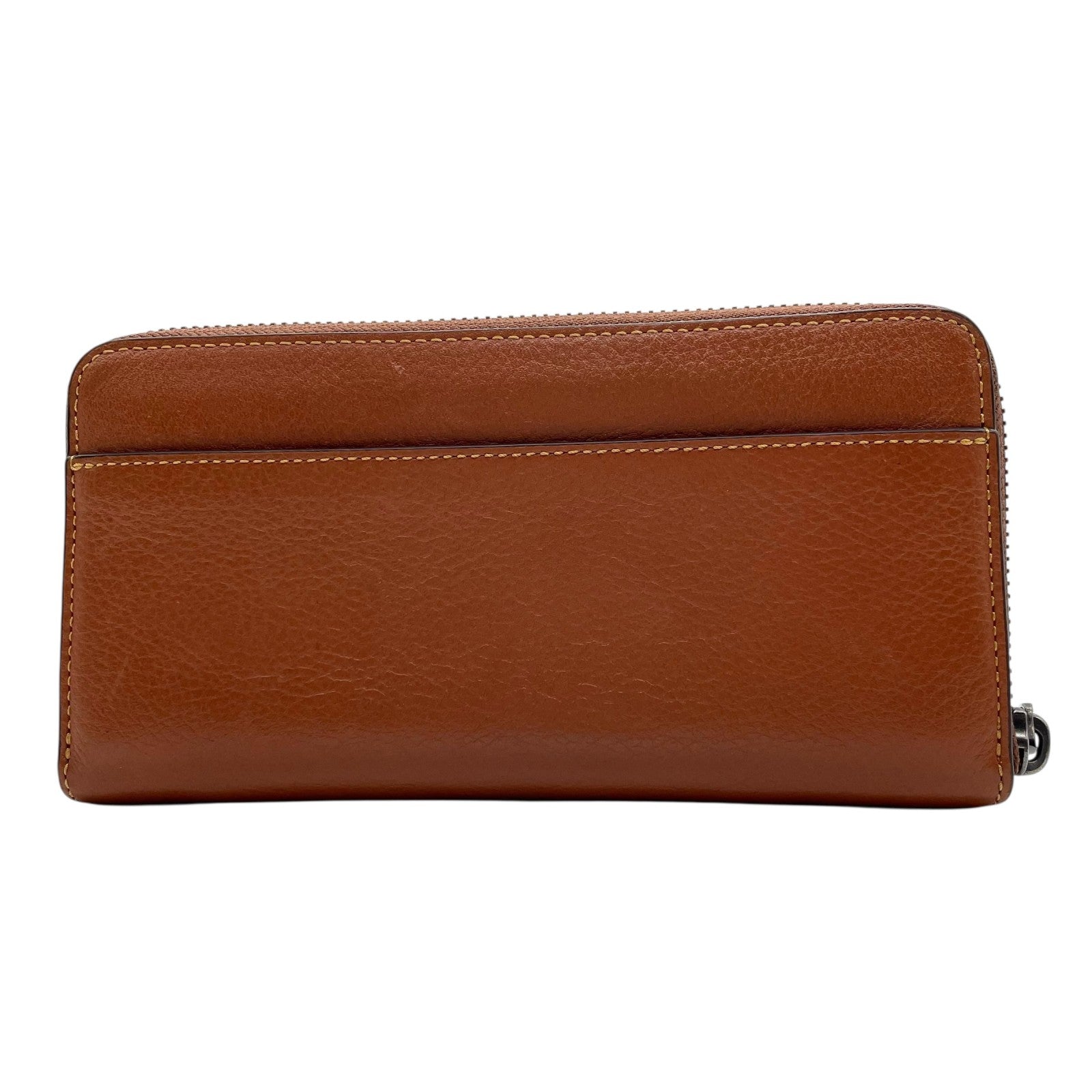 美品 コーチ COACH 長財布 ブラウン 茶色 レザー ラウンドジップ ラウンドファスナー ロゴ型押し シンプル ウォレット W4