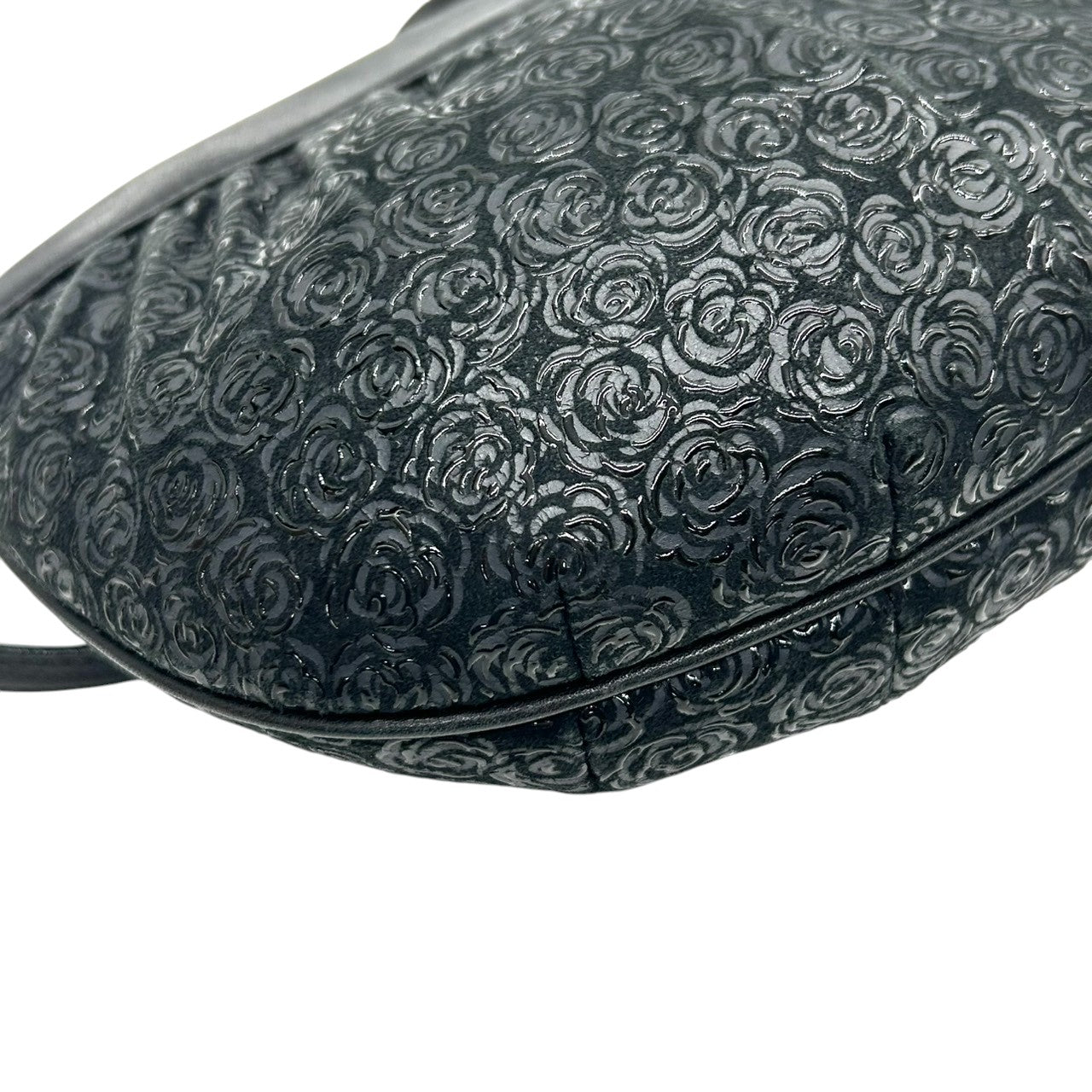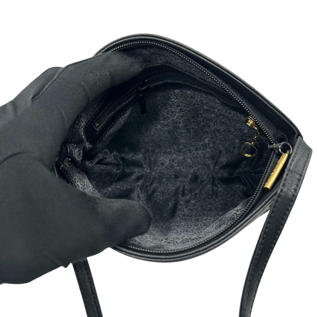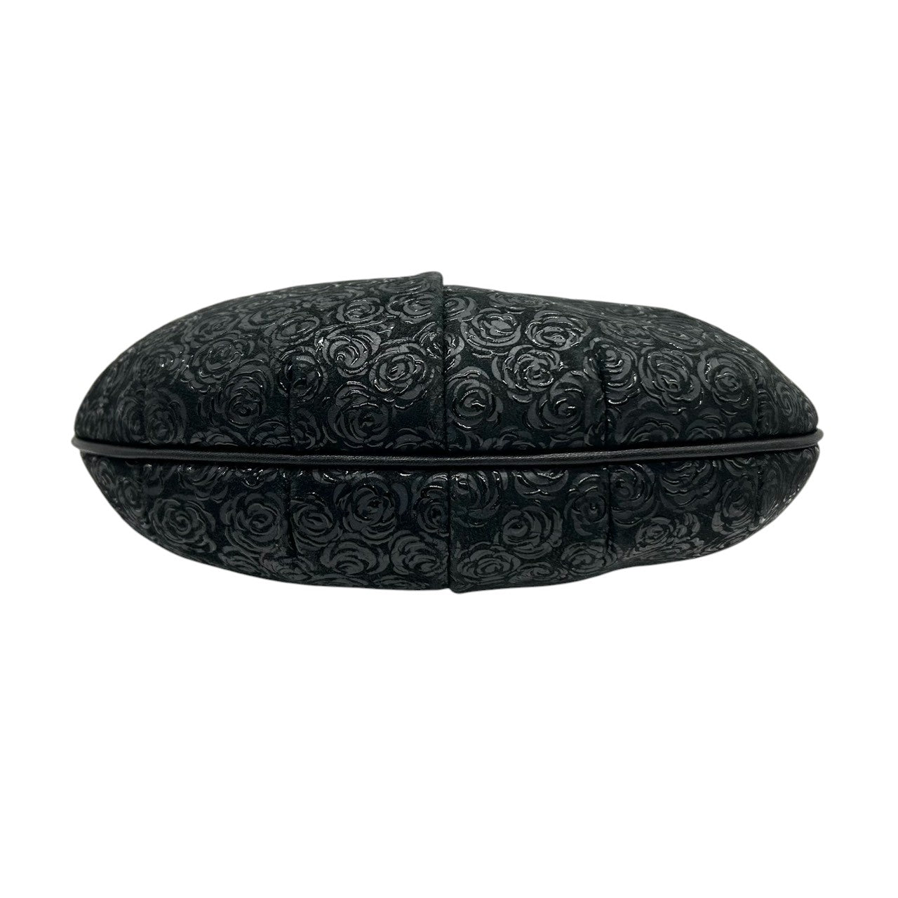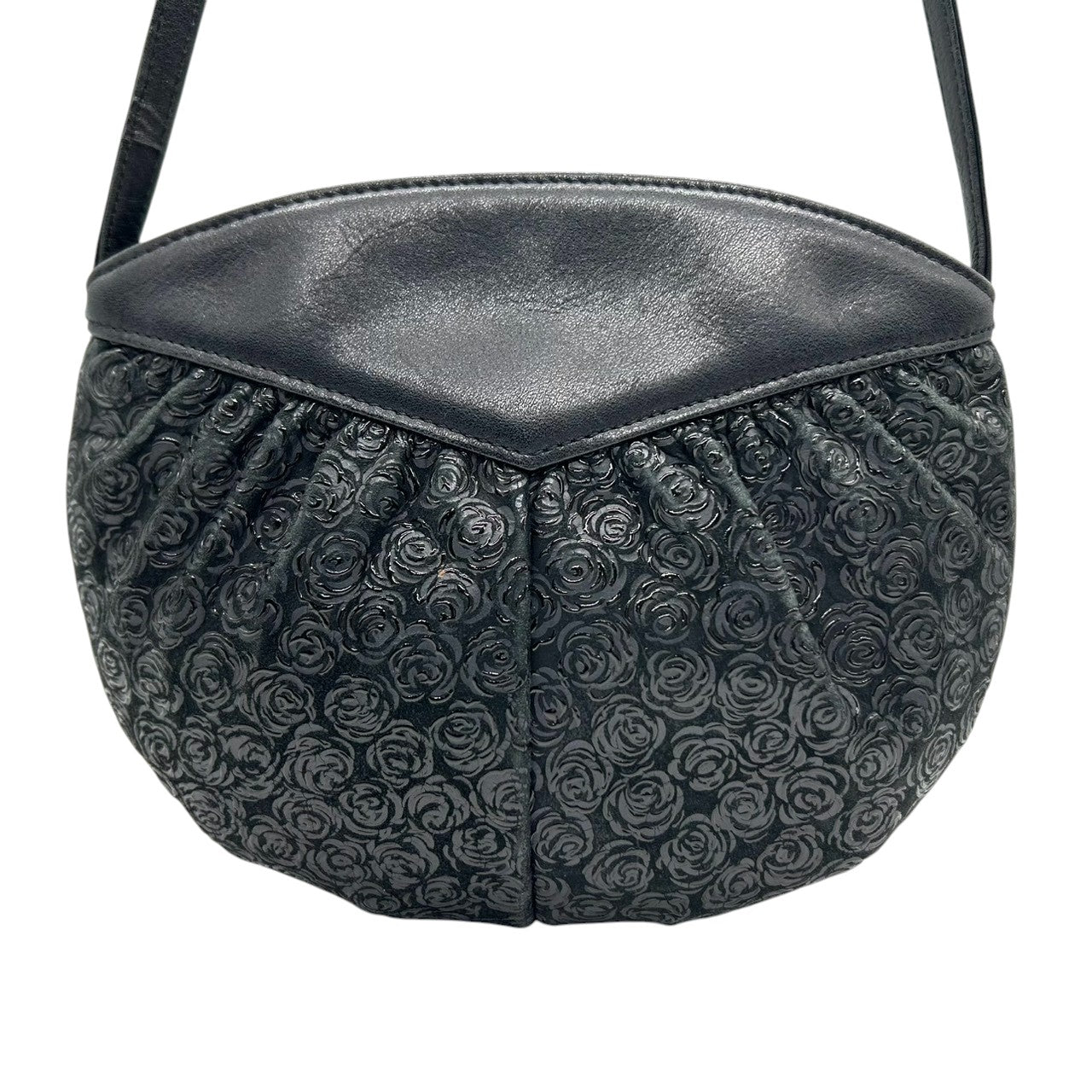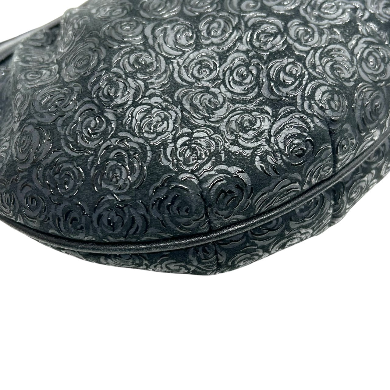 【美品】印傳屋 ショルダーバッグ ポシェット 斜め掛け可 薔薇 バラ ローズ 総柄 型押し PVC レザー ブラック 黒 レディース 伝統工芸 甲州印伝 軽量 コンパクト エレガント 上品 和装 洋装 日本製 s84