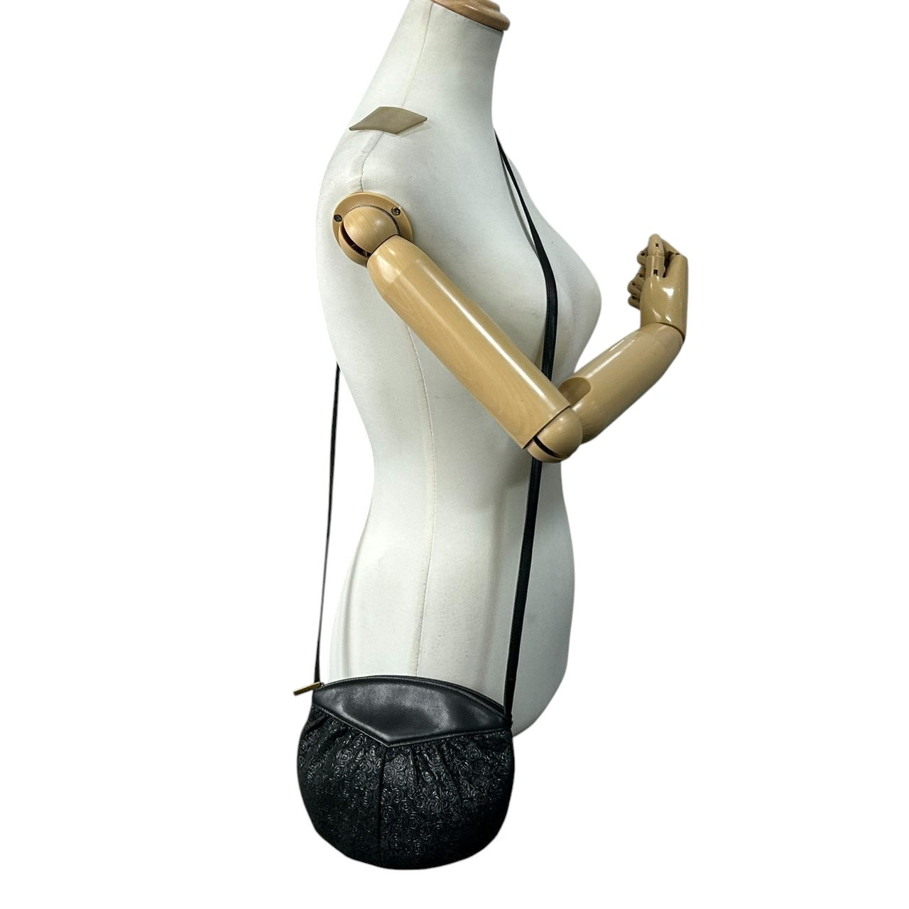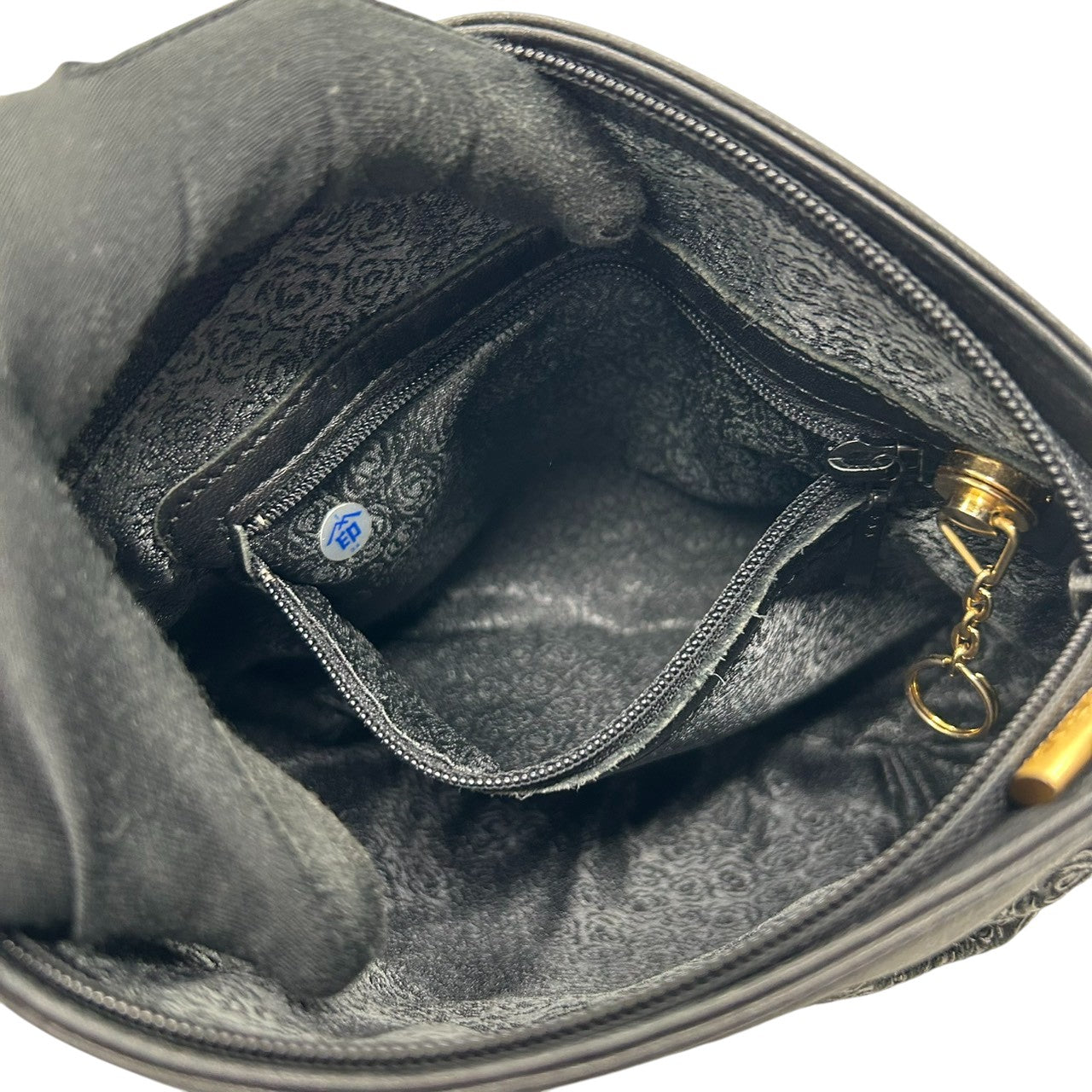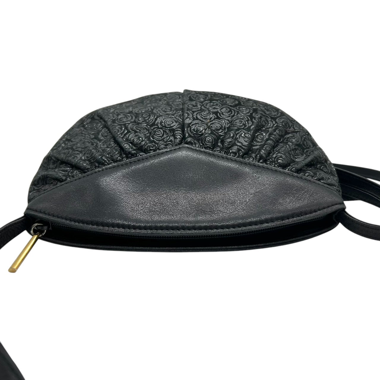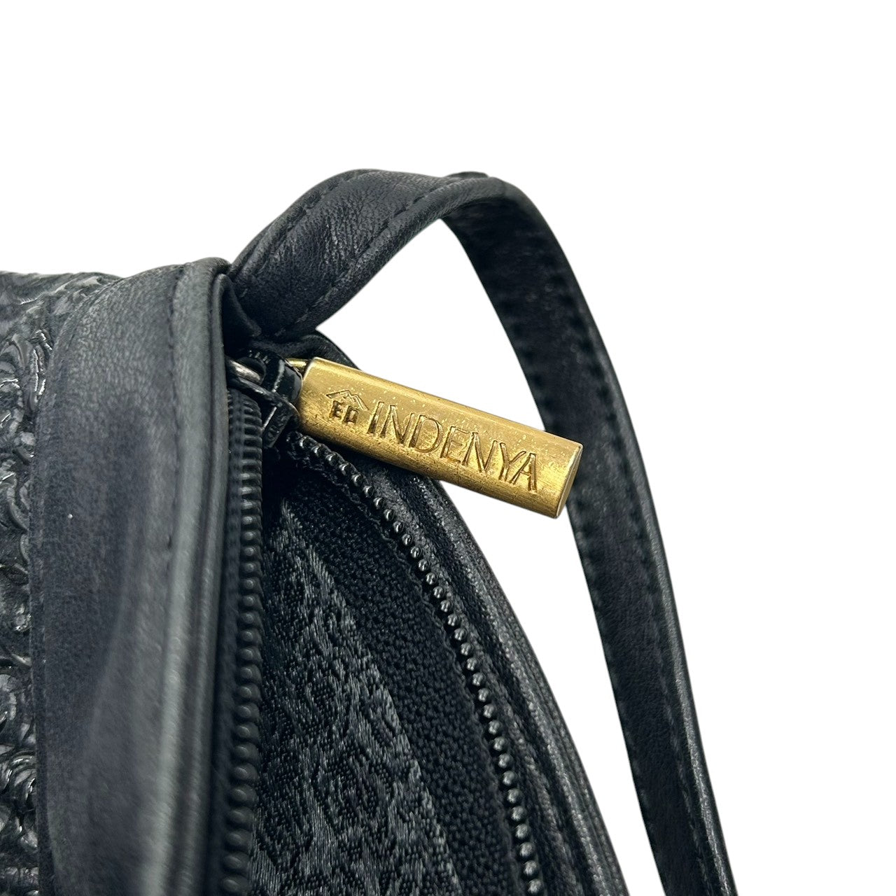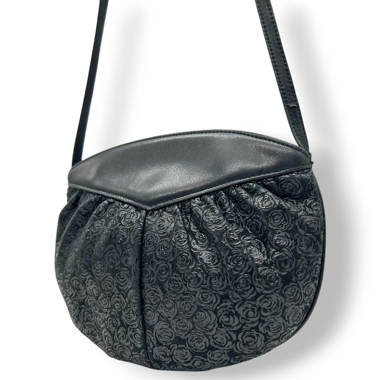 【美品】印傳屋 ショルダーバッグ ポシェット 斜め掛け可 薔薇 バラ ローズ 総柄 型押し PVC レザー ブラック 黒 レディース 伝統工芸 甲州印伝 軽量 コンパクト エレガント 上品 和装 洋装 日本製 s84