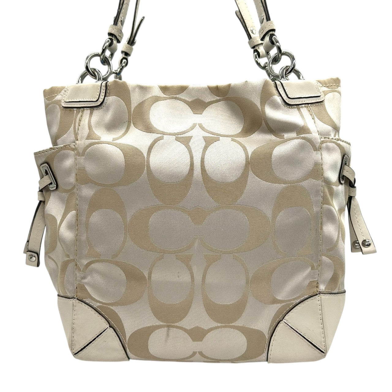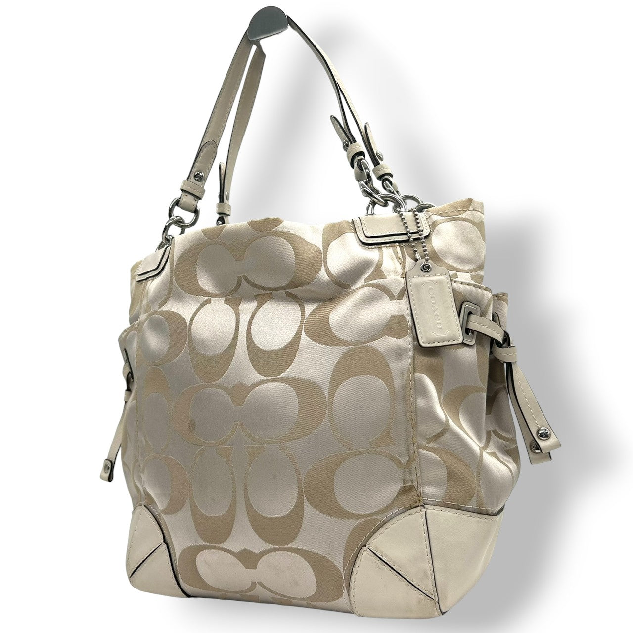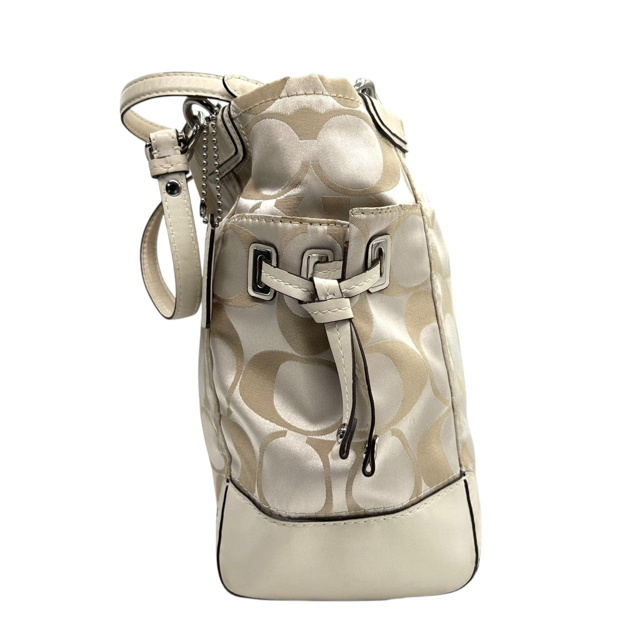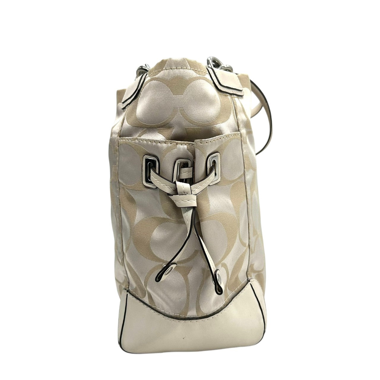 コーチ トートバッグ ハンドバッグ ワンショルダー シグネチャー ナイロン レザー ベージュ アイボリー A4収納可 大容量 軽量 レディース 通勤 通学 ビジネス デイリーユース エレガント きれいめ 上品 サイドポケット 定番人気モデル 14505 s61