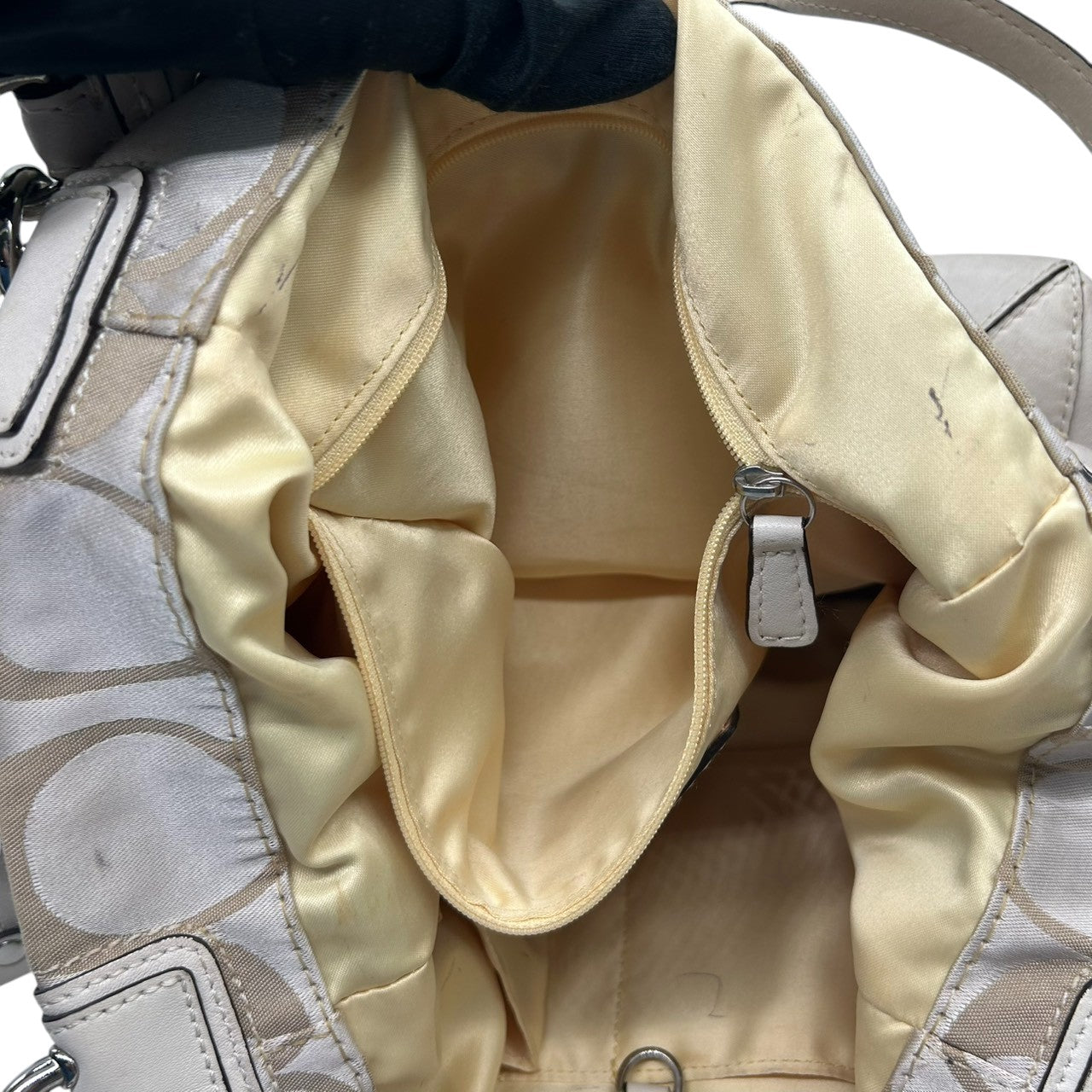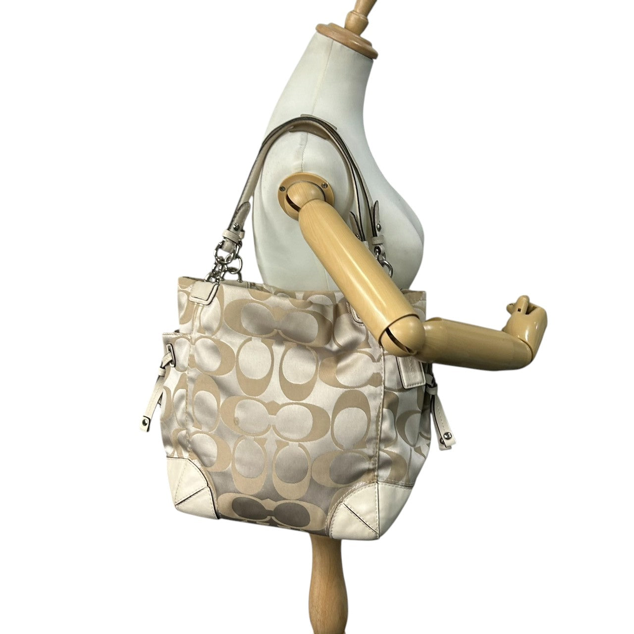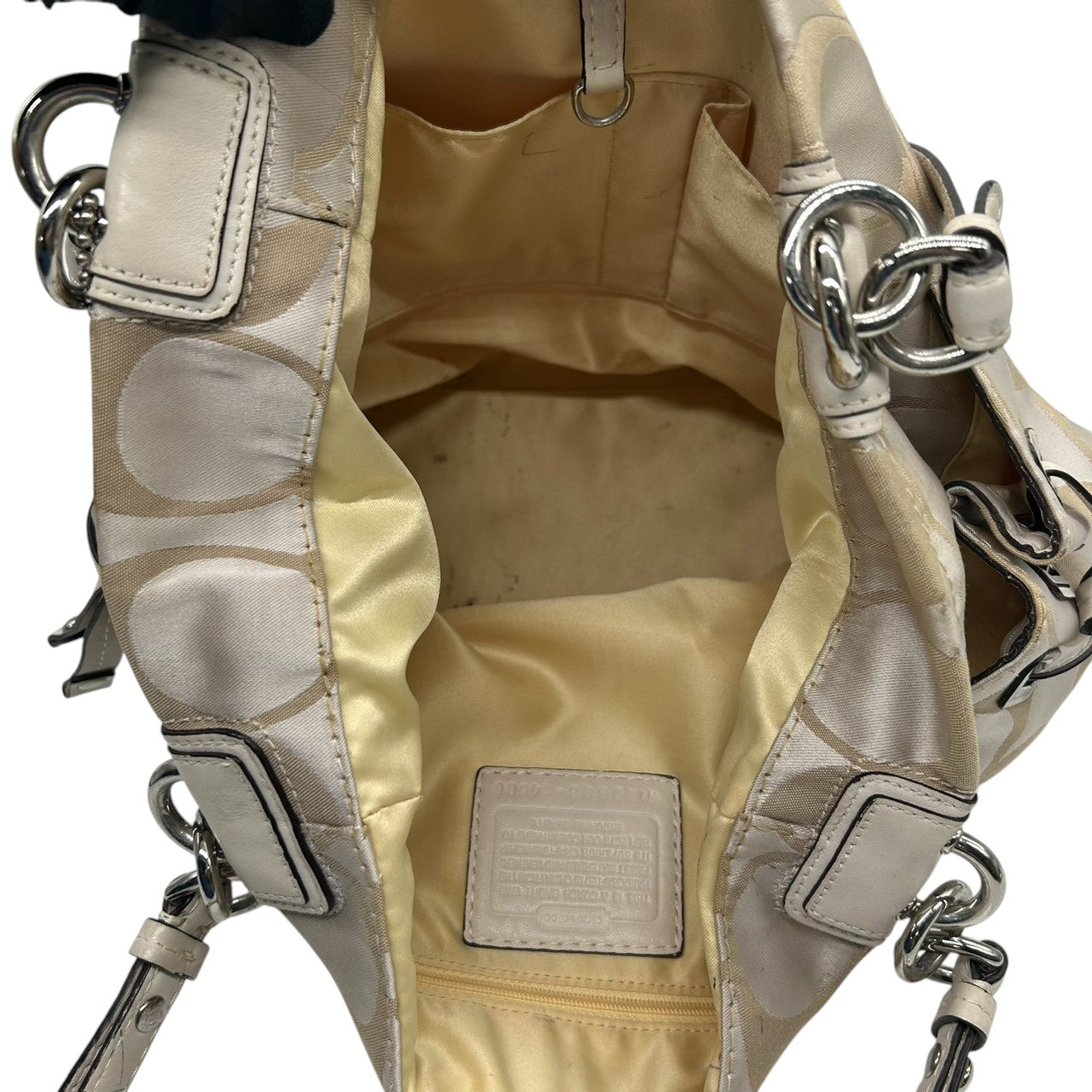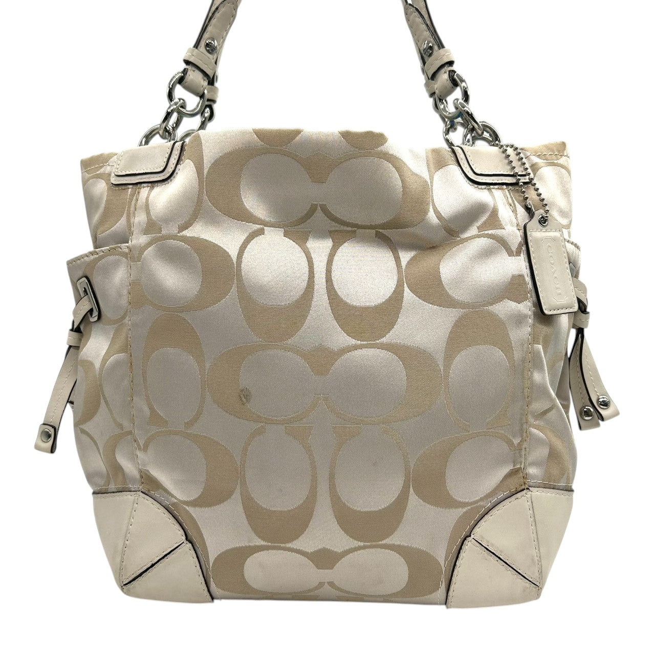 コーチ トートバッグ ハンドバッグ ワンショルダー シグネチャー ナイロン レザー ベージュ アイボリー A4収納可 大容量 軽量 レディース 通勤 通学 ビジネス デイリーユース エレガント きれいめ 上品 サイドポケット 定番人気モデル 14505 s61