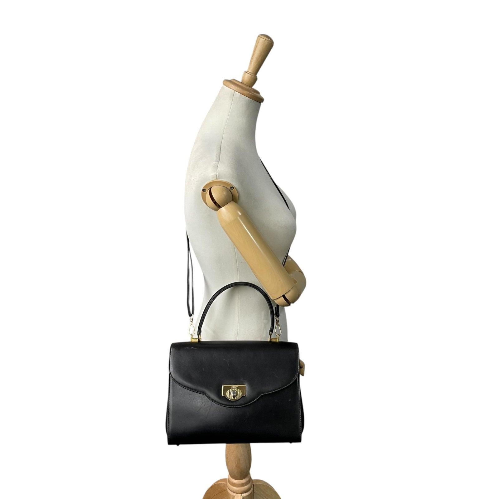 バリー BALLY 2WAY ハンドバッグ ショルダーバッグ フォーマル 黒 ブラック レザー ゴールド金具 ターンロック トップハンドル 斜め掛け可 レディース K1