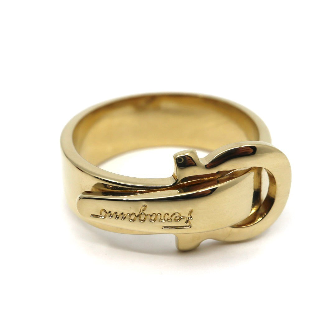 美品 フェラガモ Ferragamo ガンチーニ スカーフリング ゴールドカラー 金 ロゴ刻印 メタル アクセサリー レディース I8