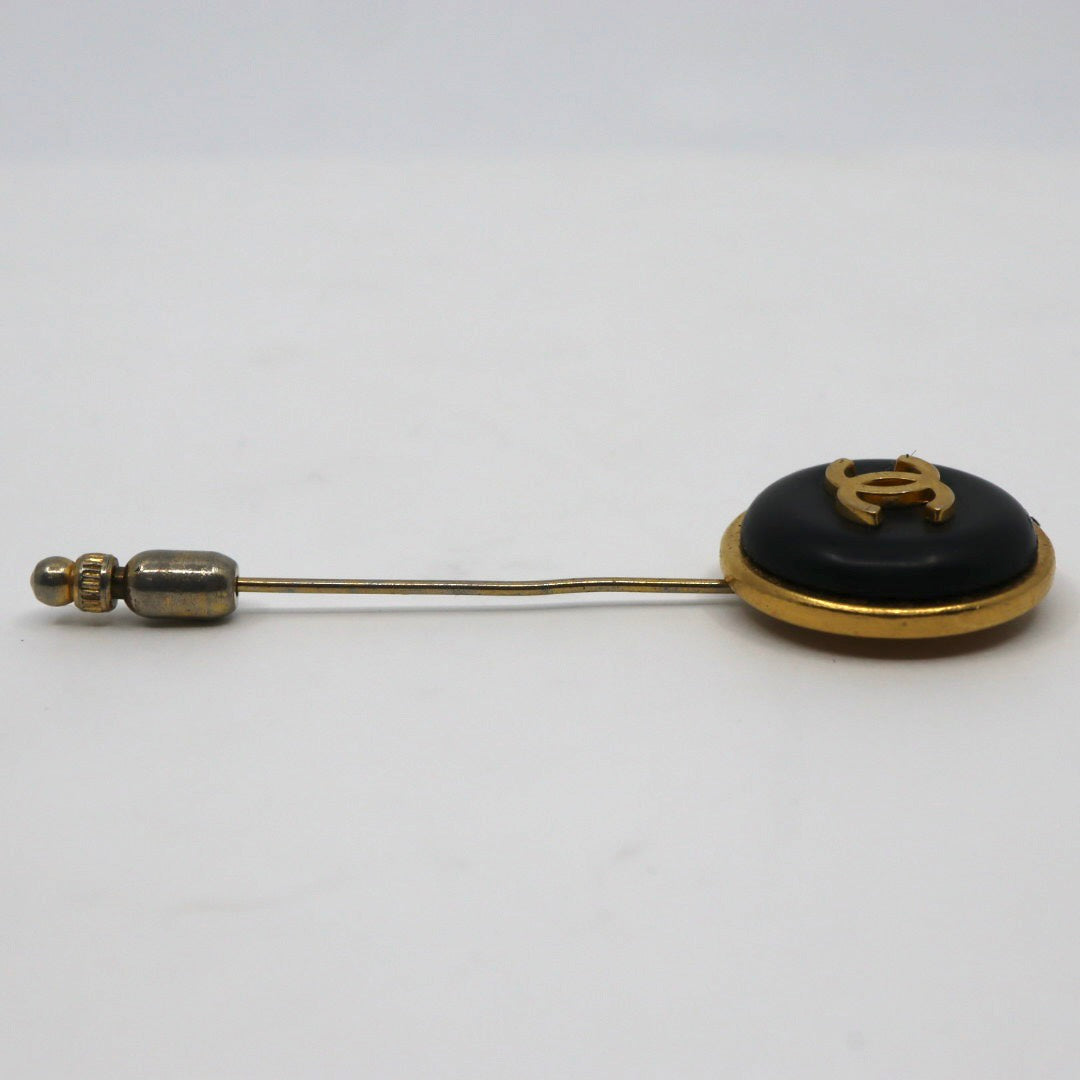 シャネル CHANEL ココマーク ラペルピン タイピン ブローチ ゴールド 金 ブラック 黒 ロゴ刻印 ヴィンテージ アクセサリー I8