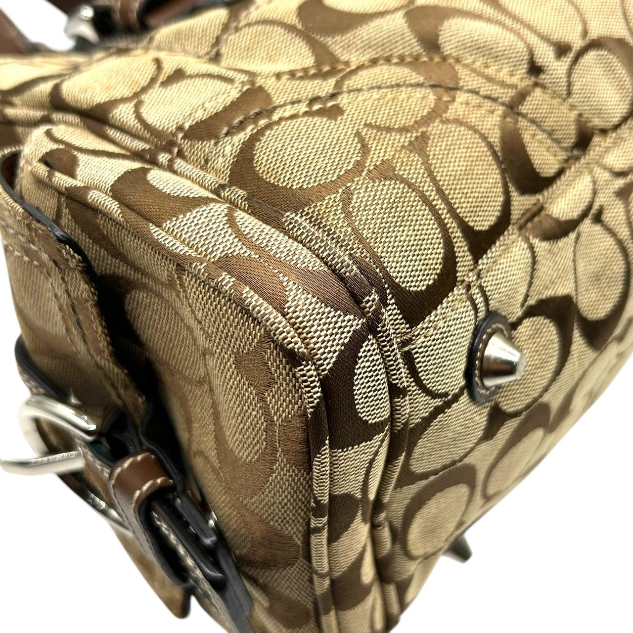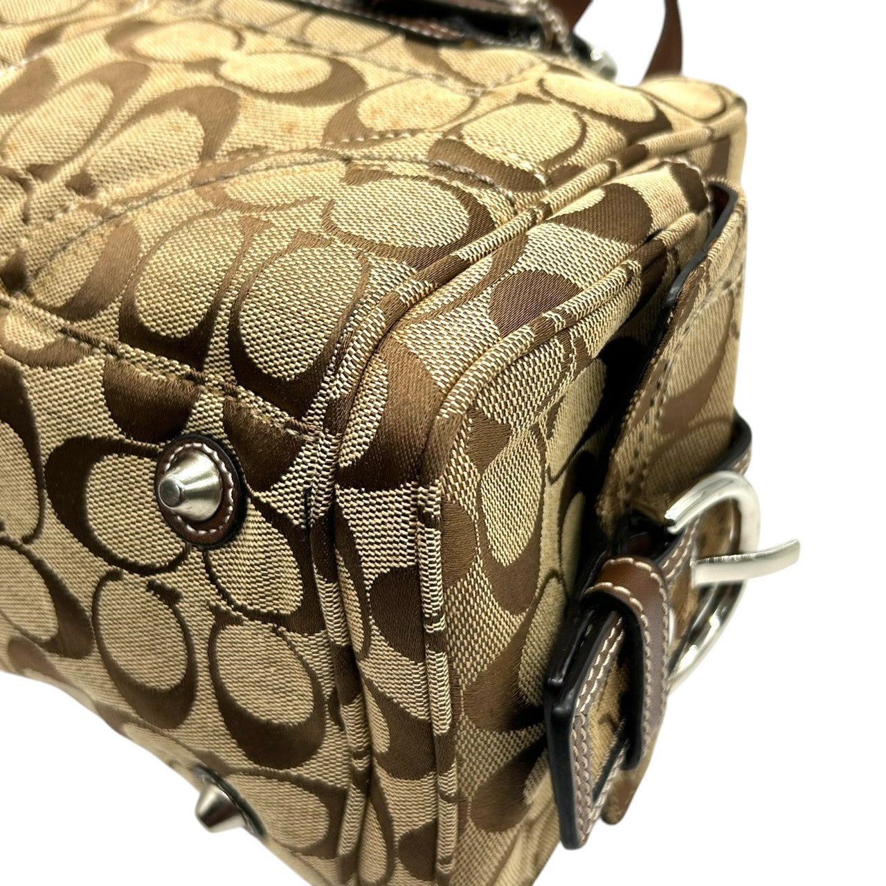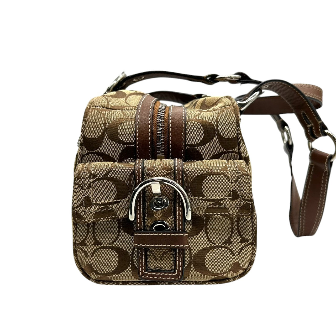 コーチ ハンドバッグ Y2K 00s vintage ワンショルダーバッグ シグネチャー ミニボストン キャンバス レザー ブラウン レディース 肩掛け 定番人気 クラシック エレガント カジュアル サイドポケット ベルトデザイン COACH 10078 s83