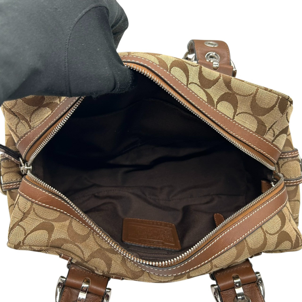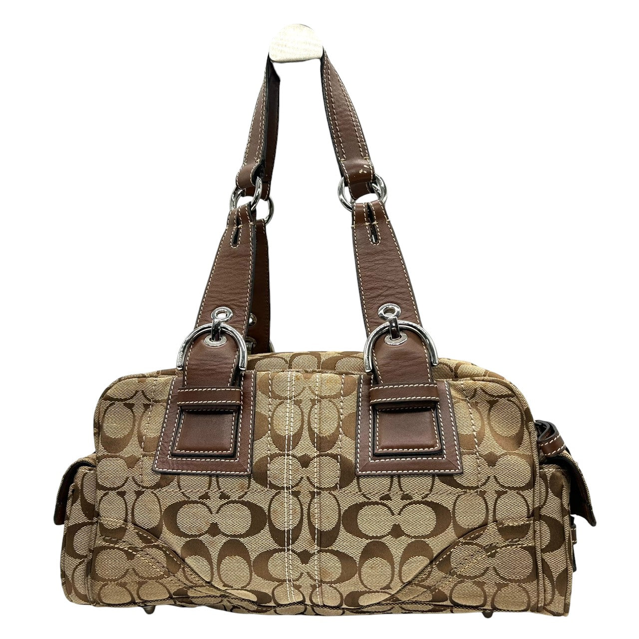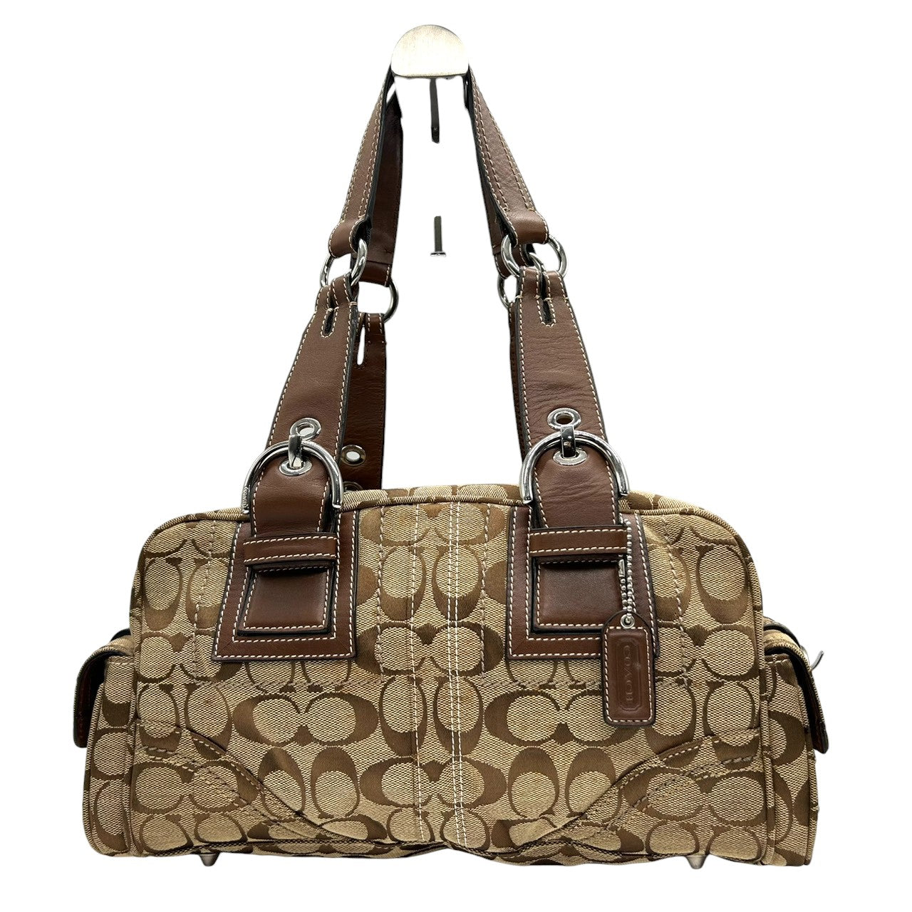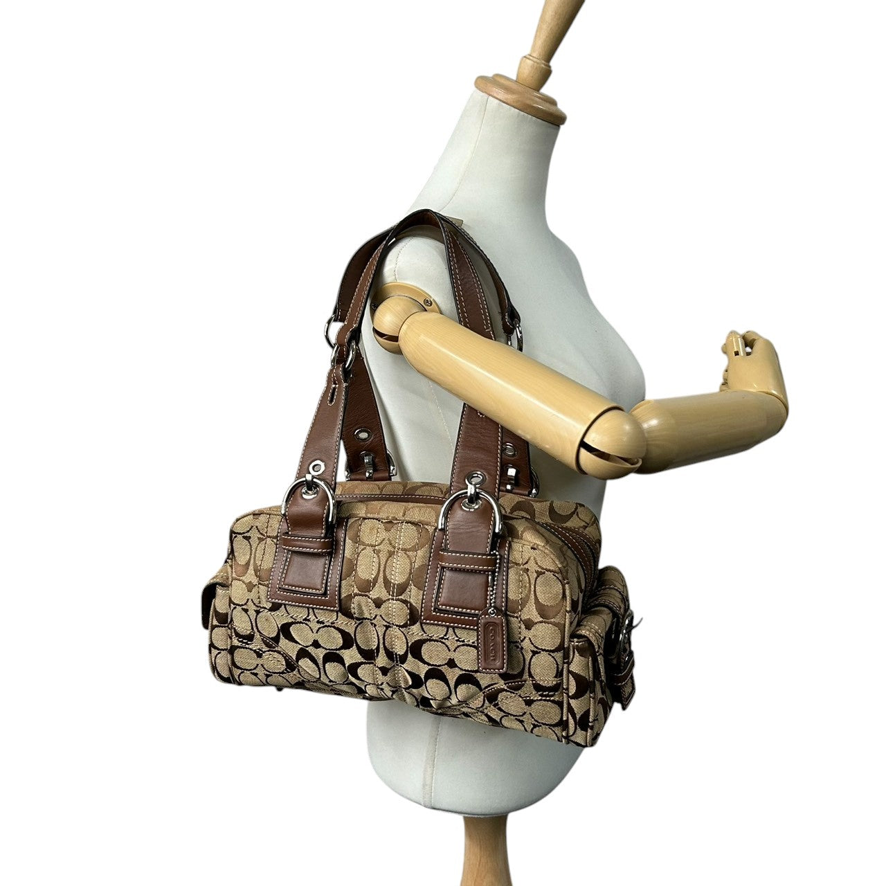 コーチ ハンドバッグ Y2K 00s vintage ワンショルダーバッグ シグネチャー ミニボストン キャンバス レザー ブラウン レディース 肩掛け 定番人気 クラシック エレガント カジュアル サイドポケット ベルトデザイン COACH 10078 s83