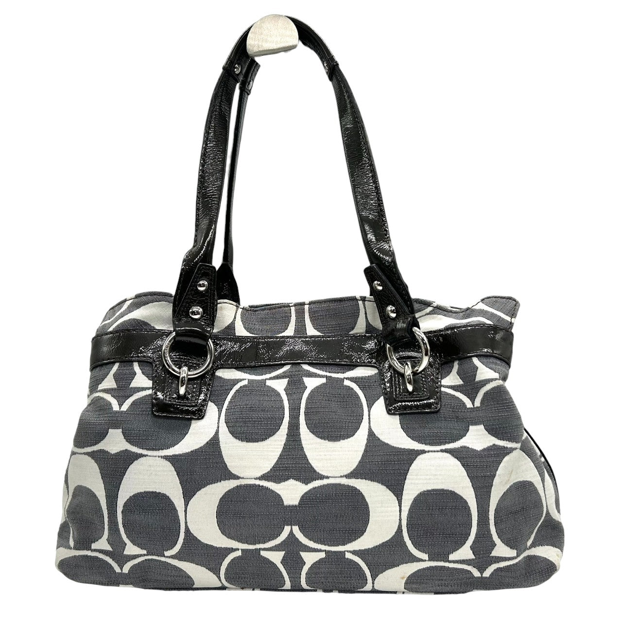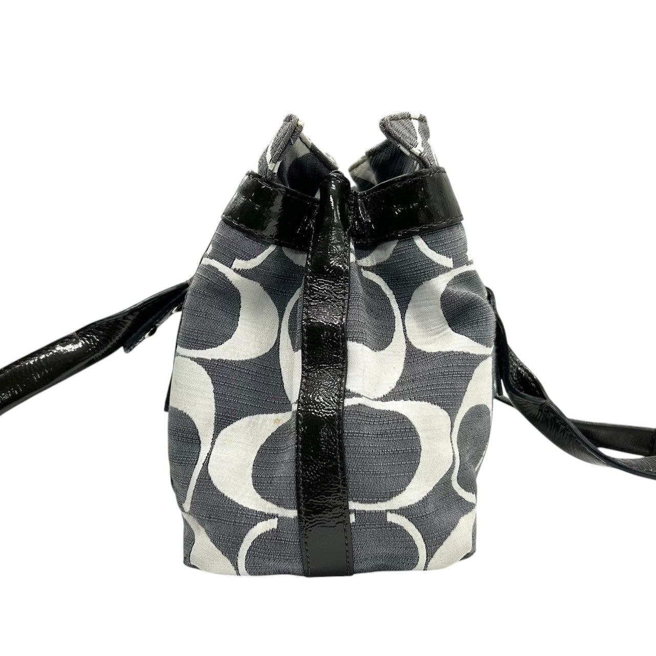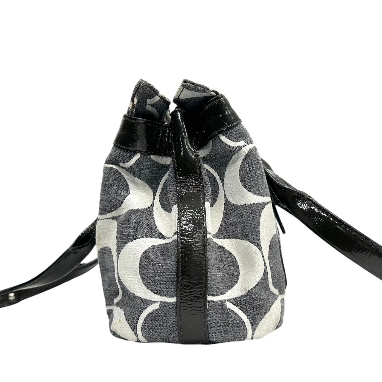 コーチ ハンドバッグ ワンショルダー オプアート シグネチャー キャンバス パテントレザー グレー ブラック レディース 肩掛け 通勤 通学 カジュアル スタイリッシュ モノトーン デザイン性 人気モデル COACH 13290 s82