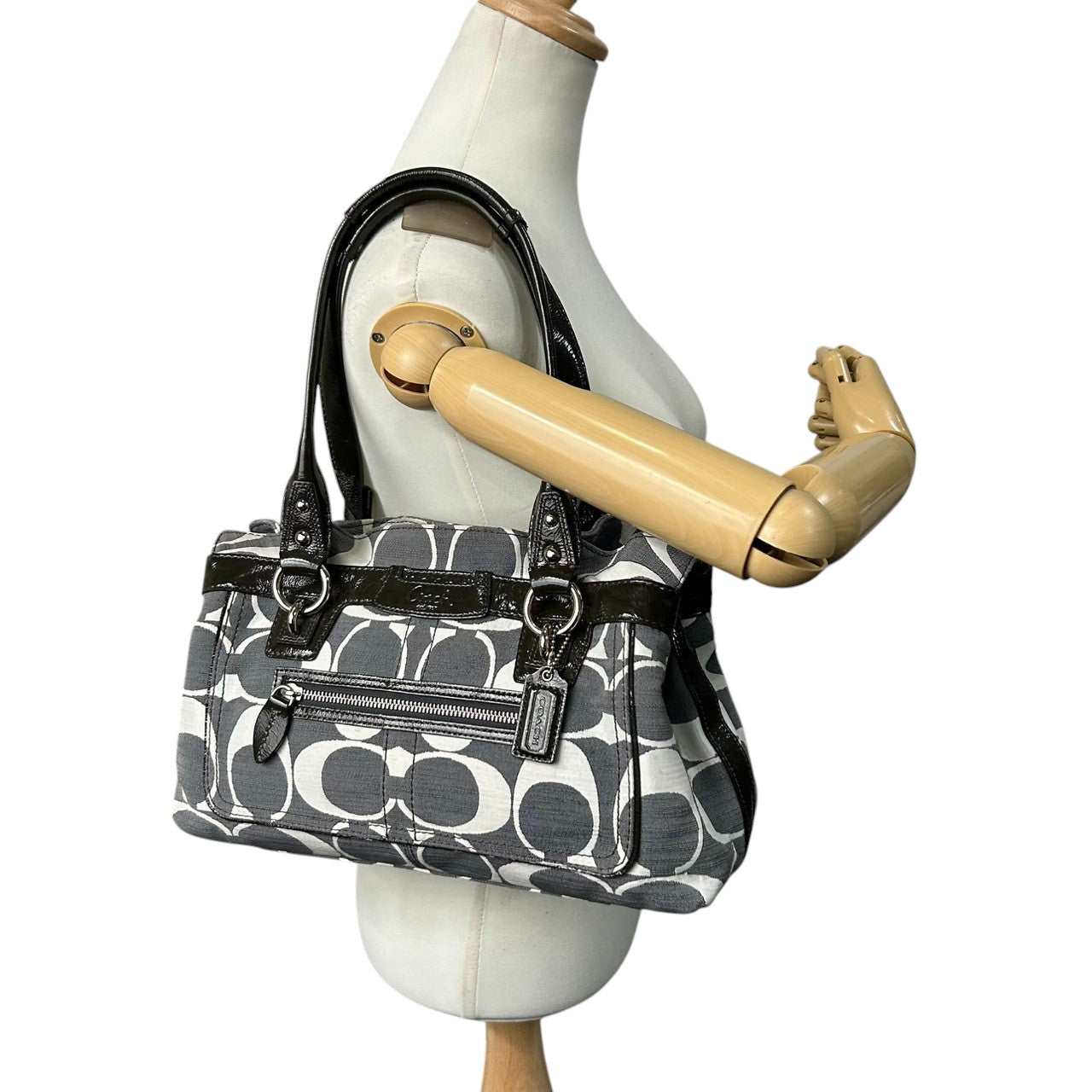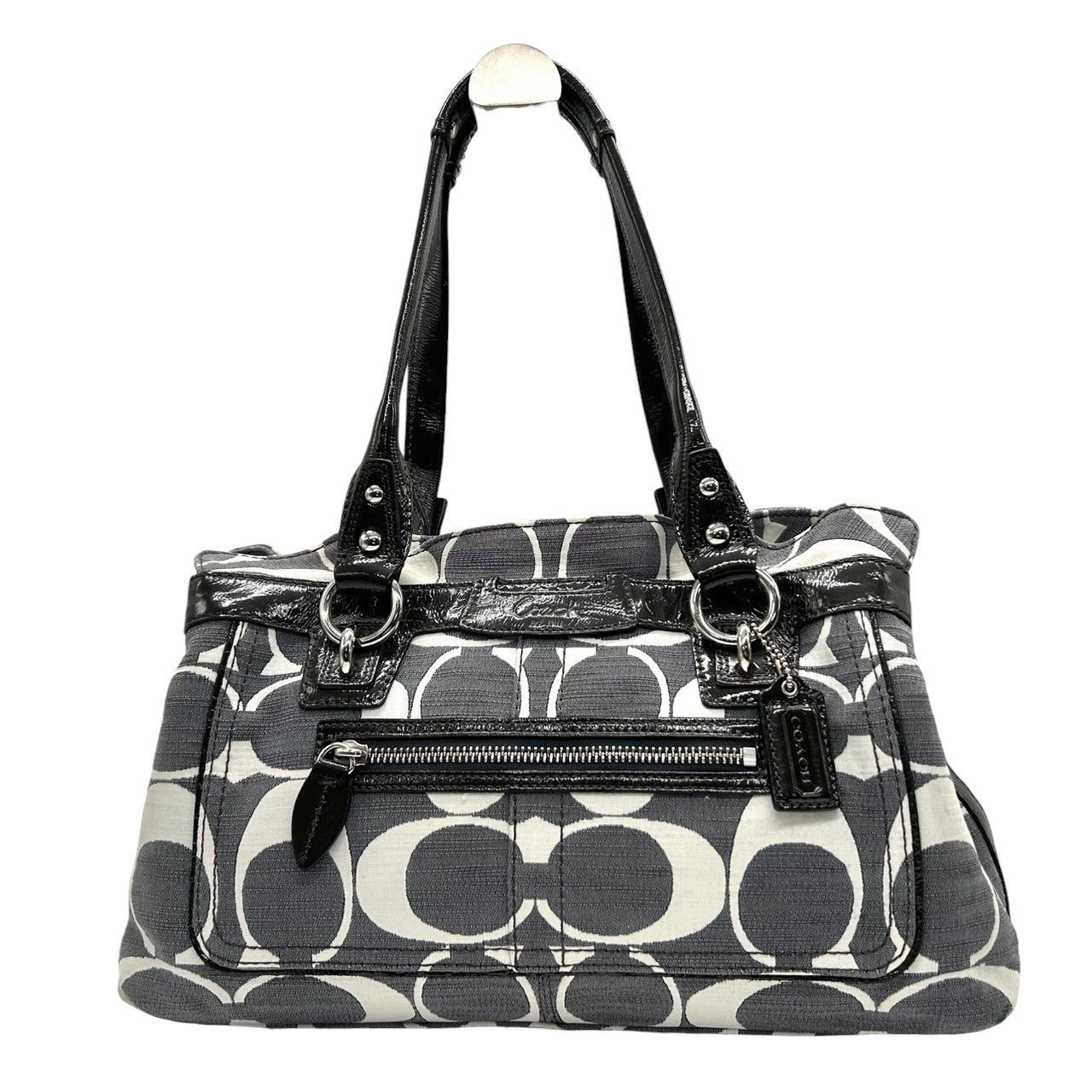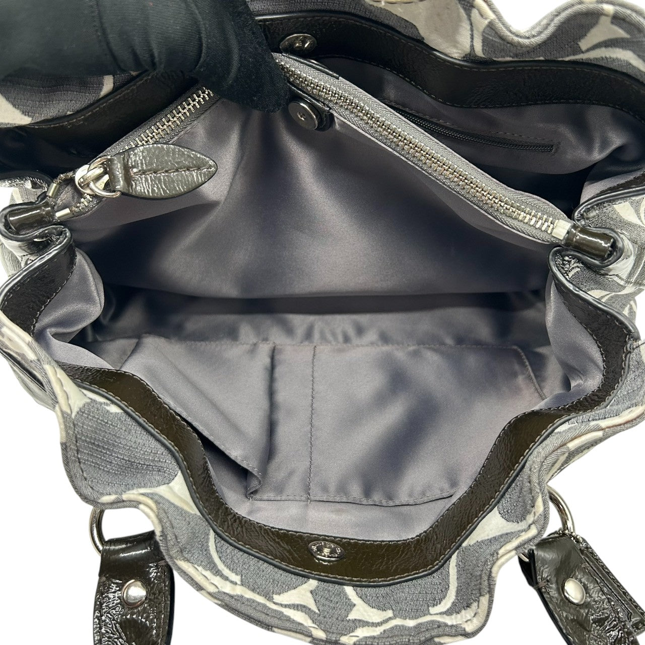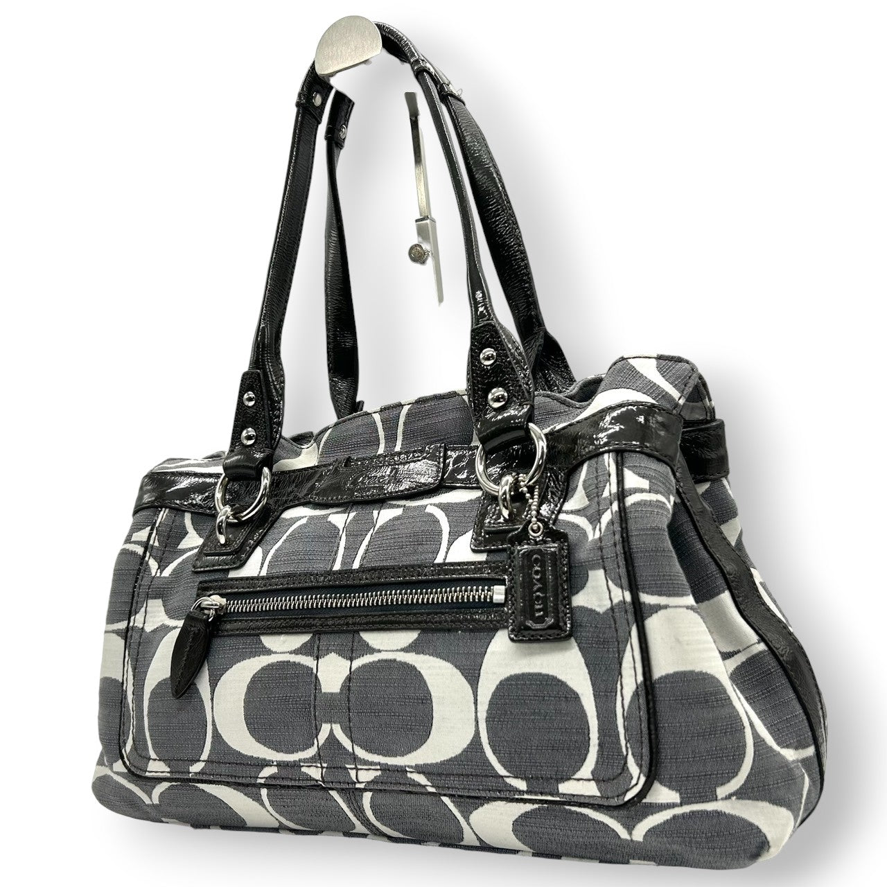 コーチ ハンドバッグ ワンショルダー オプアート シグネチャー キャンバス パテントレザー グレー ブラック レディース 肩掛け 通勤 通学 カジュアル スタイリッシュ モノトーン デザイン性 人気モデル COACH 13290 s82