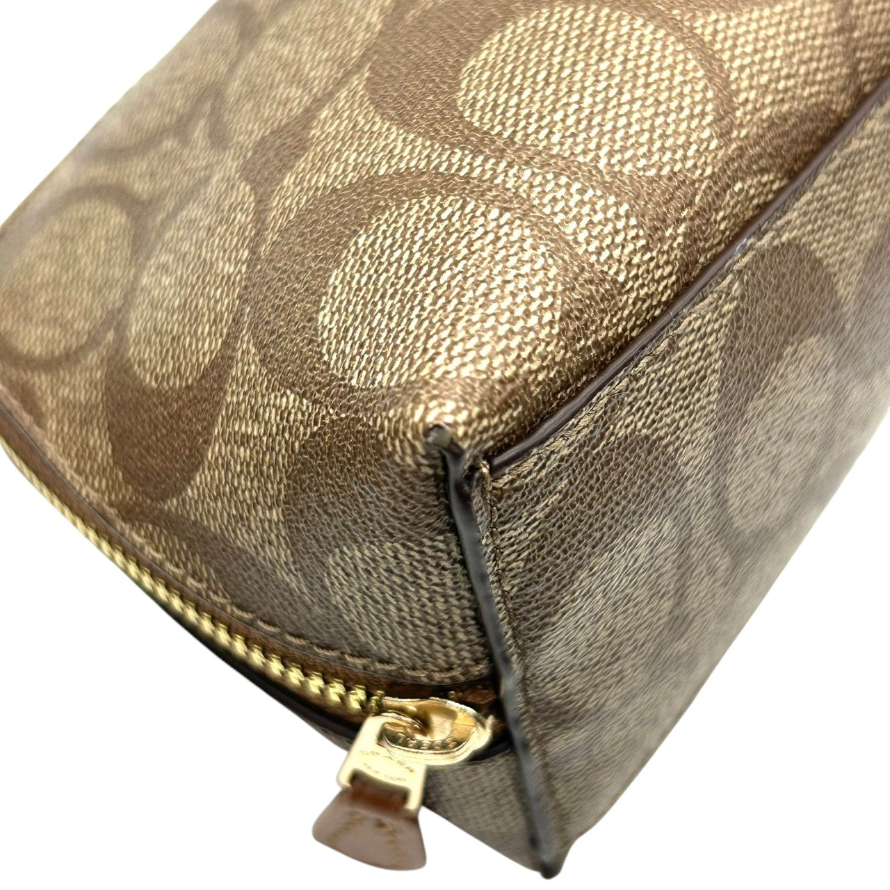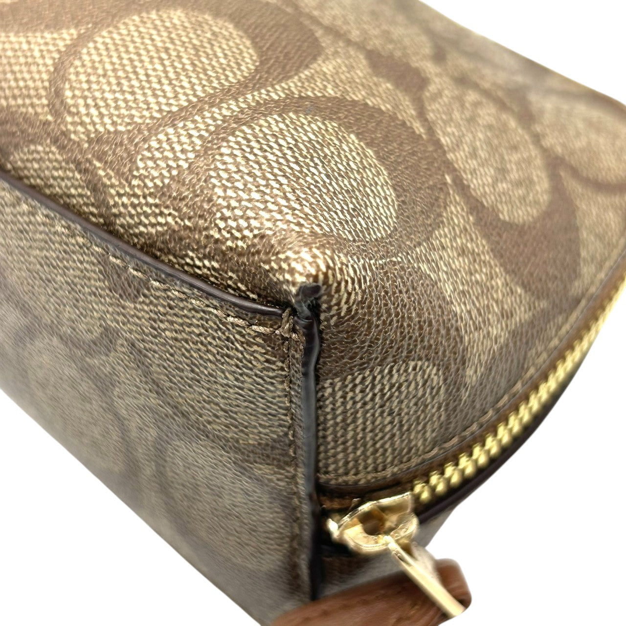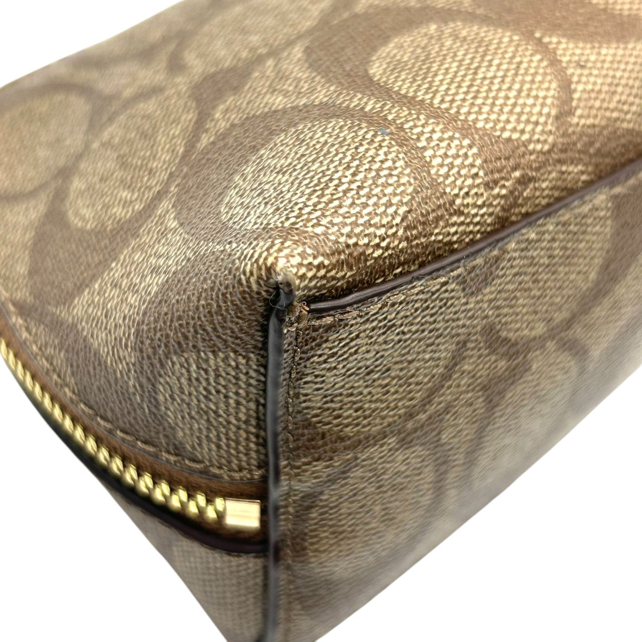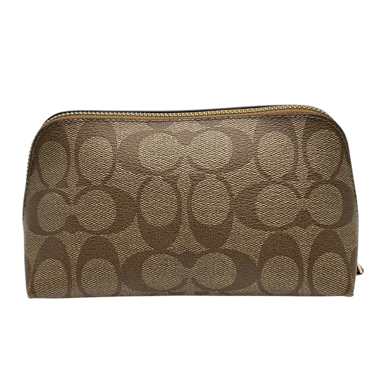 【美品】COACH コーチ ポーチ 化粧ポーチ コスメポーチ シグネチャー Cロゴ 総柄 PVC ブラウン 舟形 小物入れ トラベル バッグインバッグ レディース 定番人気 コンパクト 軽量 おしゃれ 大人可愛い F53385 s83