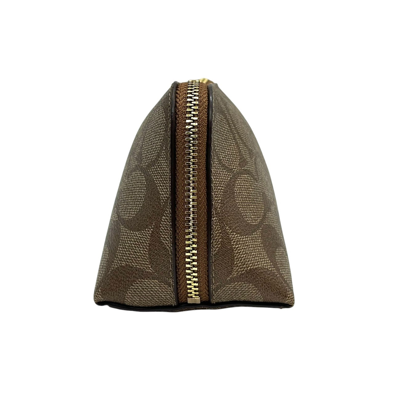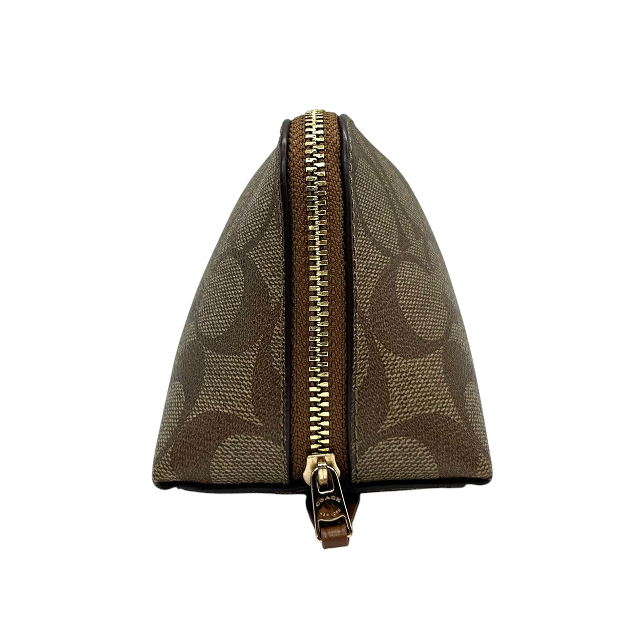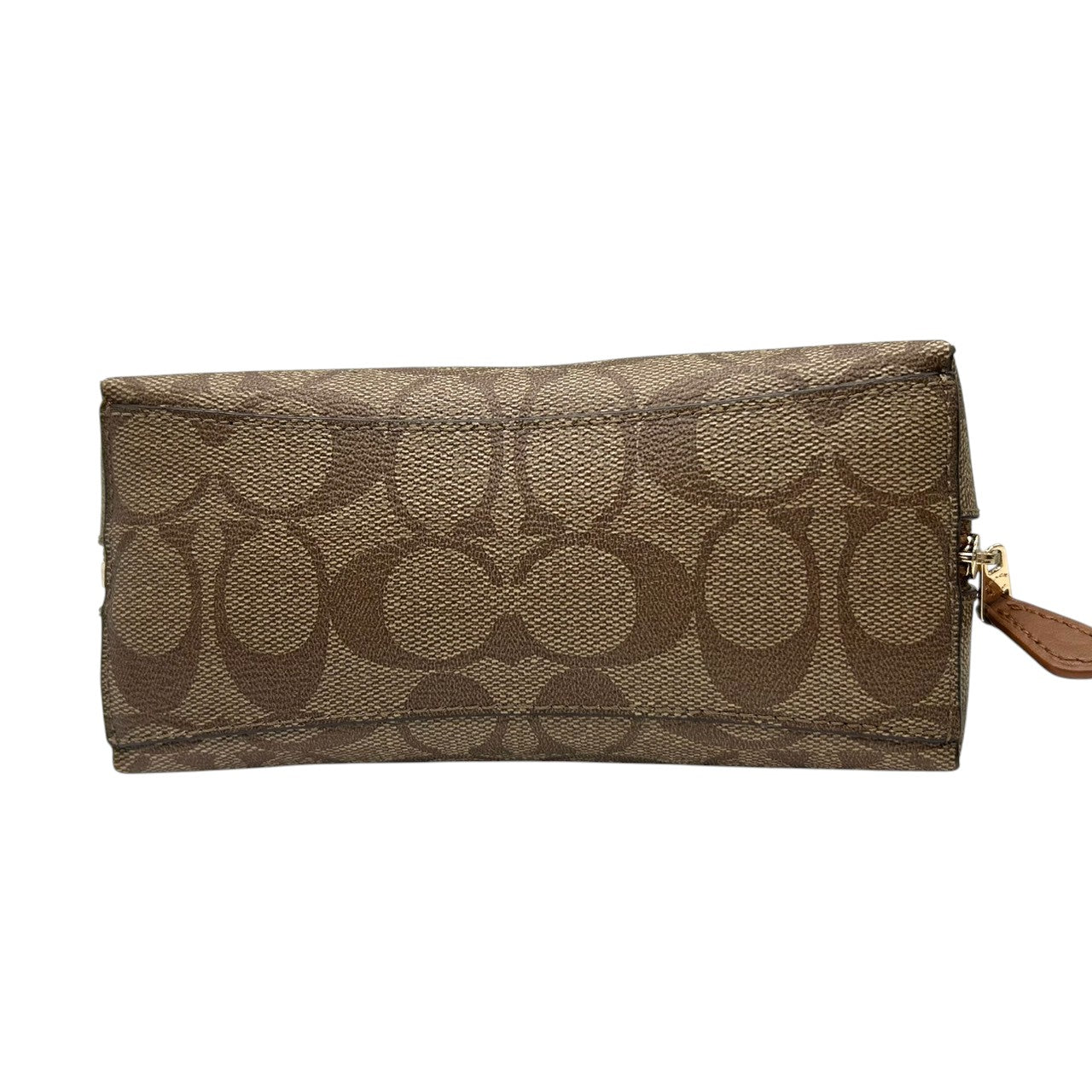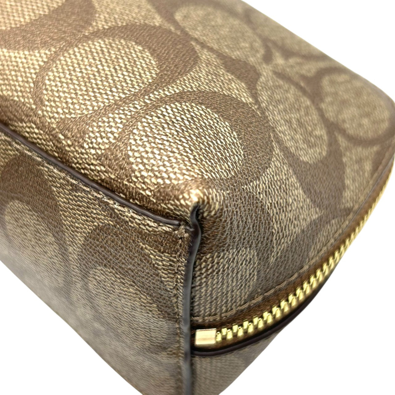 【美品】COACH コーチ ポーチ 化粧ポーチ コスメポーチ シグネチャー Cロゴ 総柄 PVC ブラウン 舟形 小物入れ トラベル バッグインバッグ レディース 定番人気 コンパクト 軽量 おしゃれ 大人可愛い F53385 s83