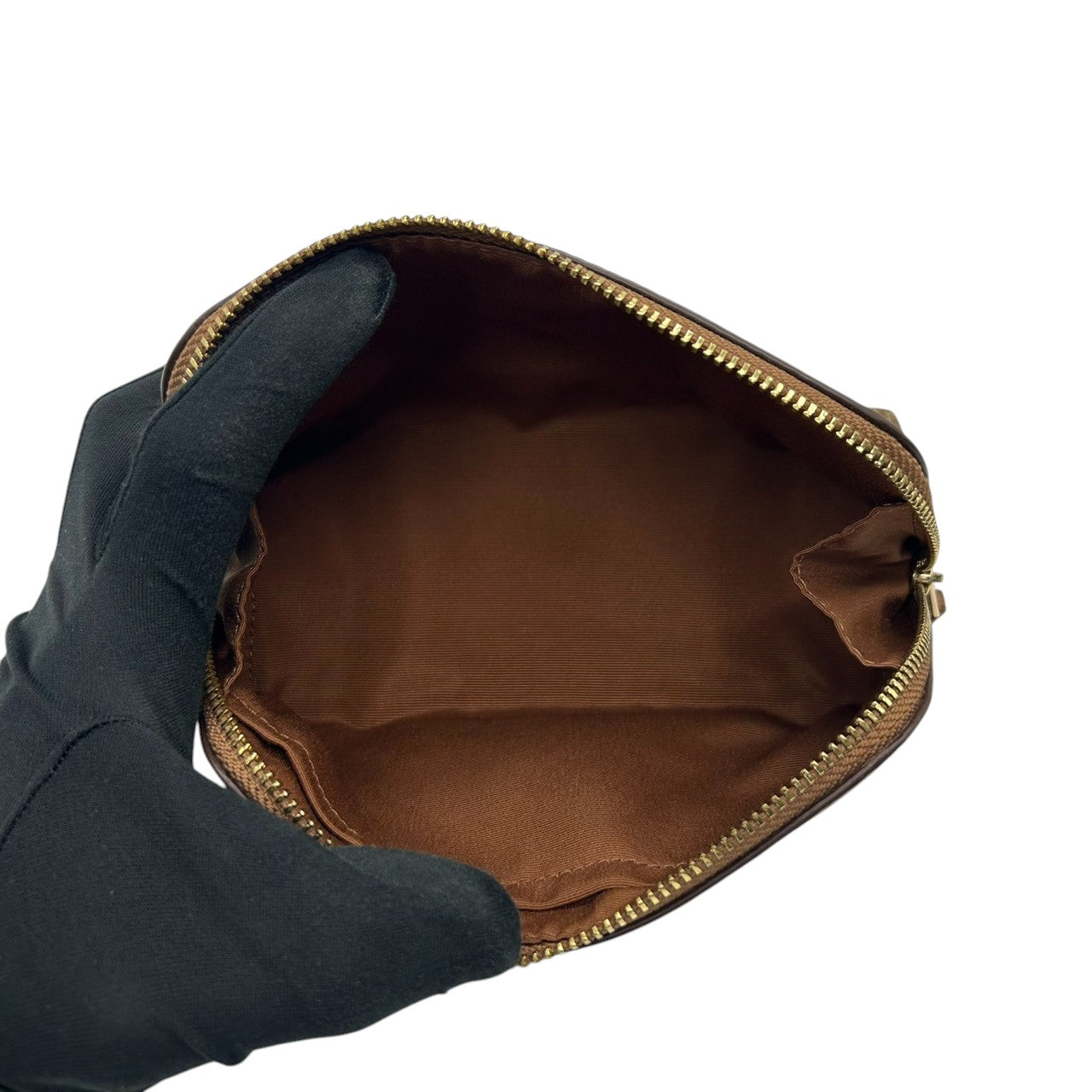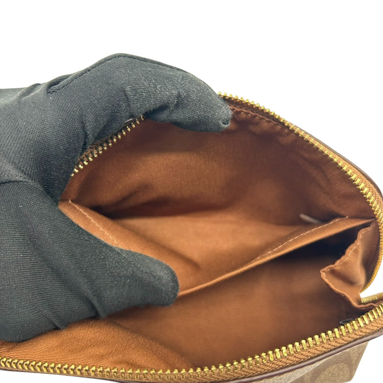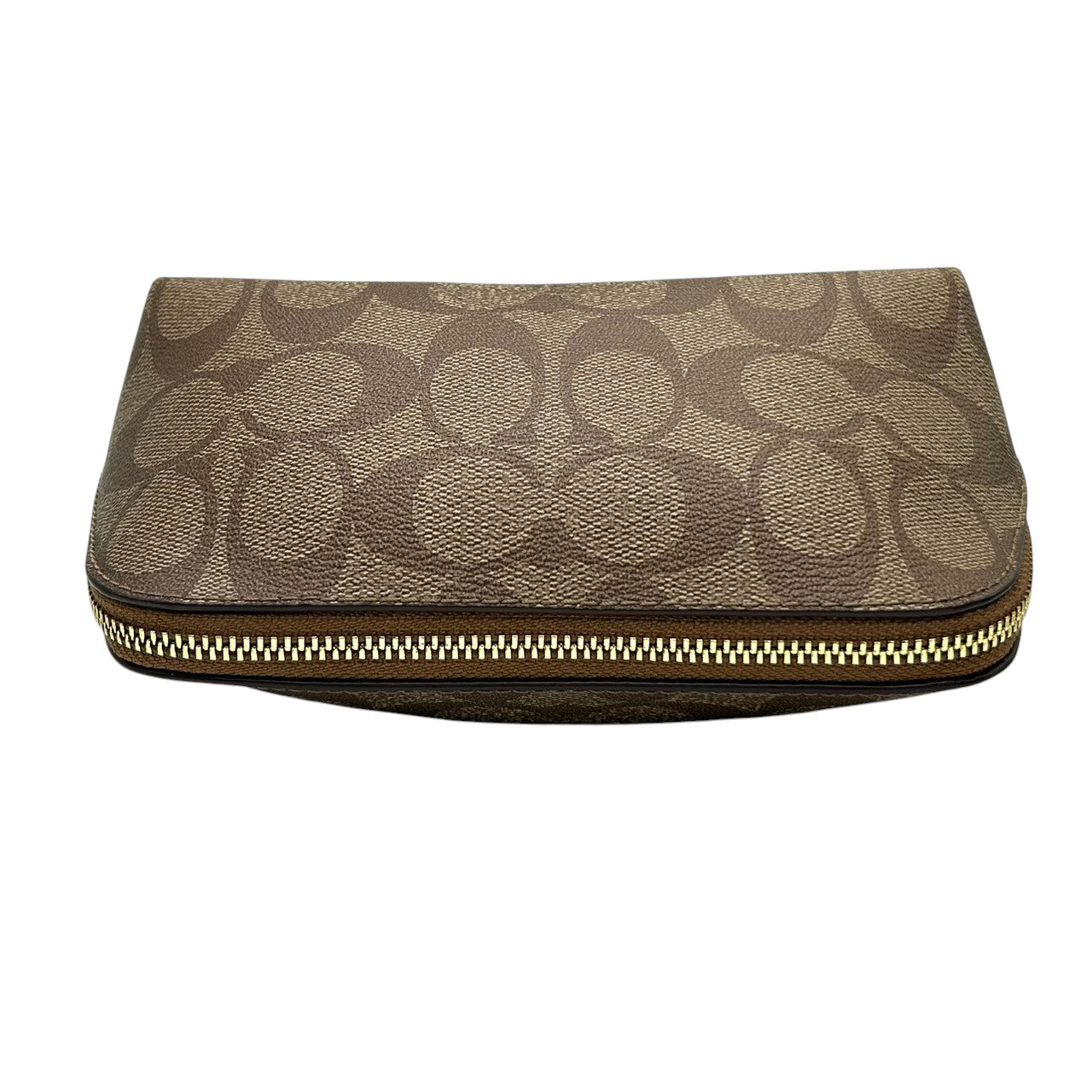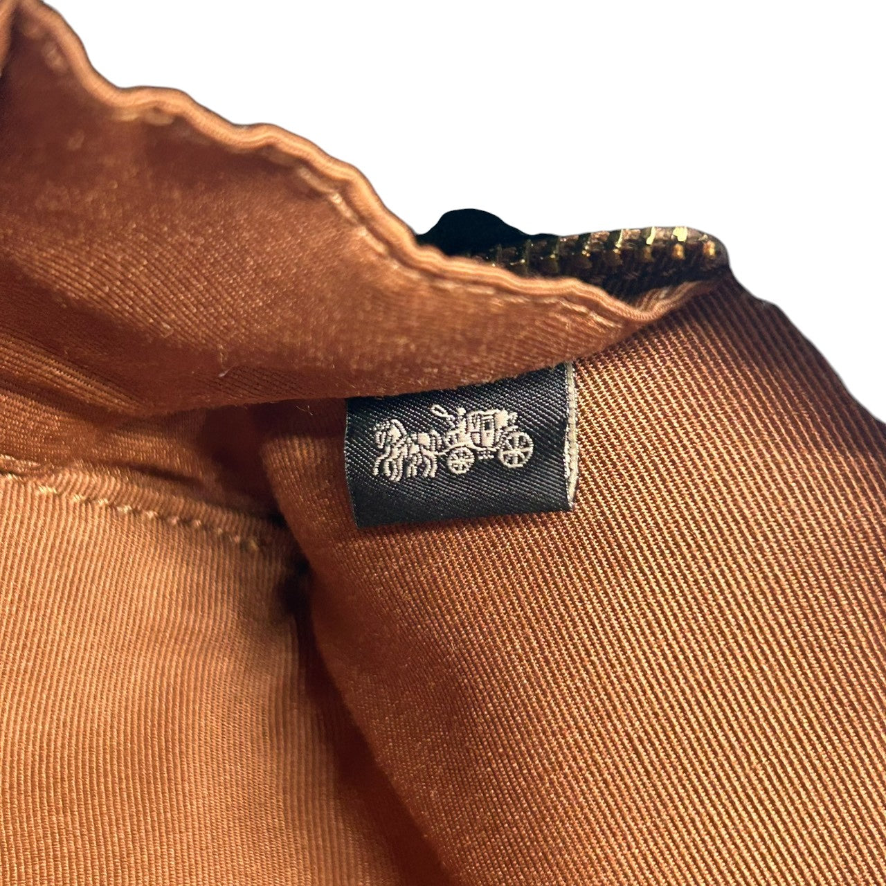 【美品】COACH コーチ ポーチ 化粧ポーチ コスメポーチ シグネチャー Cロゴ 総柄 PVC ブラウン 舟形 小物入れ トラベル バッグインバッグ レディース 定番人気 コンパクト 軽量 おしゃれ 大人可愛い F53385 s83