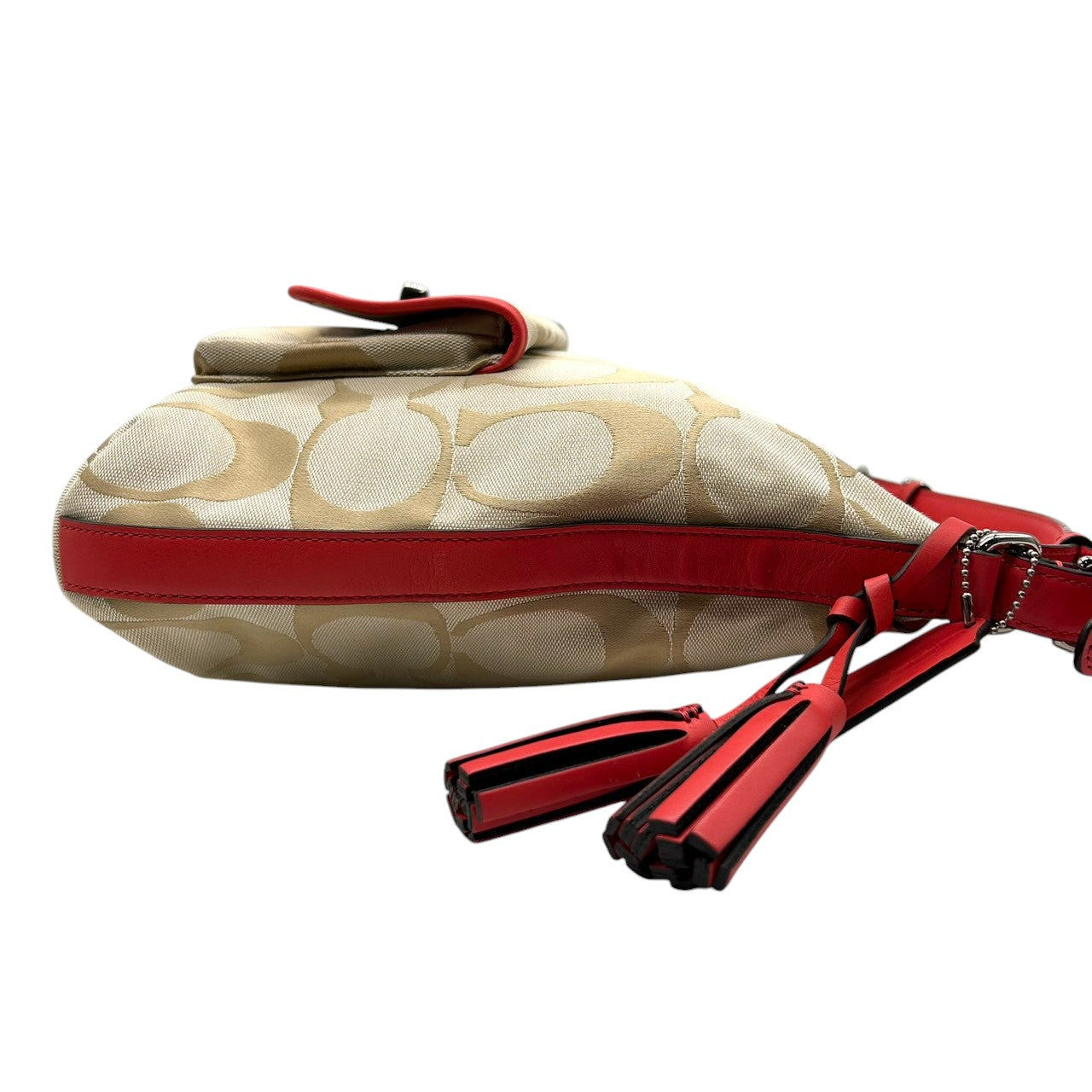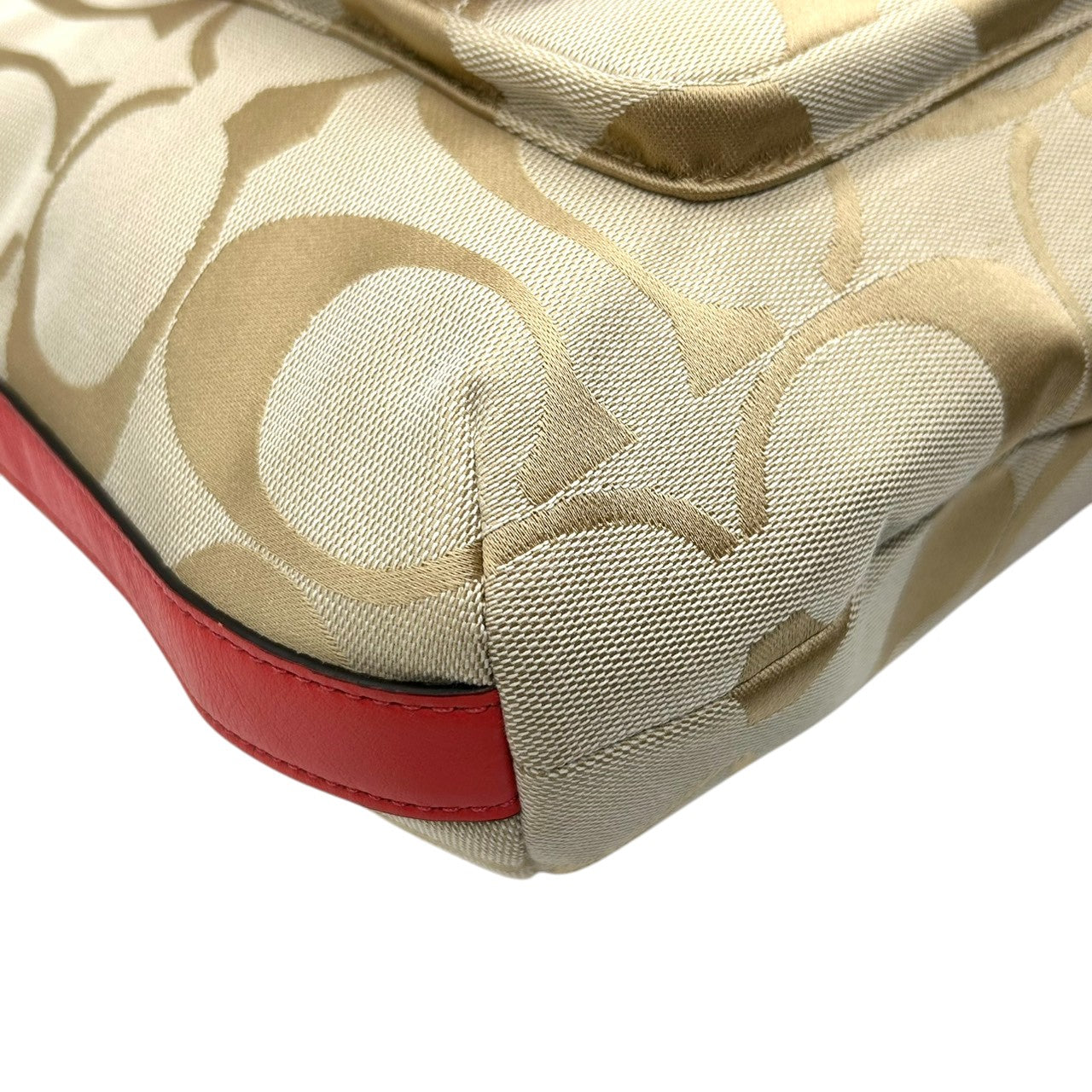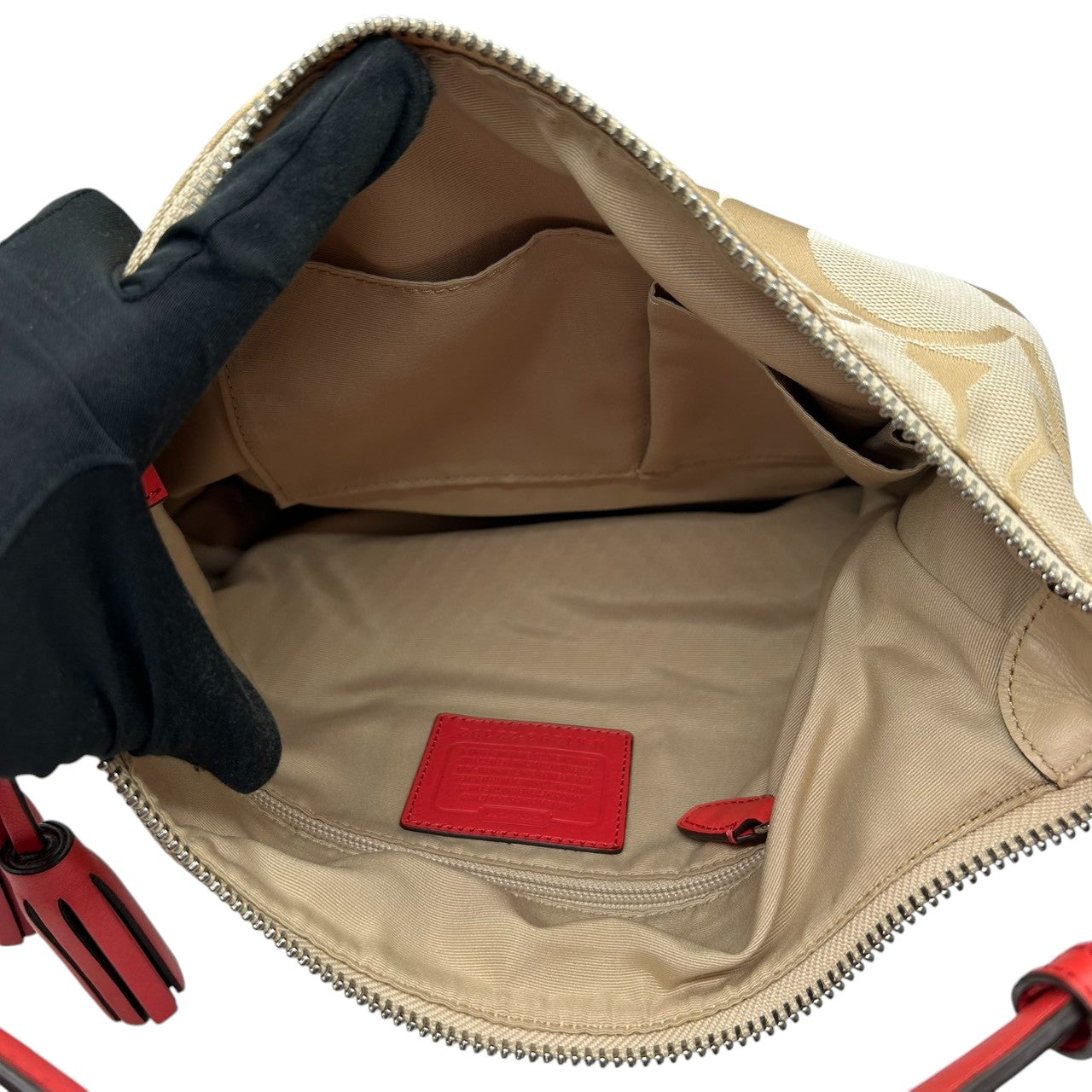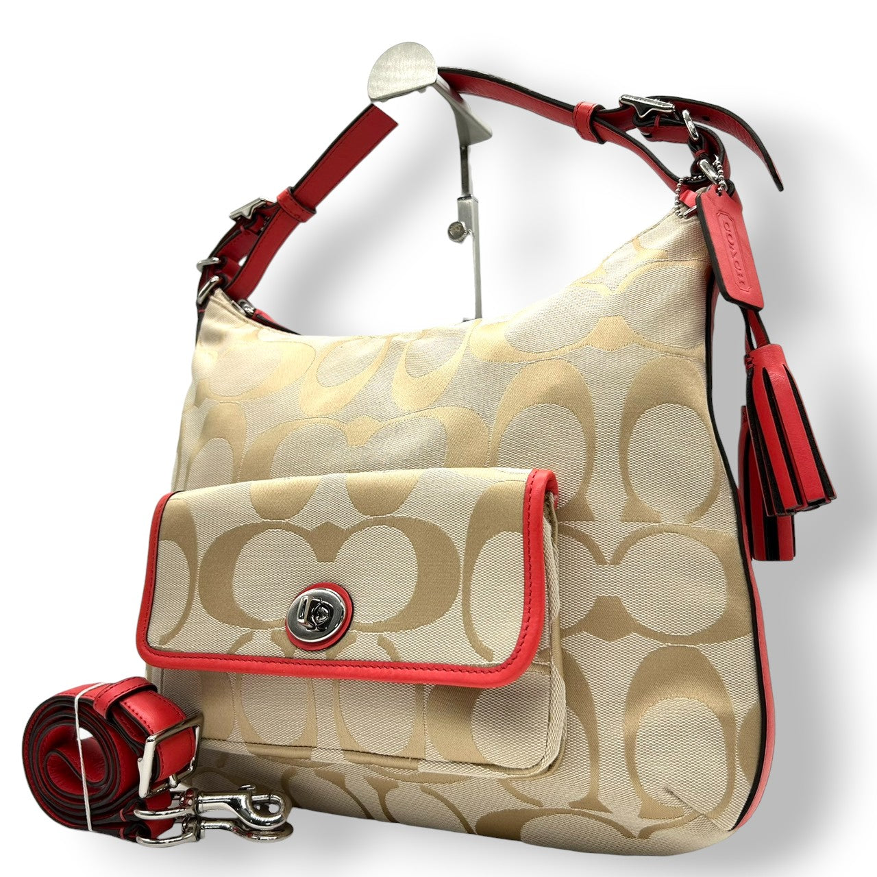 【極美品】コーチ レガシー 2WAY ショルダーバッグ シグネチャー キャンバス レザー 本革 ベージュ ゴールド レッド タッセル ターンロック 斜め掛け 肩掛け レディース 未使用級 エレガント フェミニン 大人可愛い COACH 22392 s82