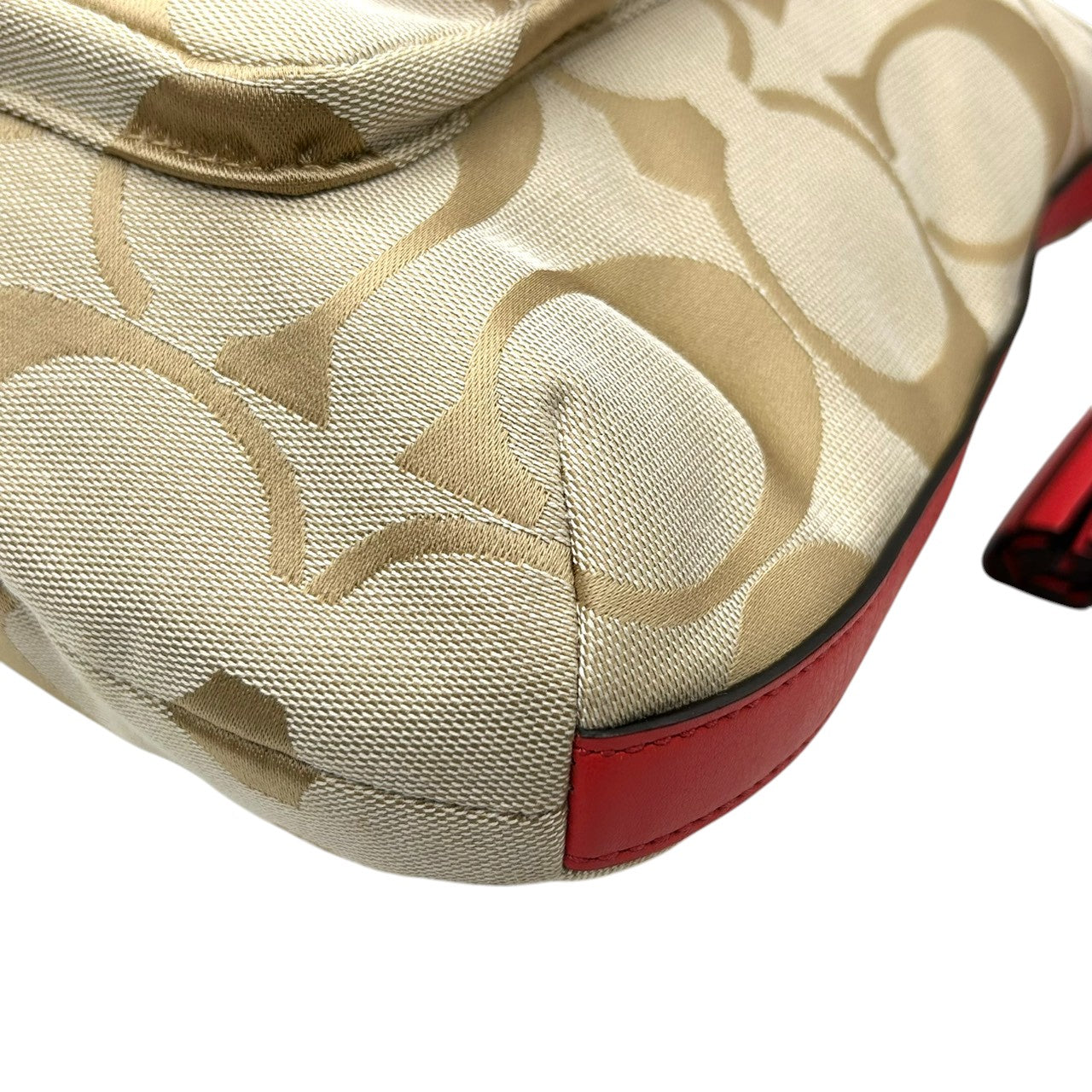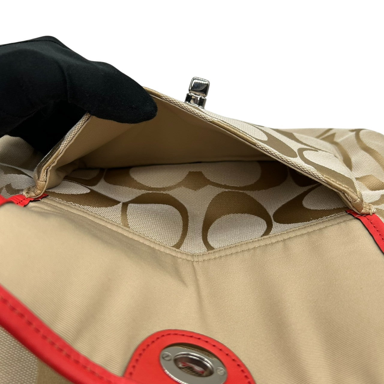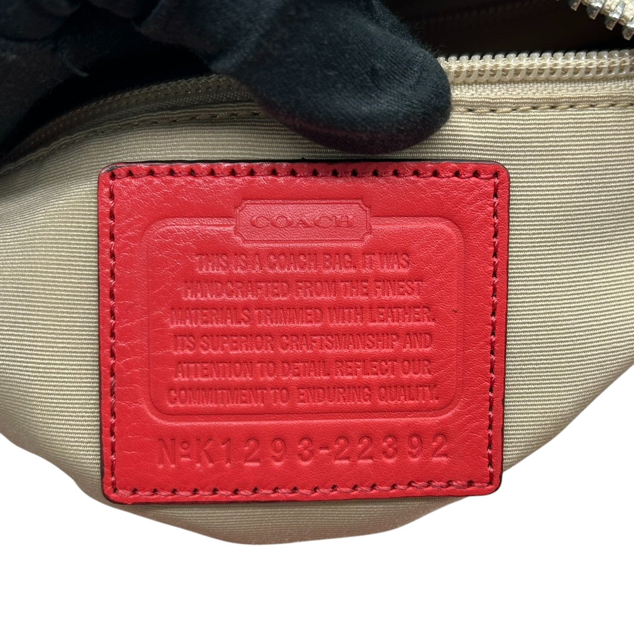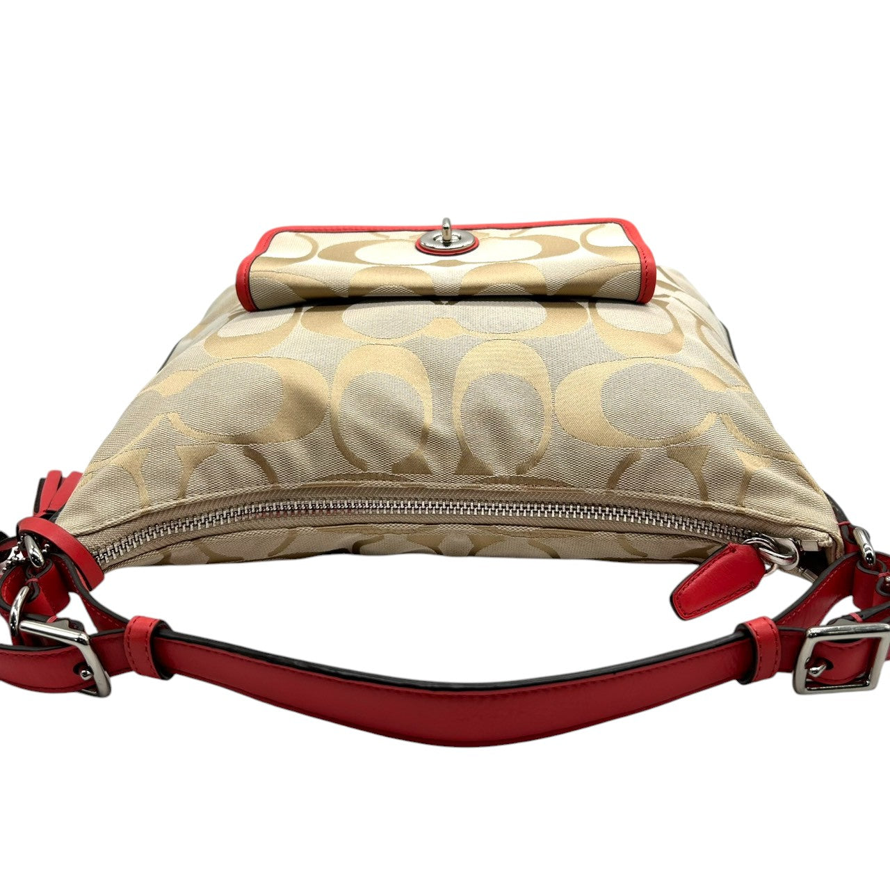 【極美品】コーチ レガシー 2WAY ショルダーバッグ シグネチャー キャンバス レザー 本革 ベージュ ゴールド レッド タッセル ターンロック 斜め掛け 肩掛け レディース 未使用級 エレガント フェミニン 大人可愛い COACH 22392 s82