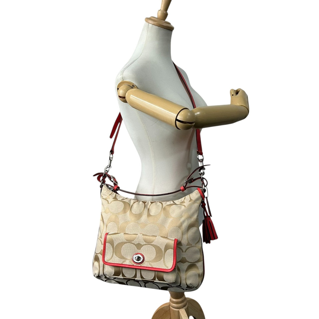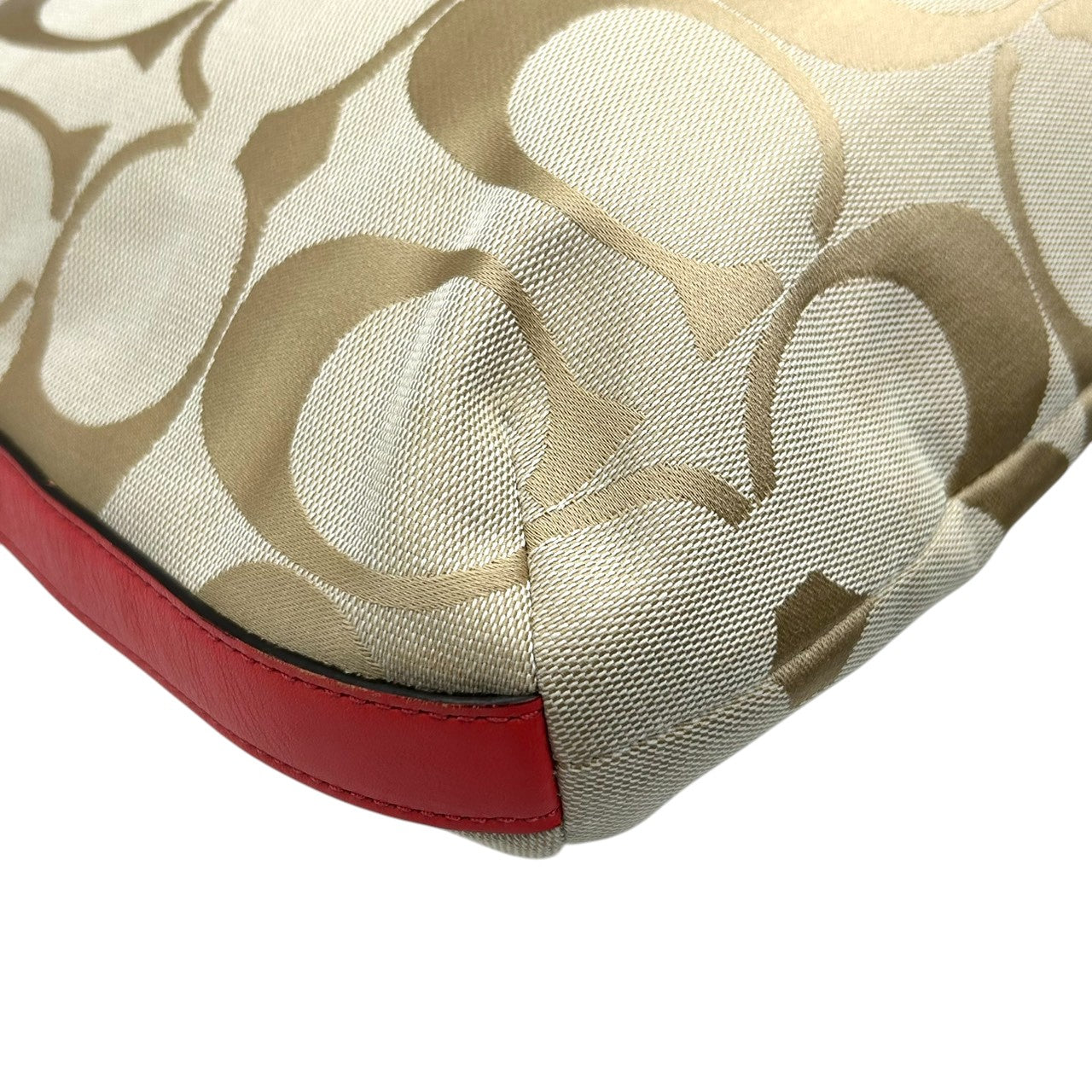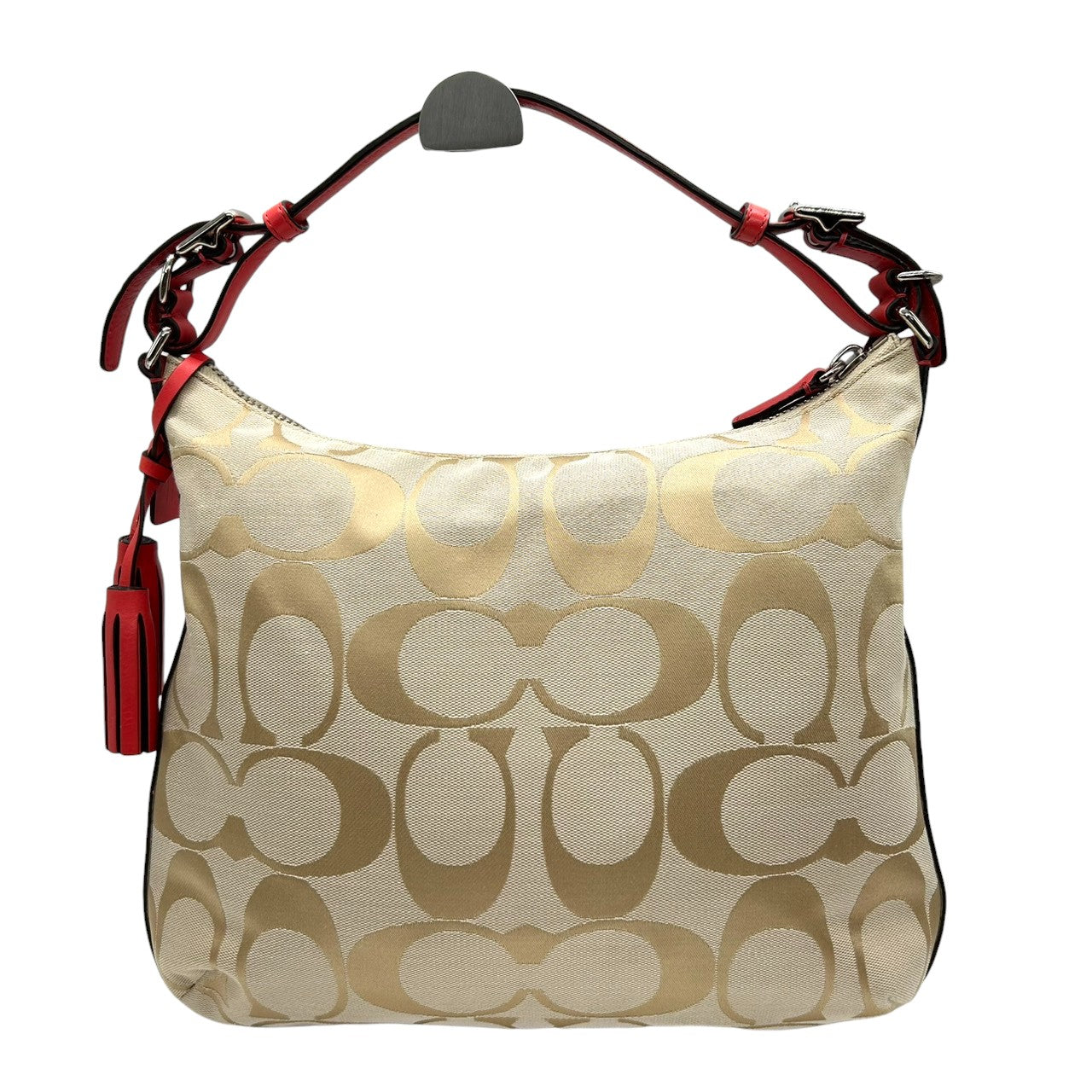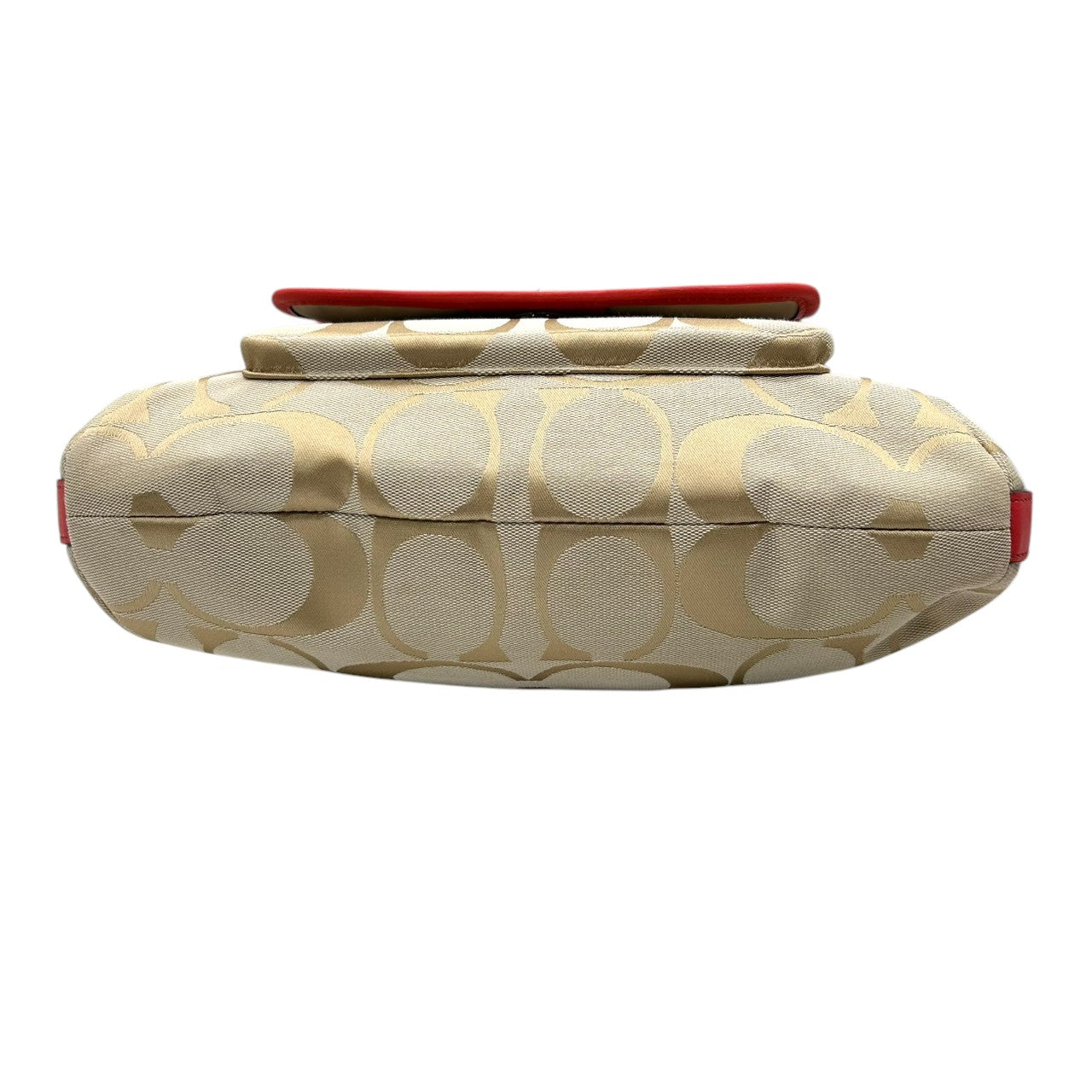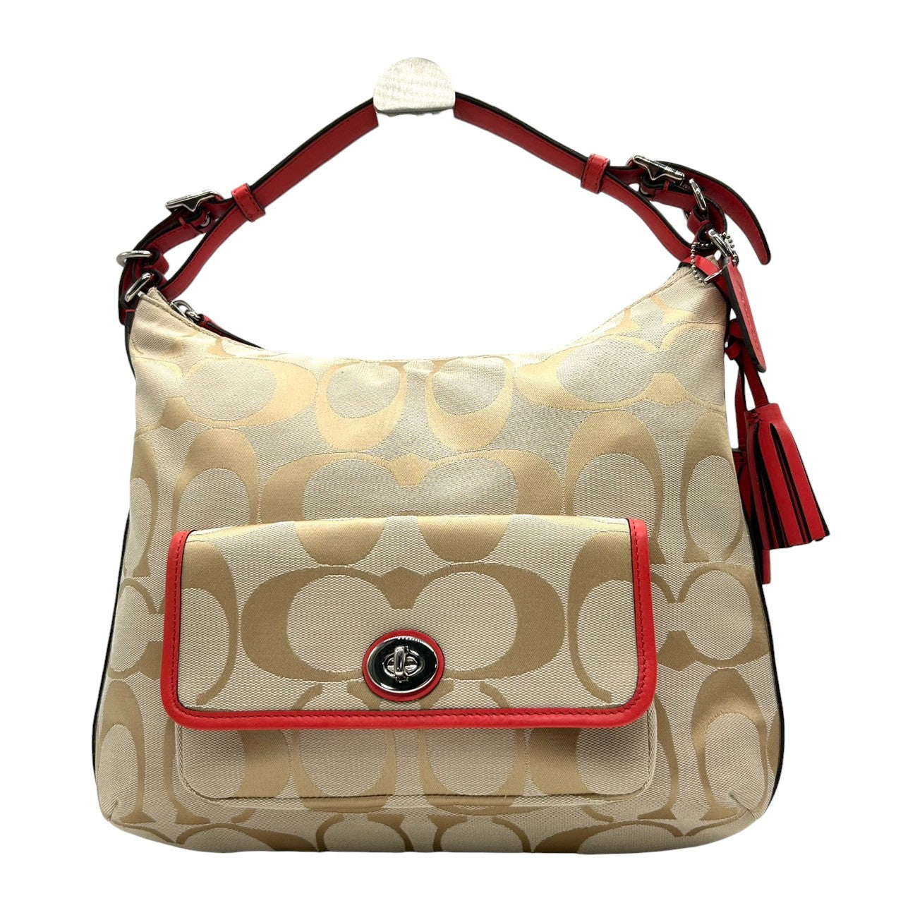 【極美品】コーチ レガシー 2WAY ショルダーバッグ シグネチャー キャンバス レザー 本革 ベージュ ゴールド レッド タッセル ターンロック 斜め掛け 肩掛け レディース 未使用級 エレガント フェミニン 大人可愛い COACH 22392 s82