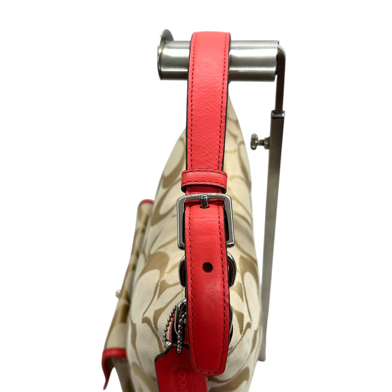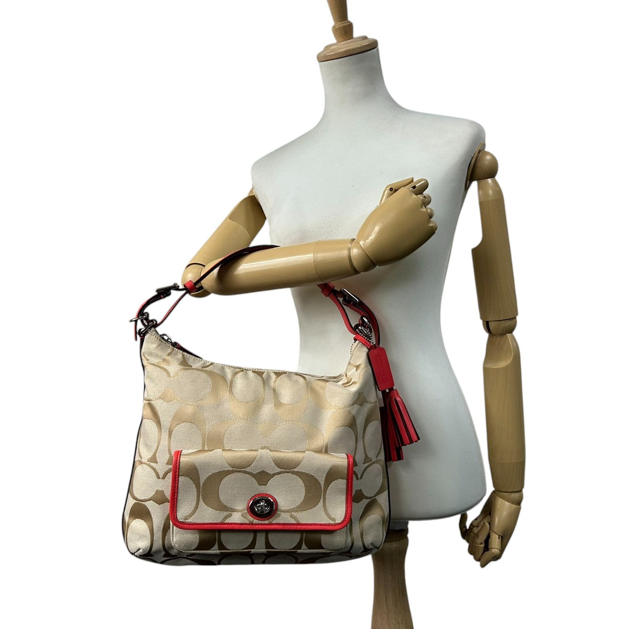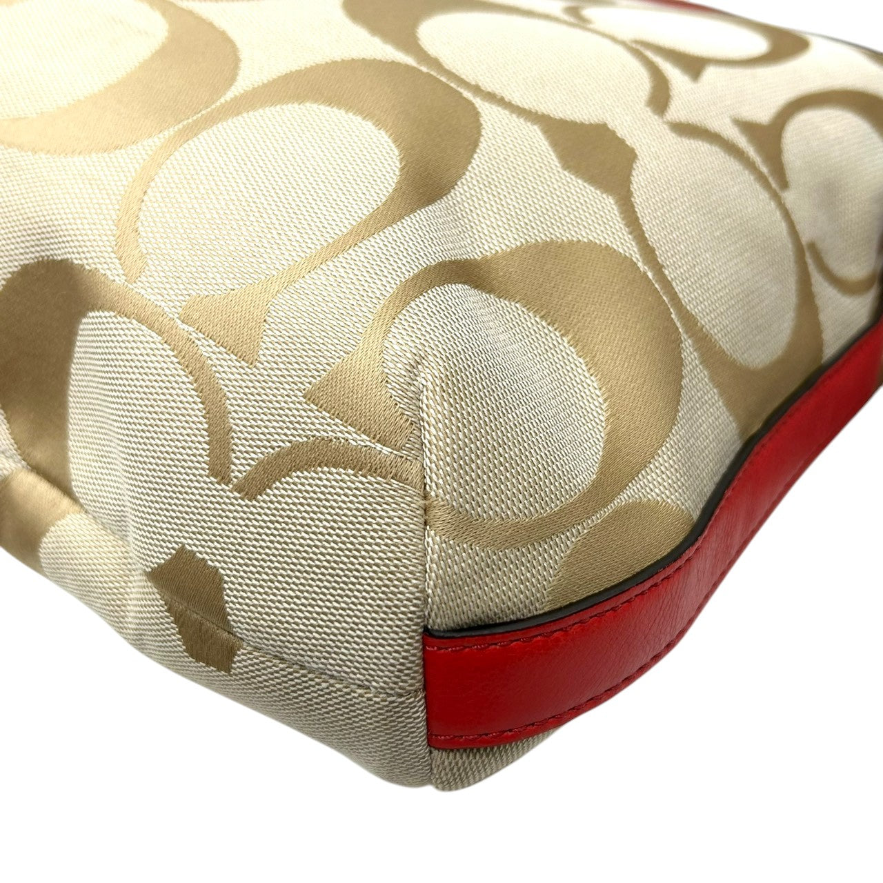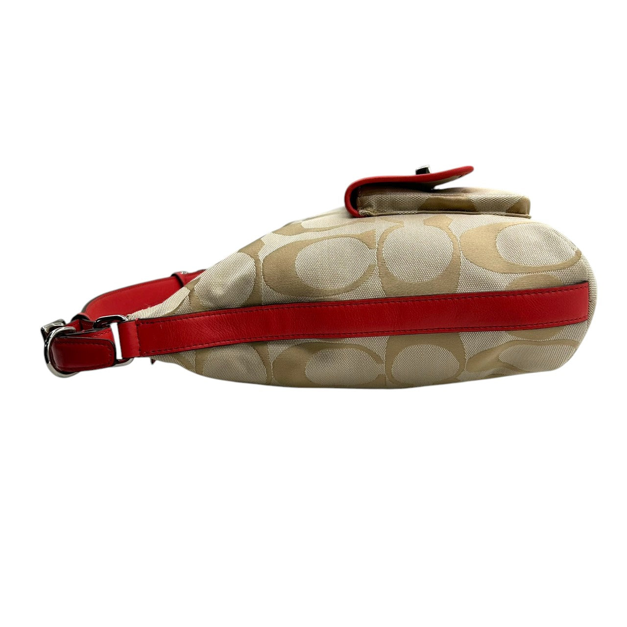 【極美品】コーチ レガシー 2WAY ショルダーバッグ シグネチャー キャンバス レザー 本革 ベージュ ゴールド レッド タッセル ターンロック 斜め掛け 肩掛け レディース 未使用級 エレガント フェミニン 大人可愛い COACH 22392 s82