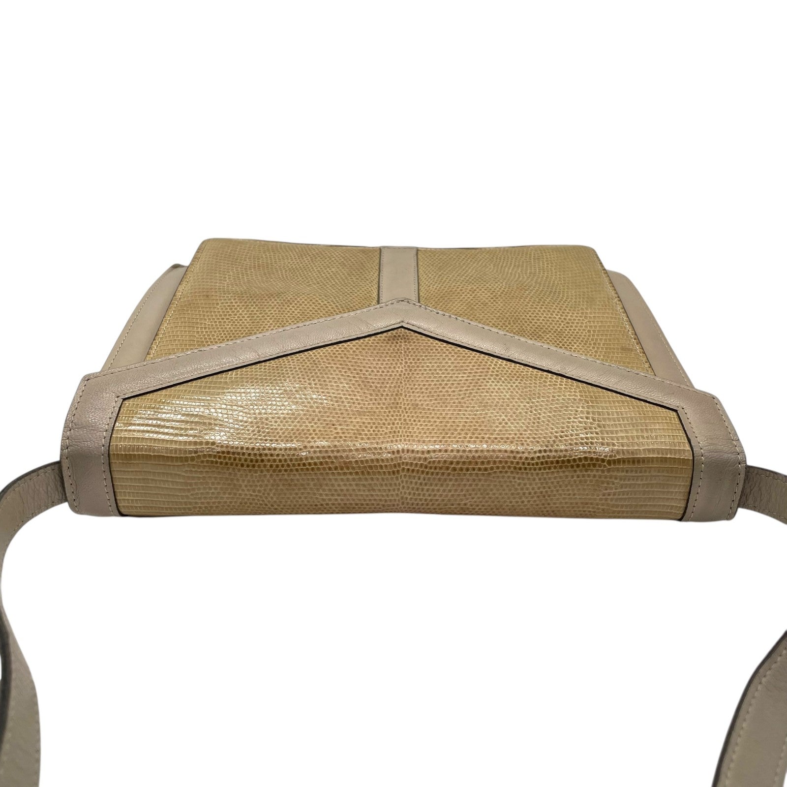 イヴサンローラン Yves Saint Laurent ショルダーバッグ ワンショルダー ベージュ グレージュ レザー ゴールド金具 フラップ開閉 肩掛け可 YSL ヴィンテージ レディース S81
