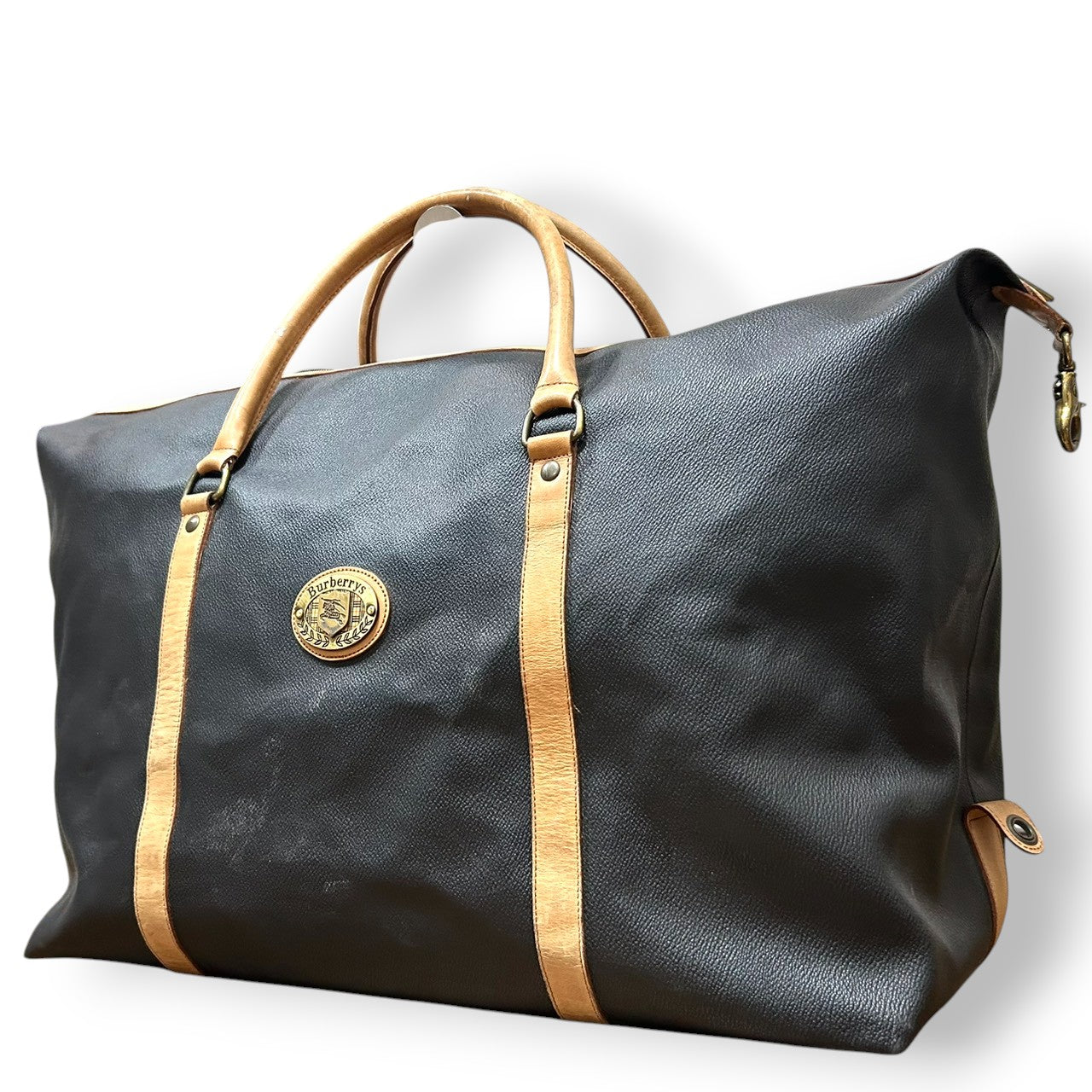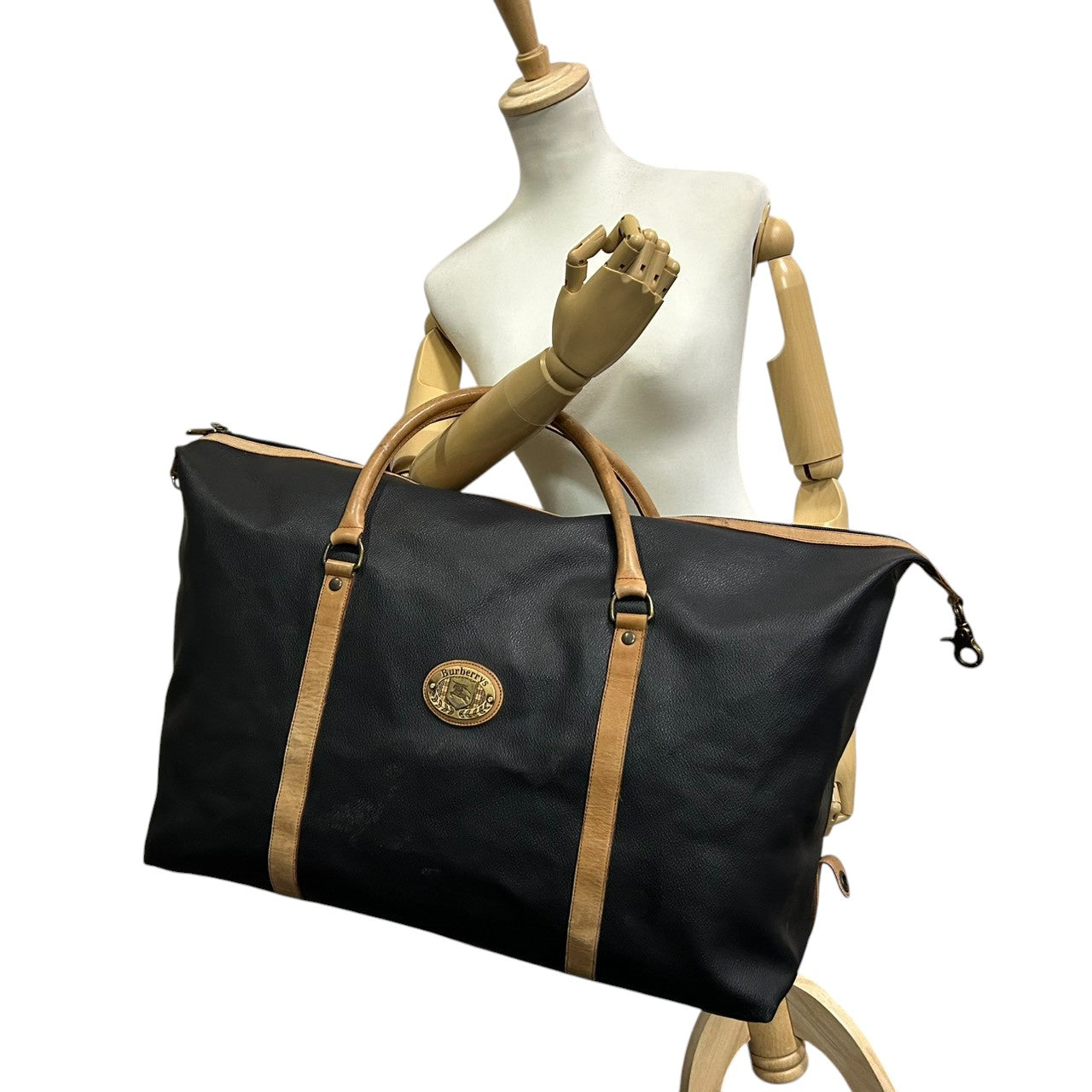 Burberrys バーバリーズ ボストンバッグ 旅行バッグ 大容量 ホースロゴ 騎士ロゴ レザー 本革 ブラック ブラウン メンズ レディース ユニセックス ヴィンテージ ビンテージ オールド イタリア製 出張 ゴルフ 希少 レア X3