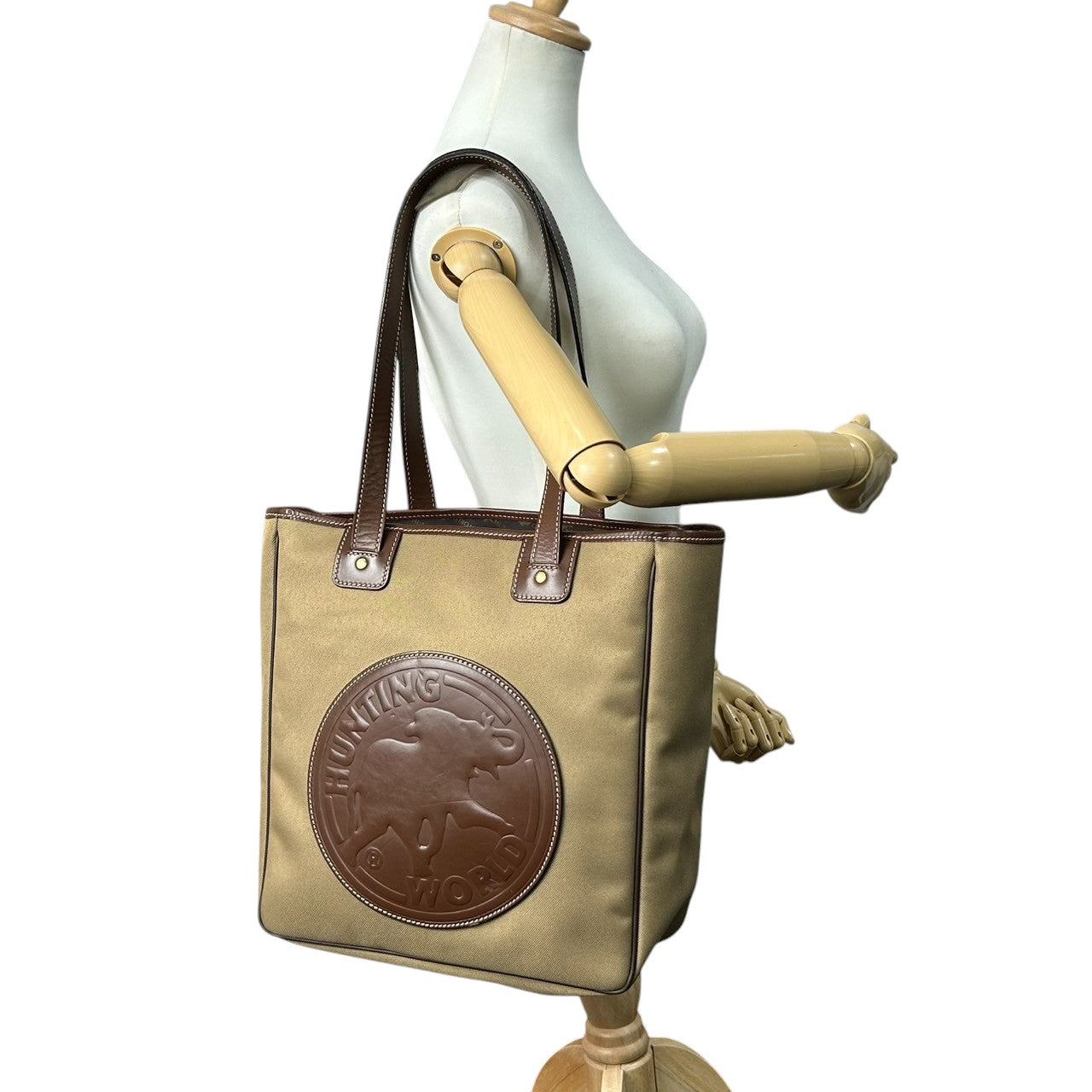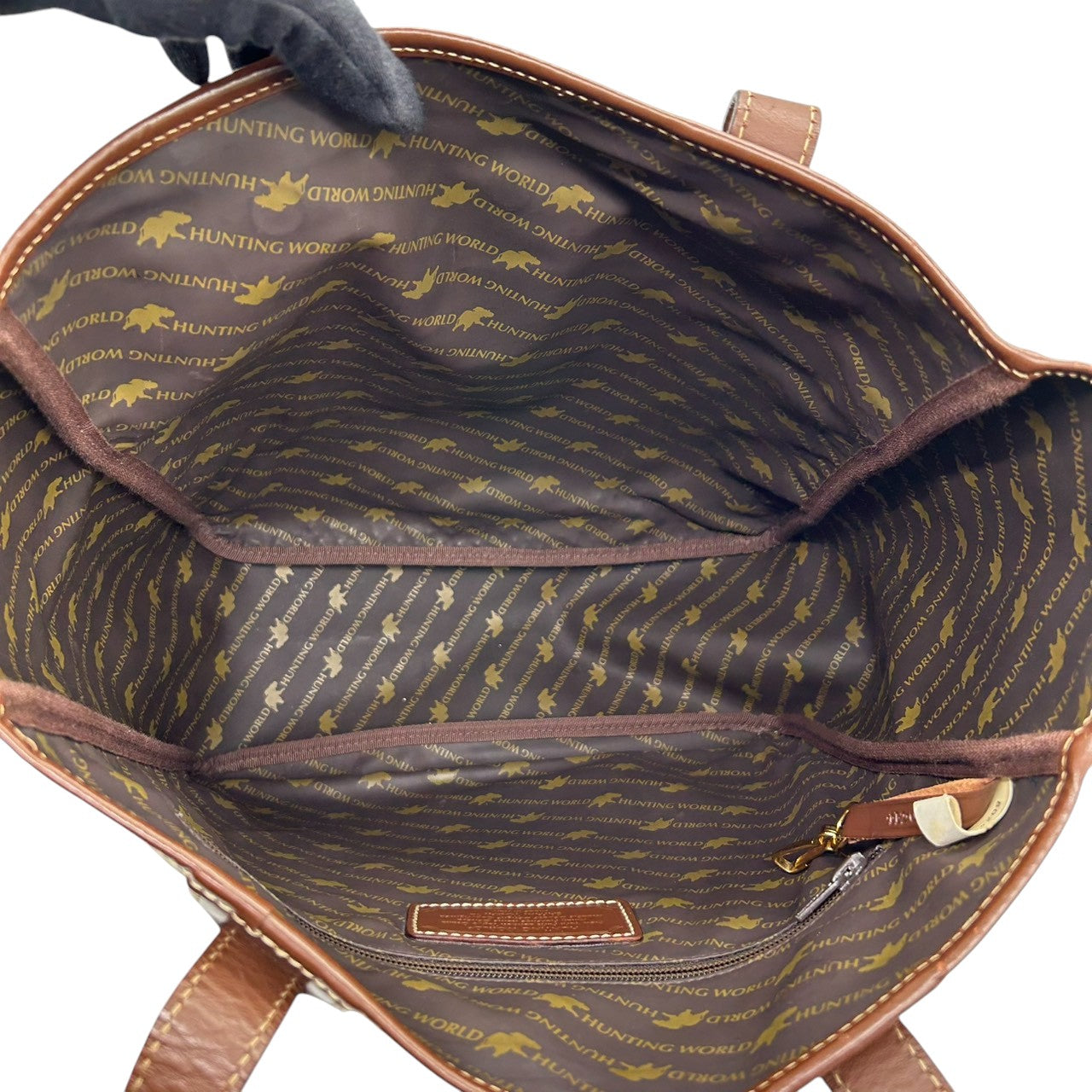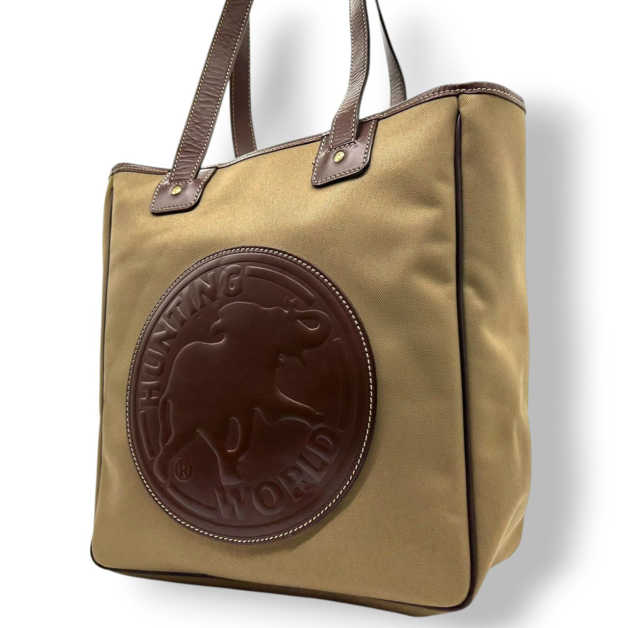 ハンティングワールド トートバッグ サファリトゥデイ ワンショルダー ナイロン レザー ブラウン デカロゴ A4収納可 大容量 肩掛け可 メンズ レディース ユニセックス 通勤 通学 定番人気モデル イタリア製 HUNTING WORLD s18