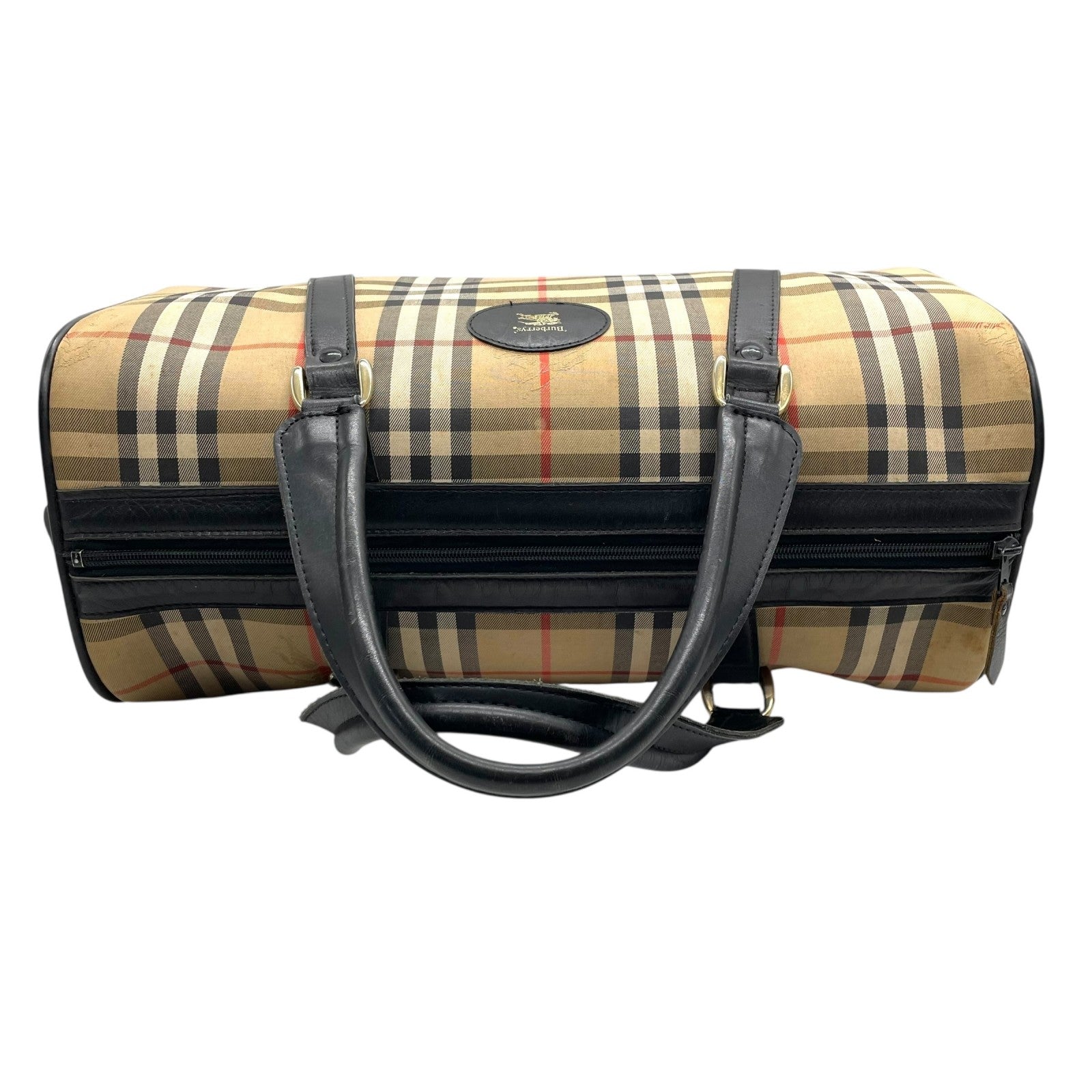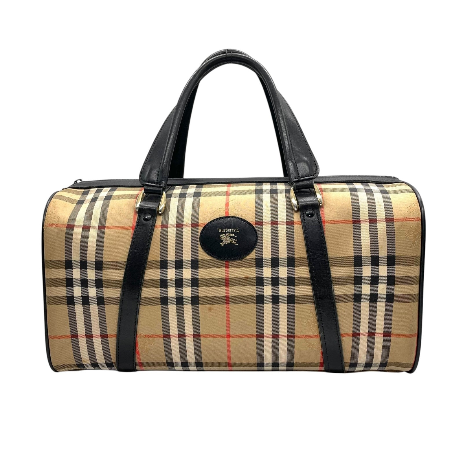 バーバリーズ Burberrys ボストンバッグ ハンドバッグ ノバチェック シャドーホース ベージュ 黒 ブラック キャンバス レザー 大容量 旅行バッグ C